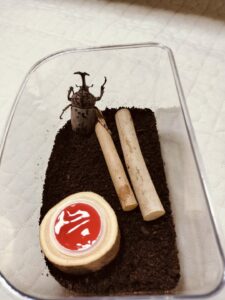 カブトムシさんが外に出て来ました。