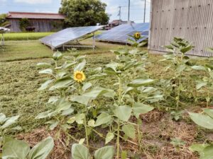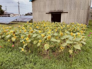 せんじつの雨のおかげか、ひまわりの花の数がさらに増えました。