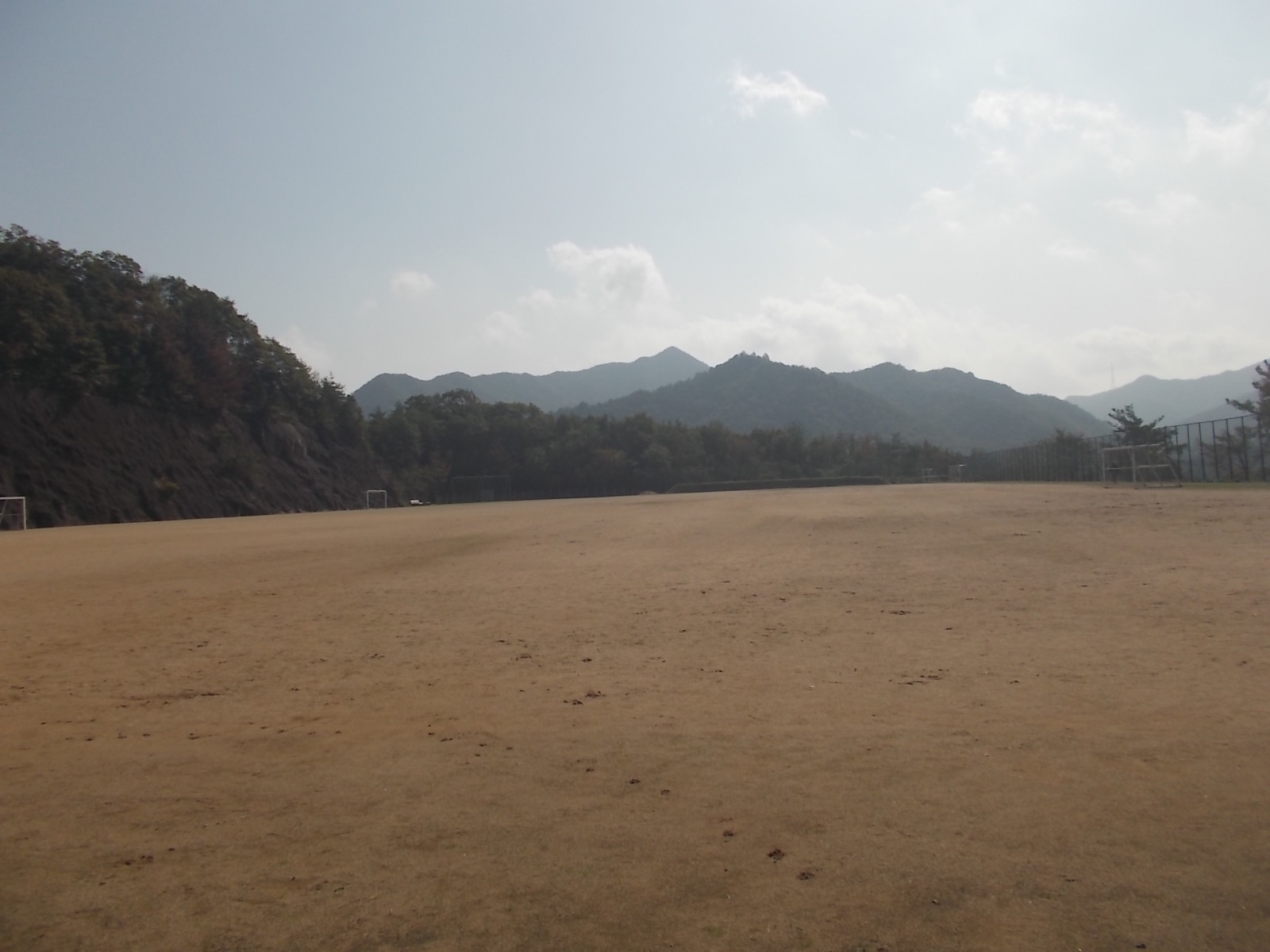 ↑ グラウンドから見える比延山。なかなかきれいな山容です。