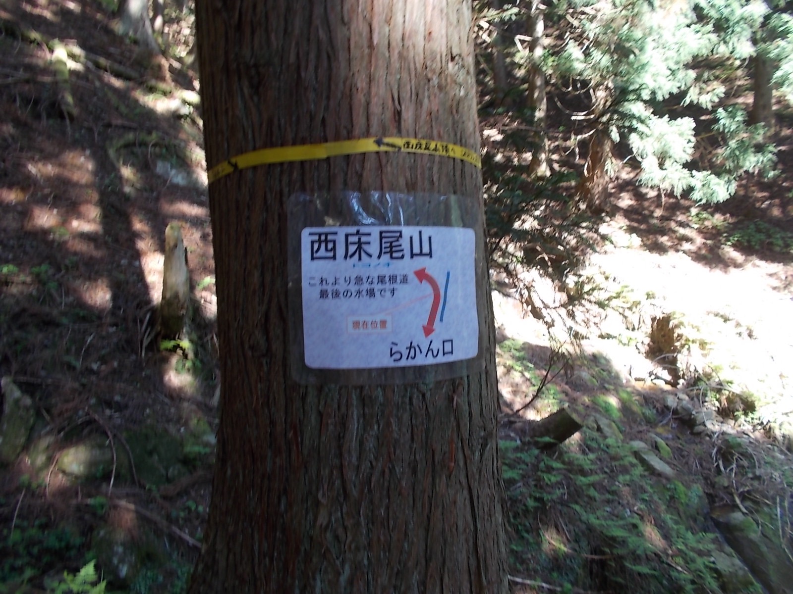 ここから不動滝まで戻り、滝を見た後少し手前の登山口より西床尾山を目指して進む。