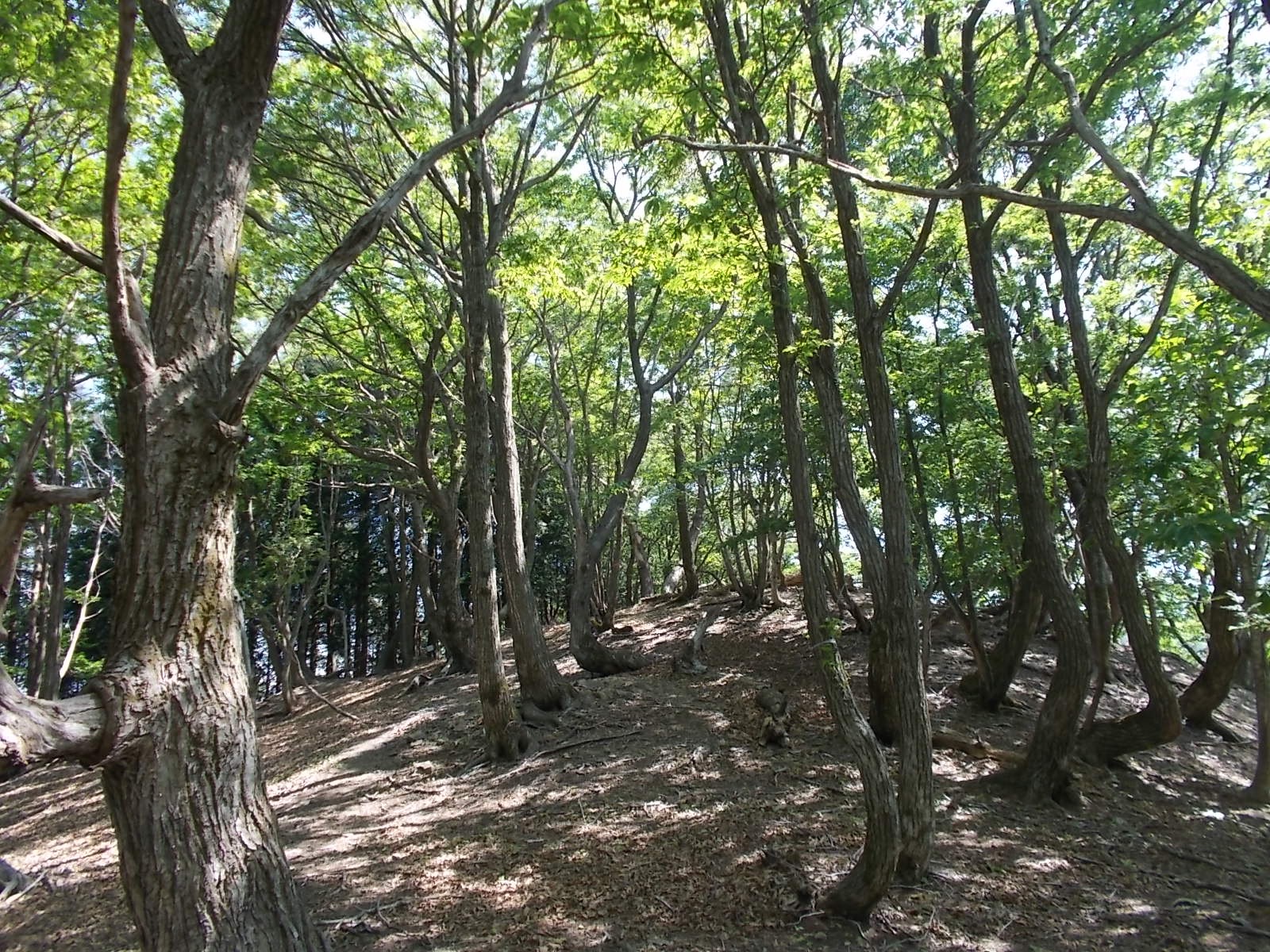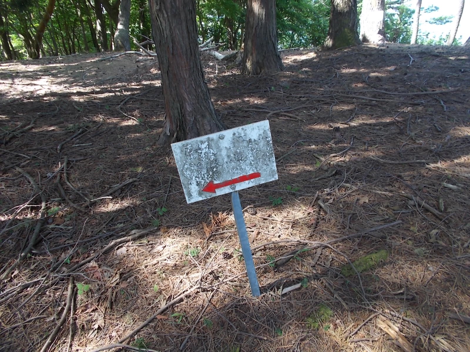 峰遙の広場から奥に進むと鉄鈷山への登山口でちょい急な斜面を適当に登ると尾根の登山道に出る。