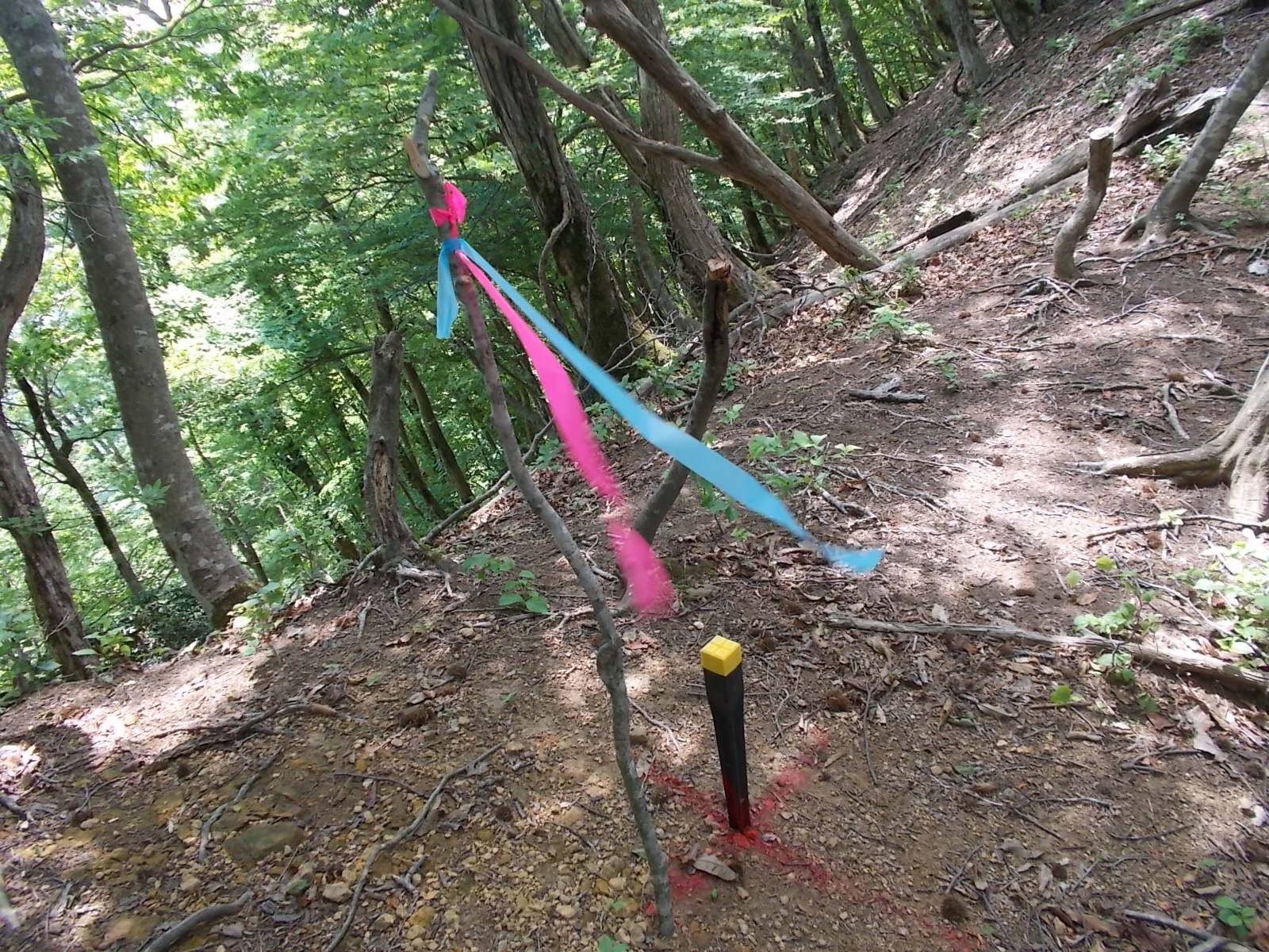 ここからさらに尾根に沿って進み(赤いテープがあるので、それに従う)、