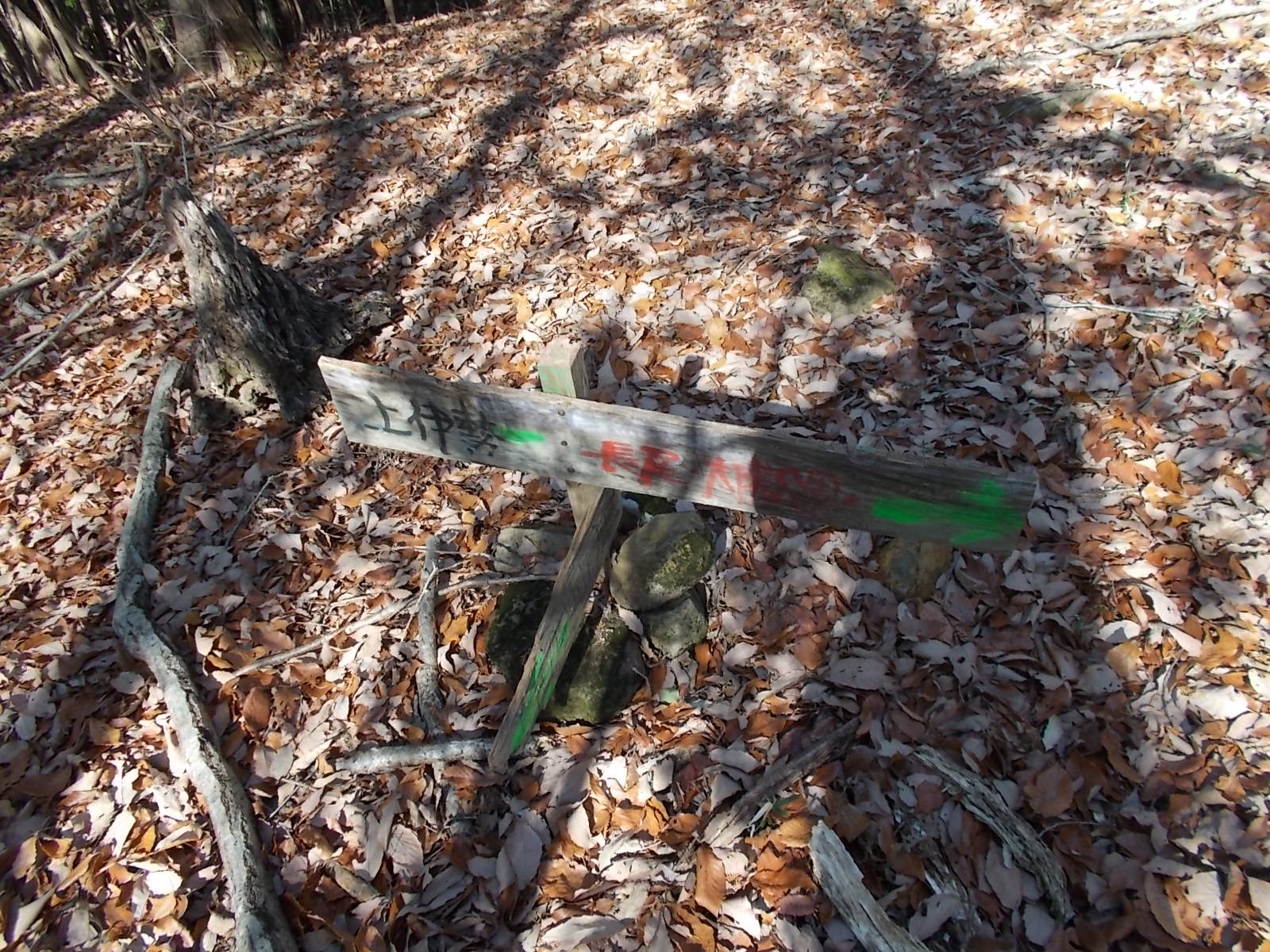 約100mほどですが岩登りで、落ち葉が滑るので緊張しながら登り切ると山頂です。