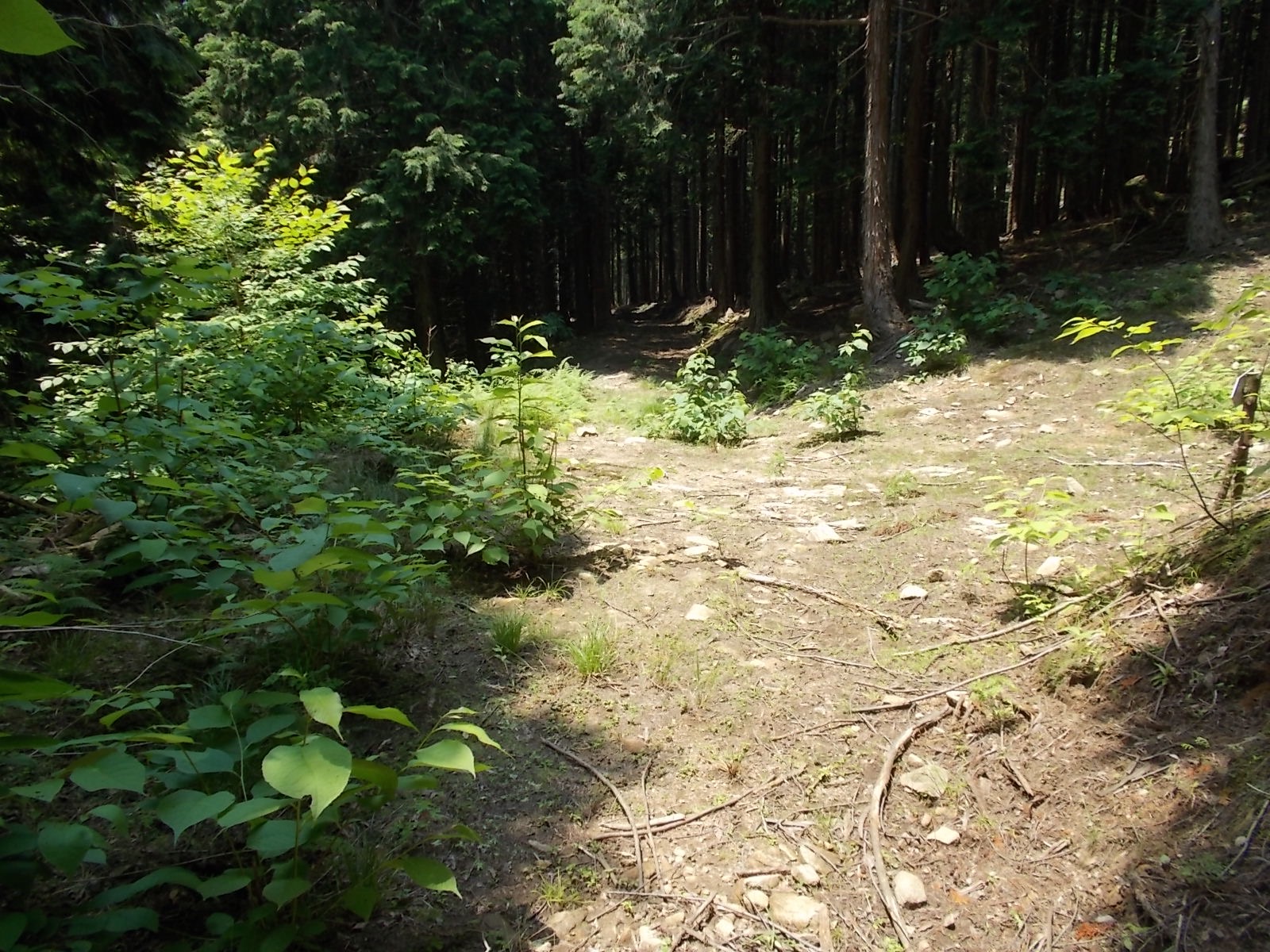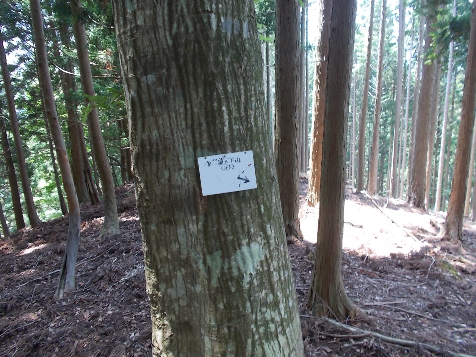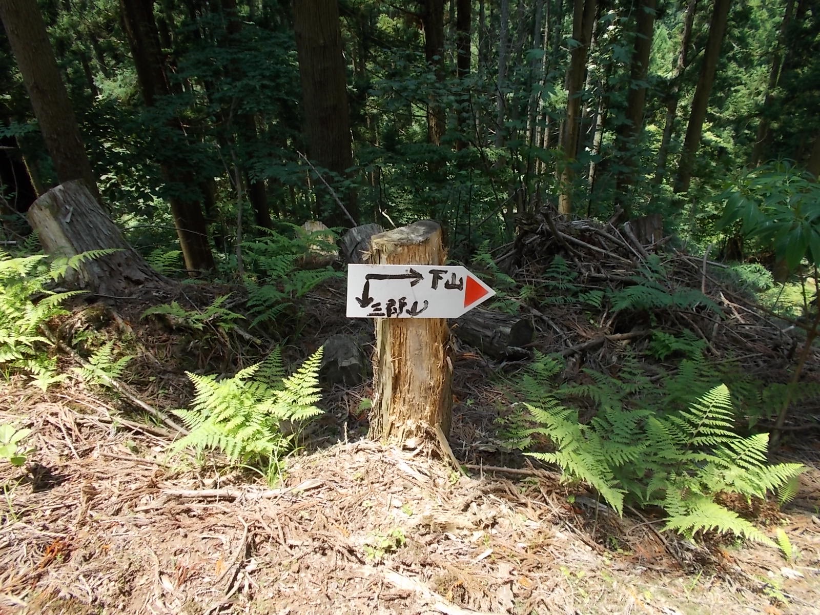 奥組山を経て作業道に出て、これを下ると別の登山口に出ます(本来なら標柱があるんですが、なぜか今回は立ってませんでした)。ここからすぐに駐車地点に戻ります。