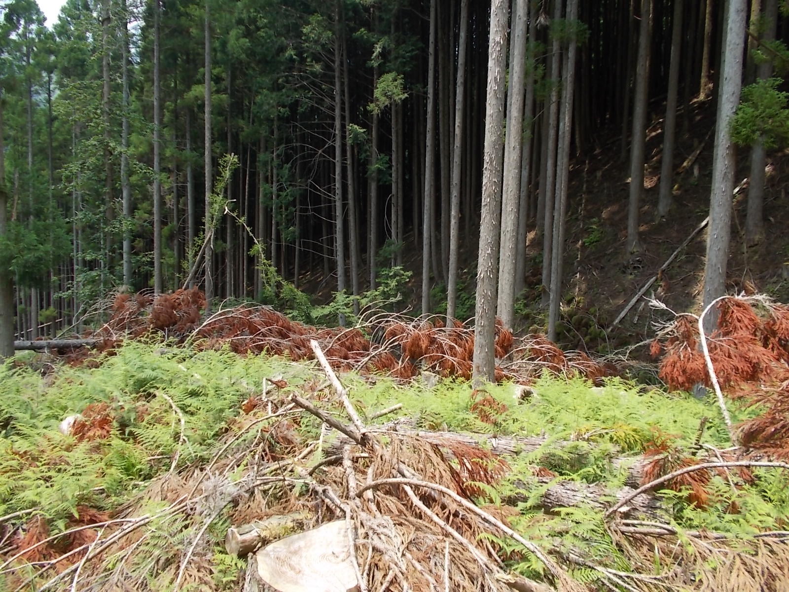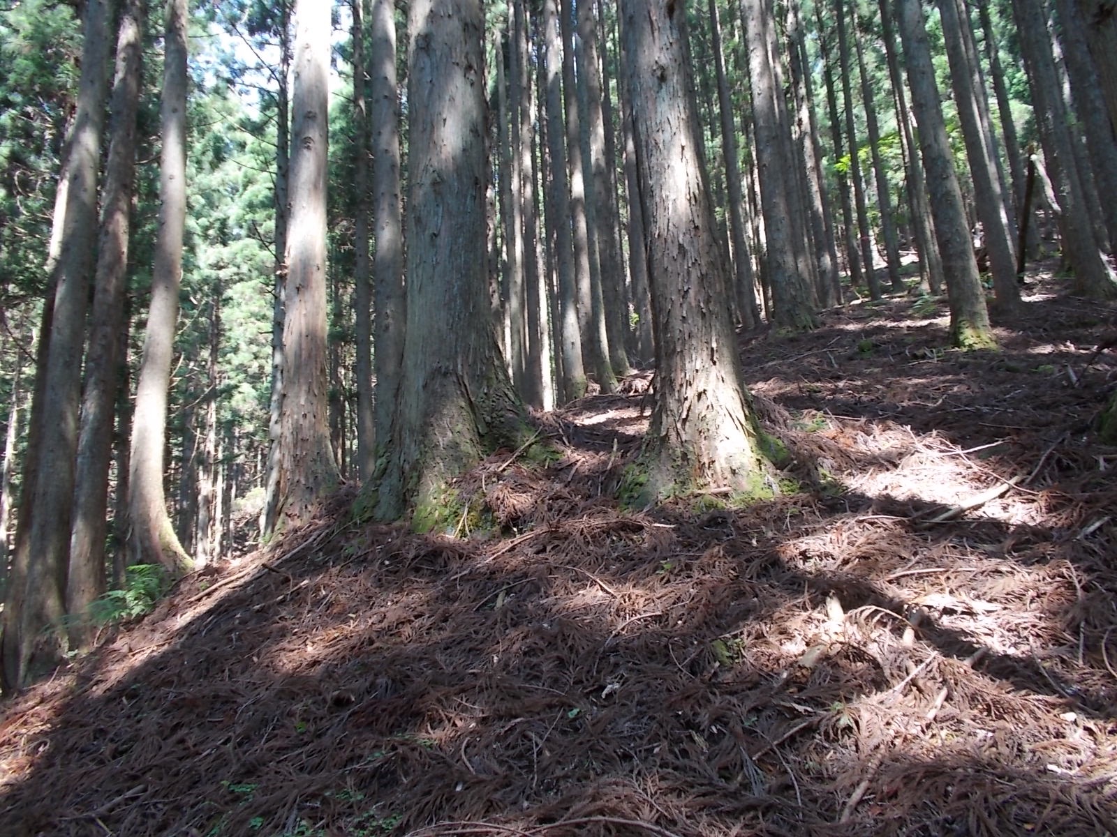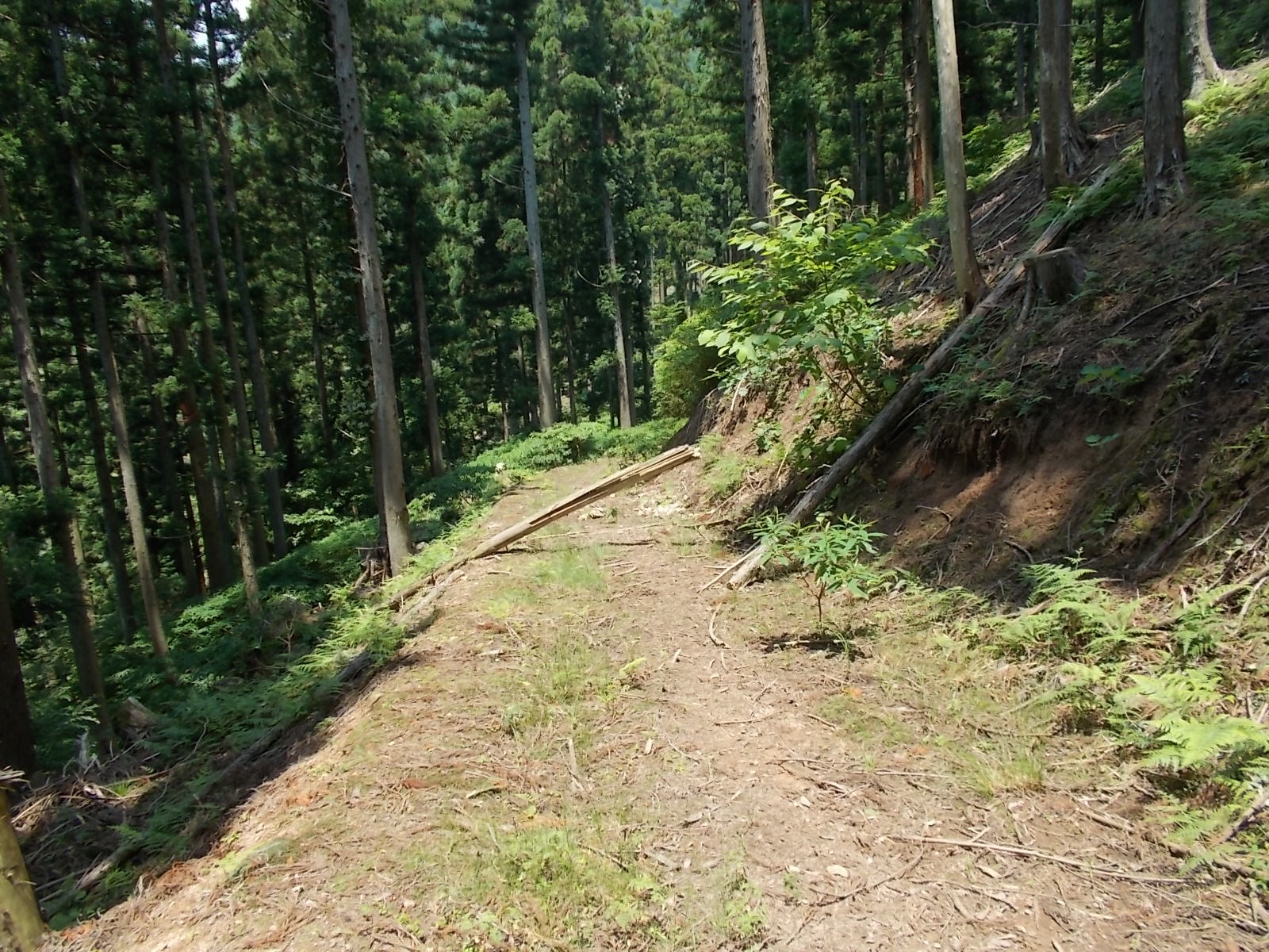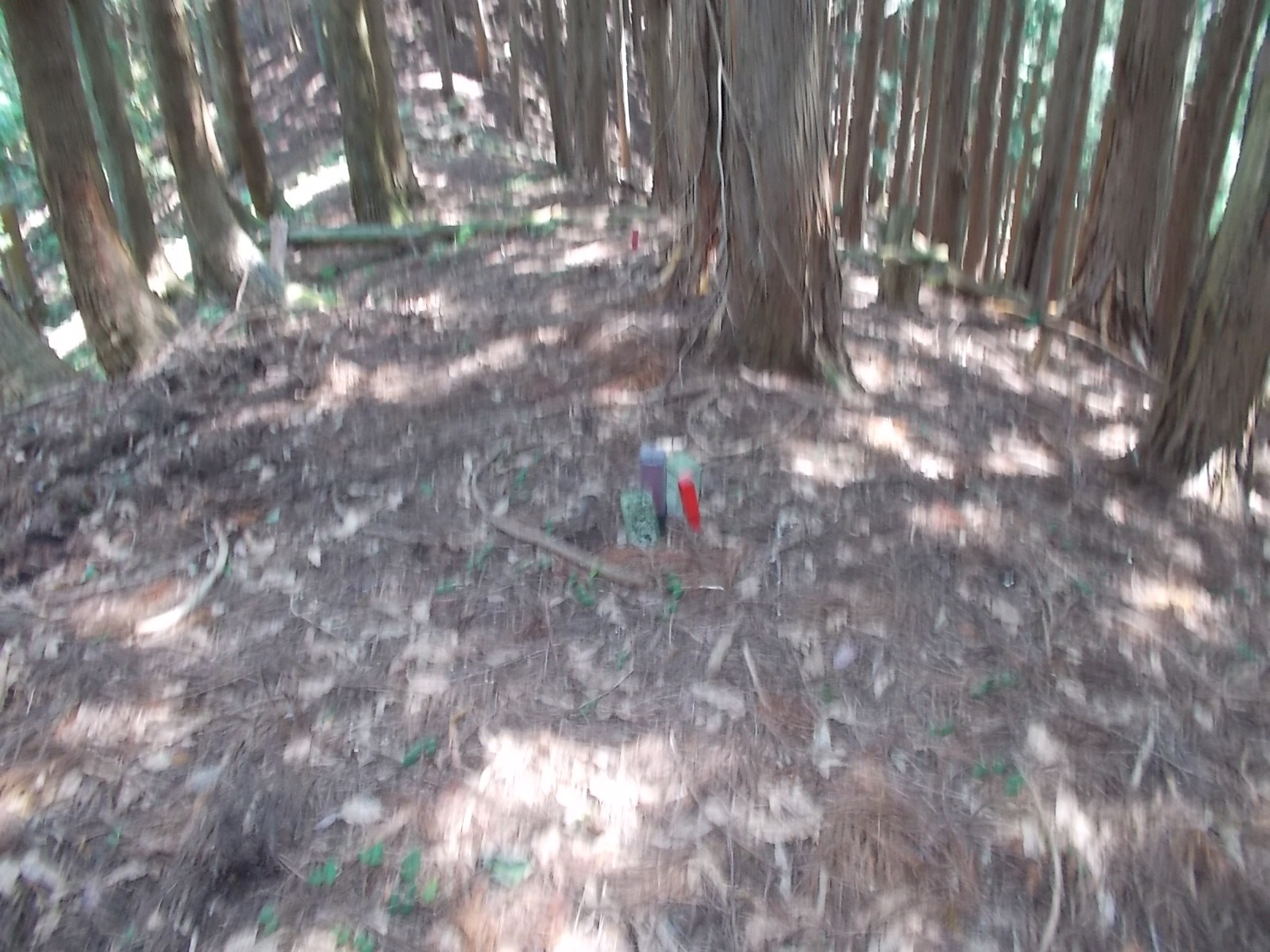 奥組山を経て作業道に出て、これを下ると別の登山口に出ます(本来なら標柱があるんですが、なぜか今回は立ってませんでした)。ここからすぐに駐車地点に戻ります。