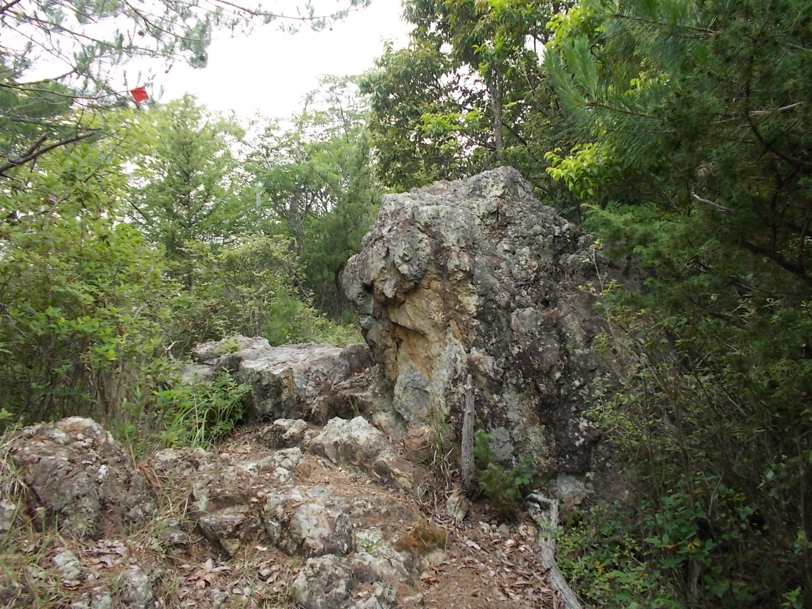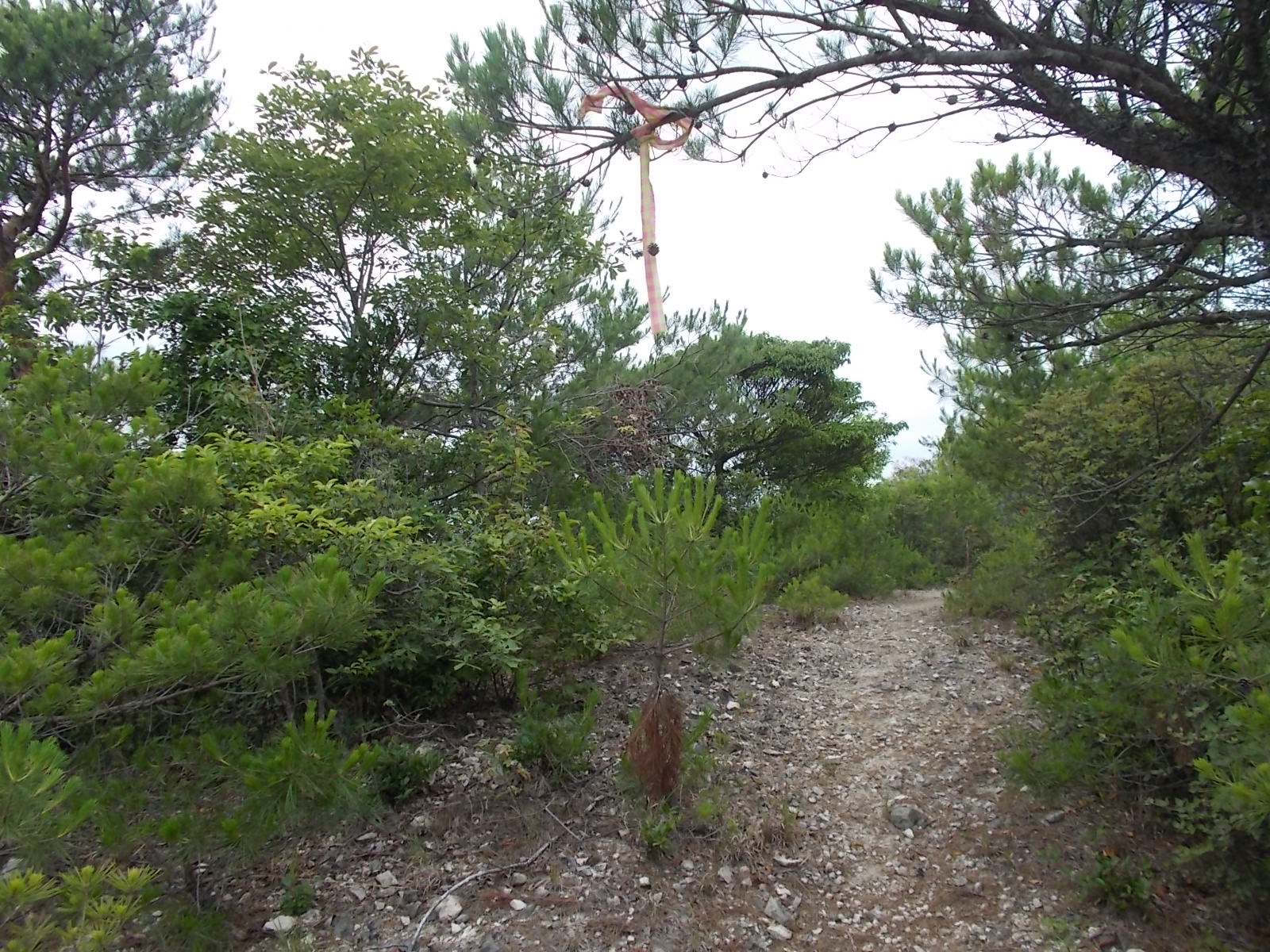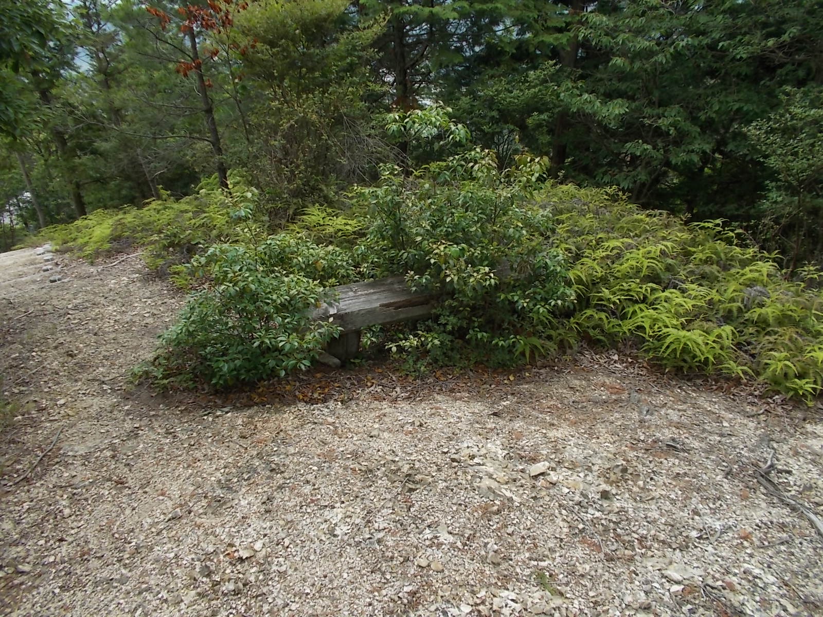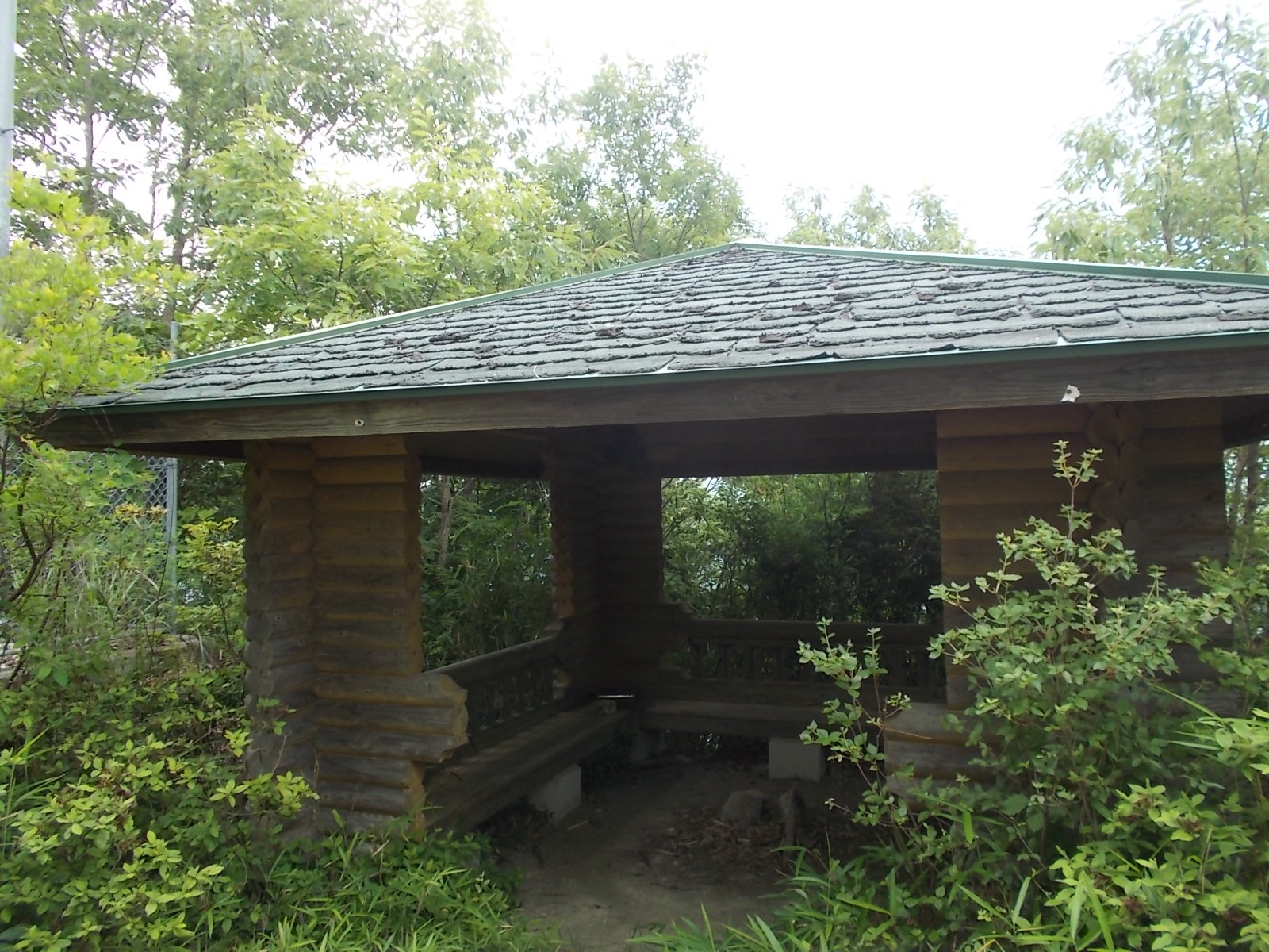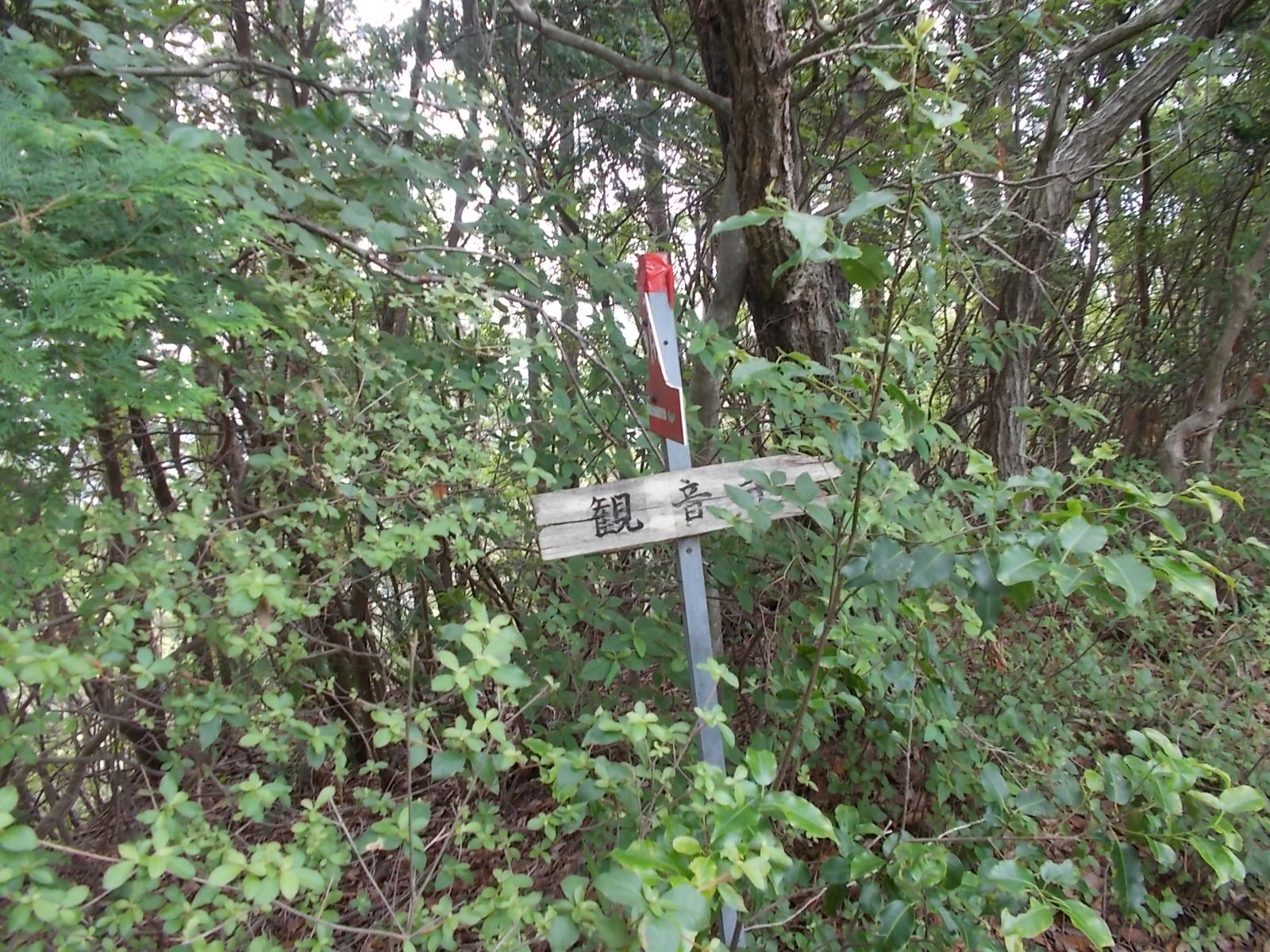 山頂には東屋がありますが、周りは木で囲まれてしまって暗くてさっぱりです。