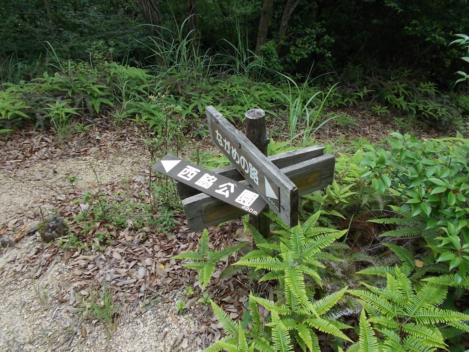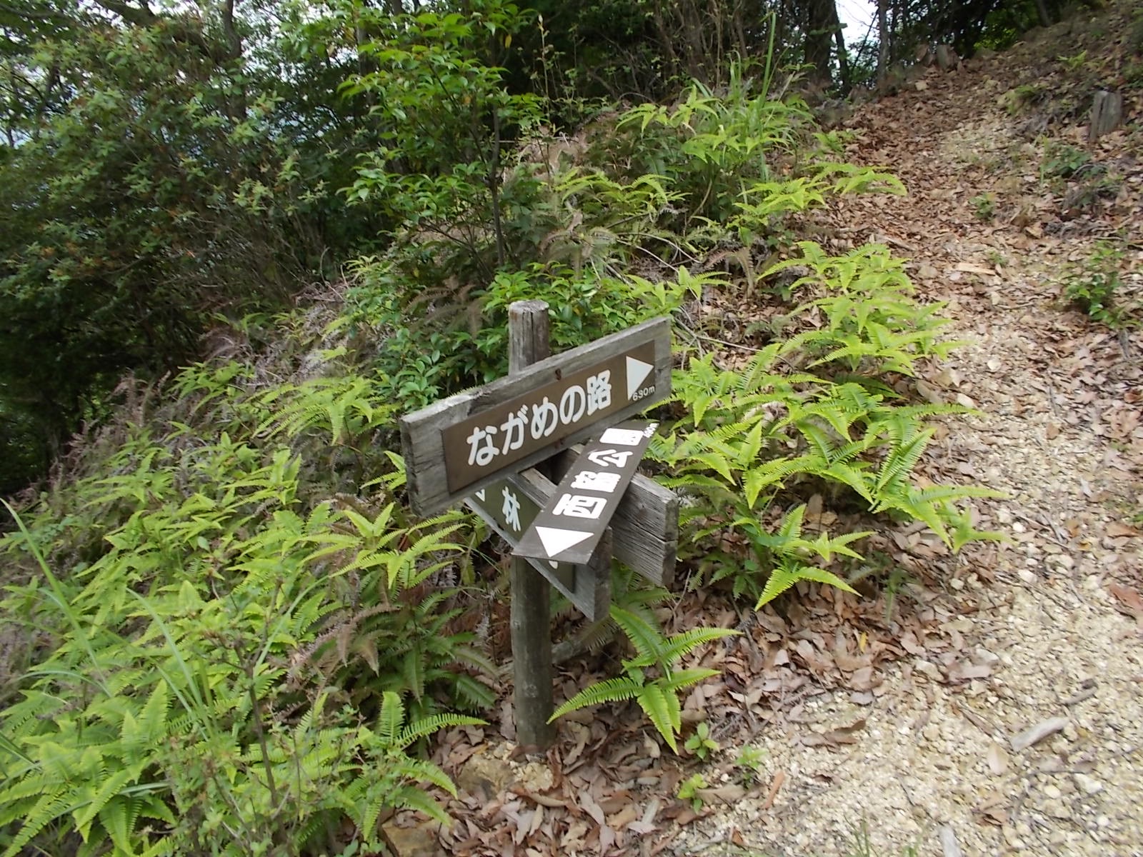 駐車場 → 墓 → 分岐 → 北山 → 分岐の戻る → 鉄塔 → 鉄塔 → 鉄塔 → 山頂 → 林道出合い → 西林寺 → (あじさい園) → 駐車場