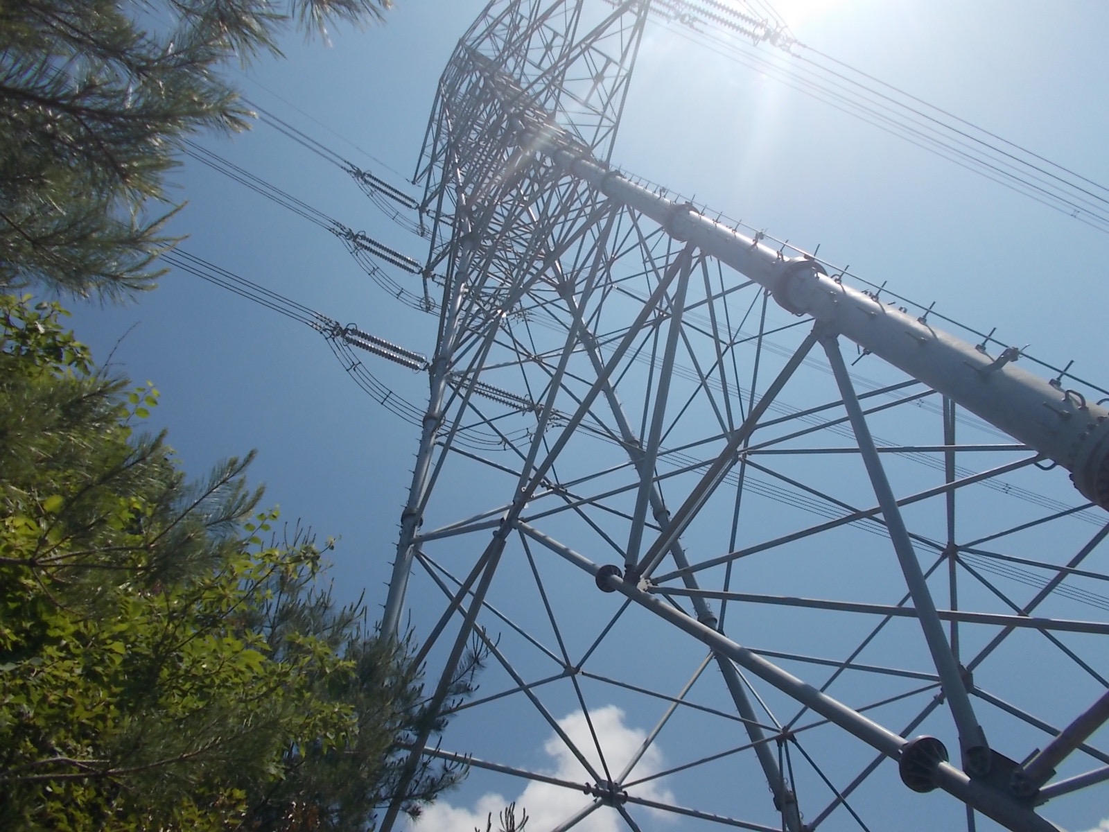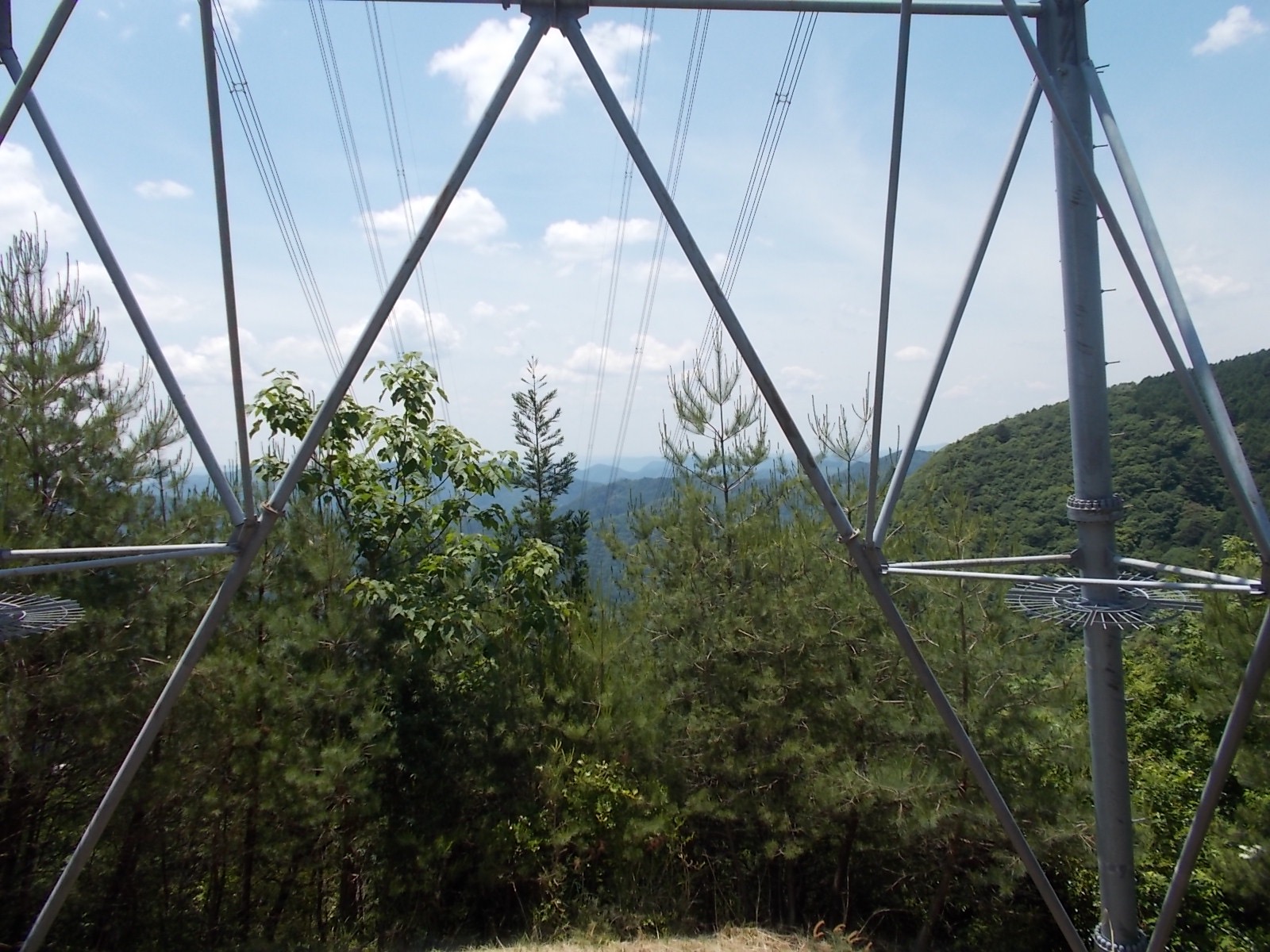 巡視路をひたすら上ると送電線鉄塔にでる。