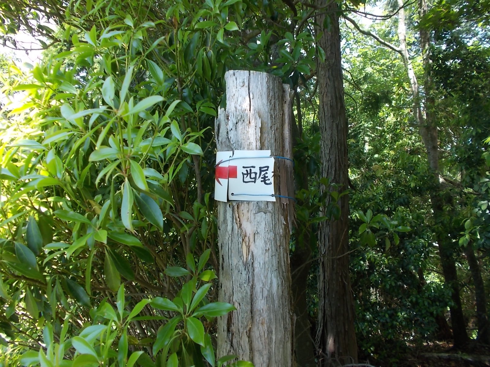 下りきって、少し戻り沢を渡ると西コース登山口に出ます。あとは林道を戻ると駐車場に着きます。