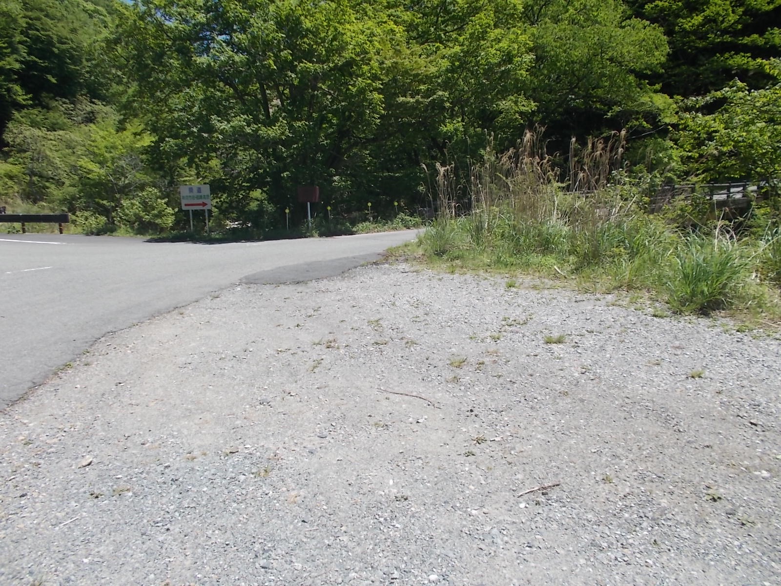 播但道の神崎南から県道8号→404号→39号を通って砥峰高原をめざし、高原のススキを左に見ながらさらに北上、人工林の中の暗くて狭い舗装路をおっかなびっくりで進むと三差路に突き当たる。そのすぐ左の広場に駐車する。