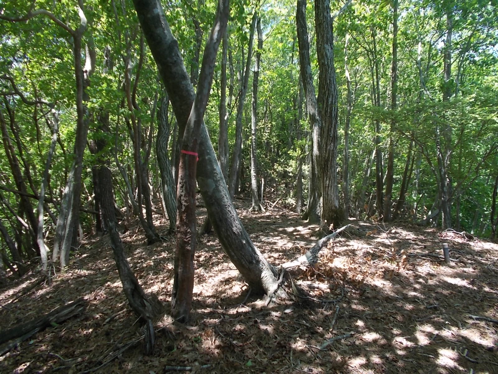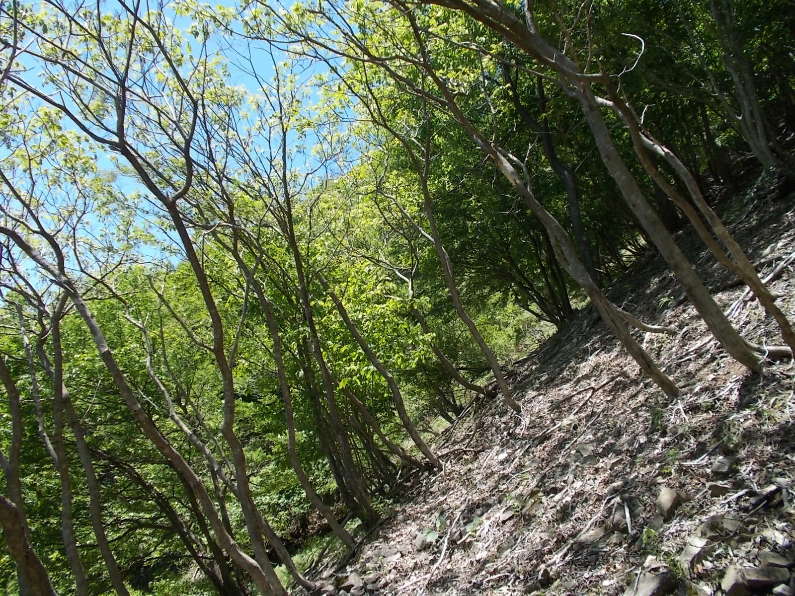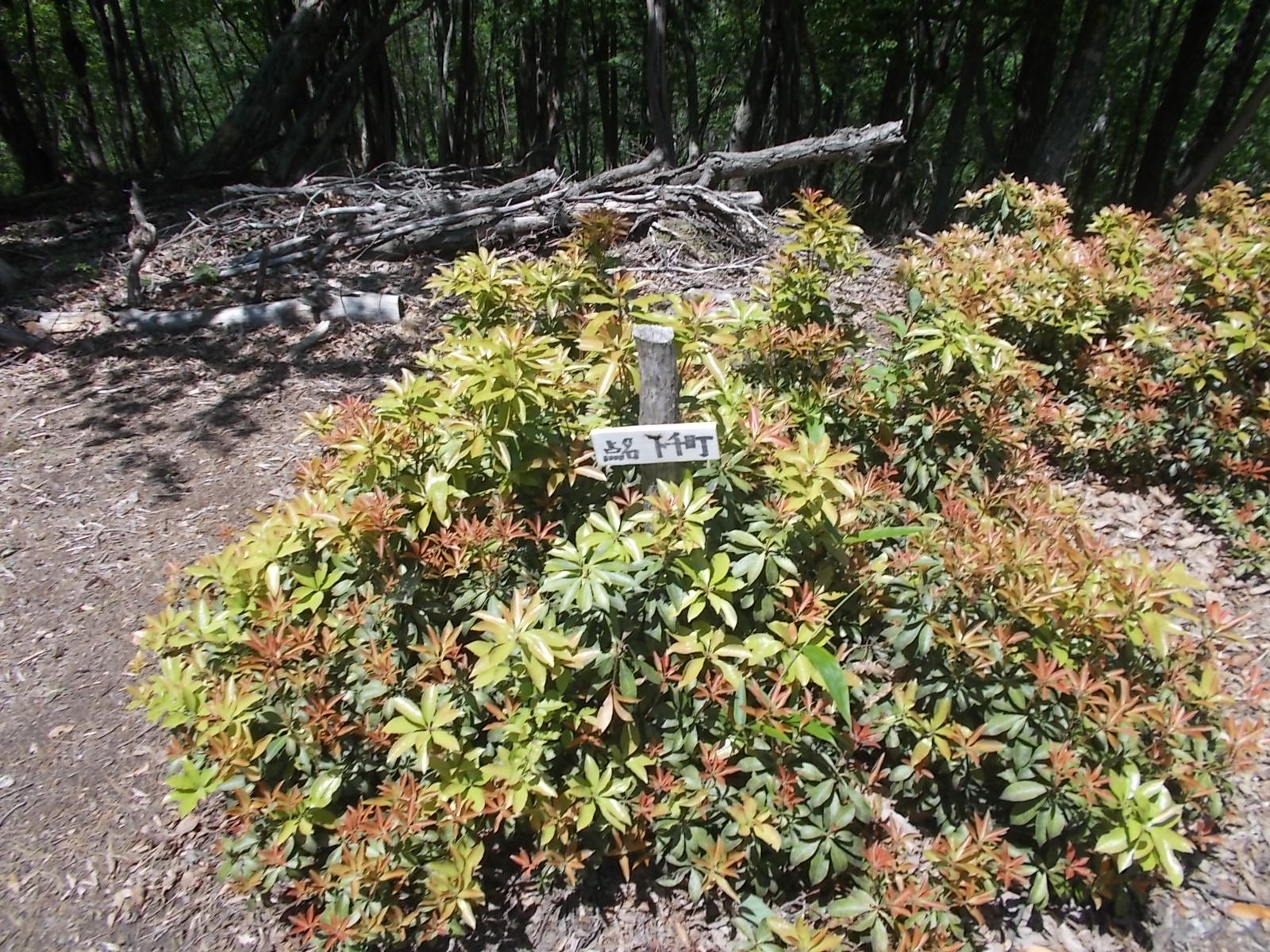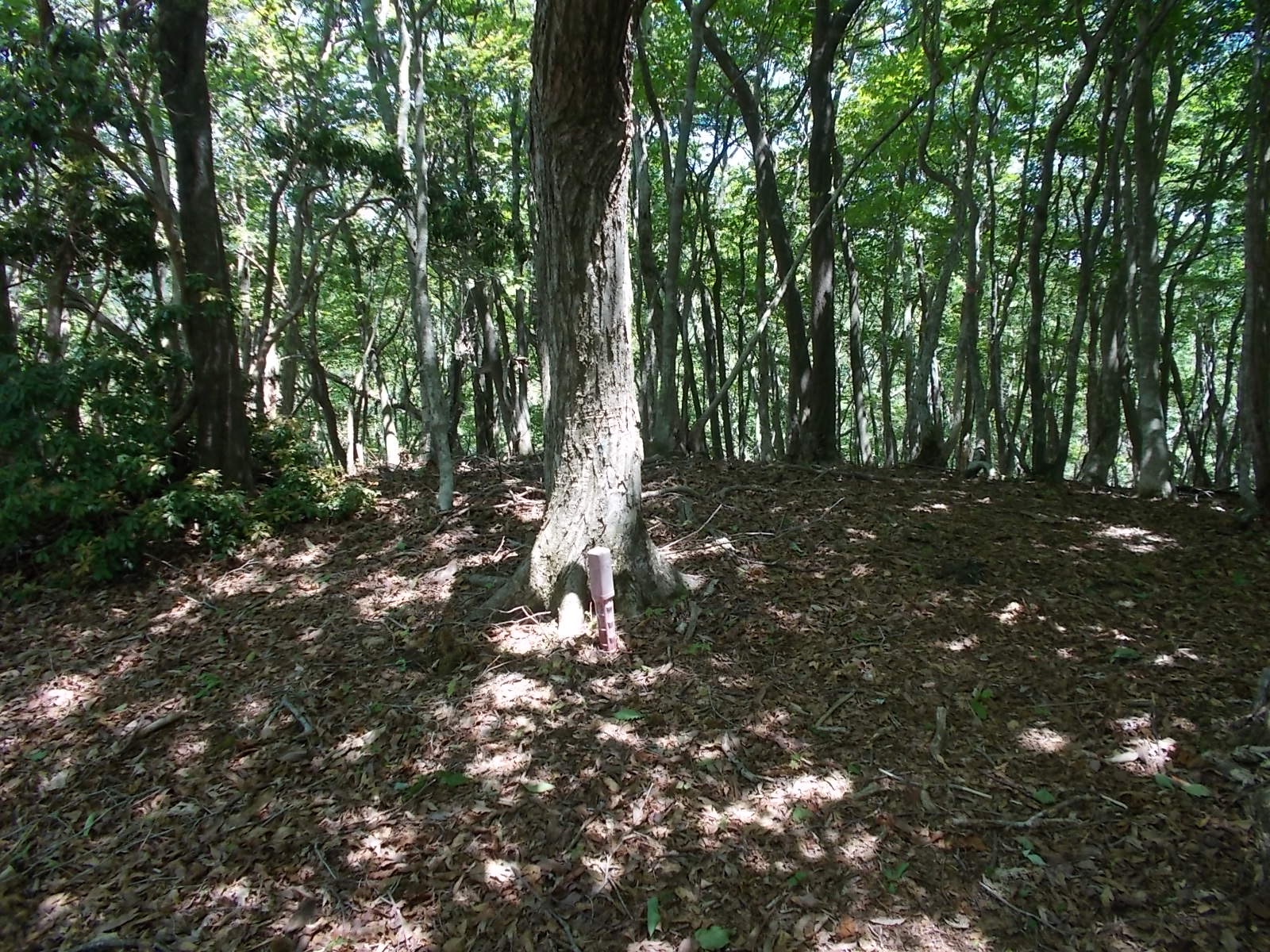 今回は正規の登山口ではなく市境を進むのですが、取り付きがわからず適当に登れそうな所から入りました。だんだん厳しい上りになり、左へ左へと逃げるうちに正しいルートに出て、しばらく登ると山頂に着きました。