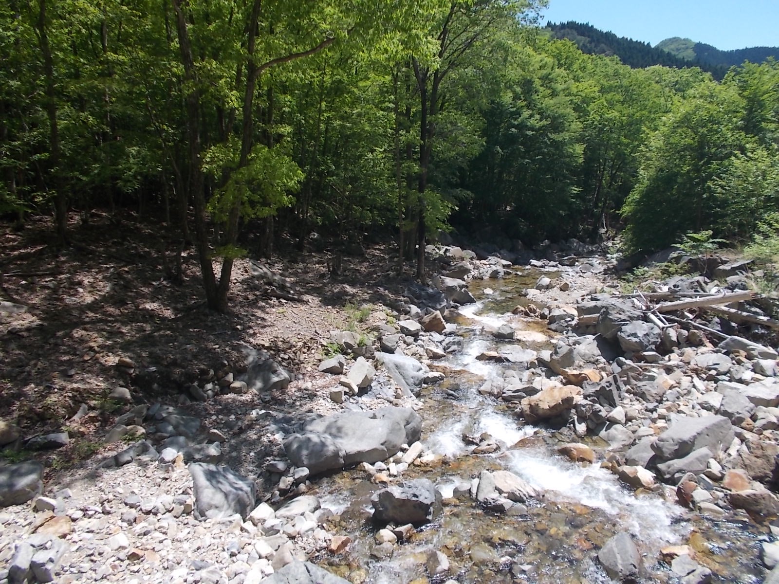ずっと下りで、川の流れを見ながら歩けるのでさほどの苦しさはありません。秋には絶好のハイキングコースではないでしょうか。