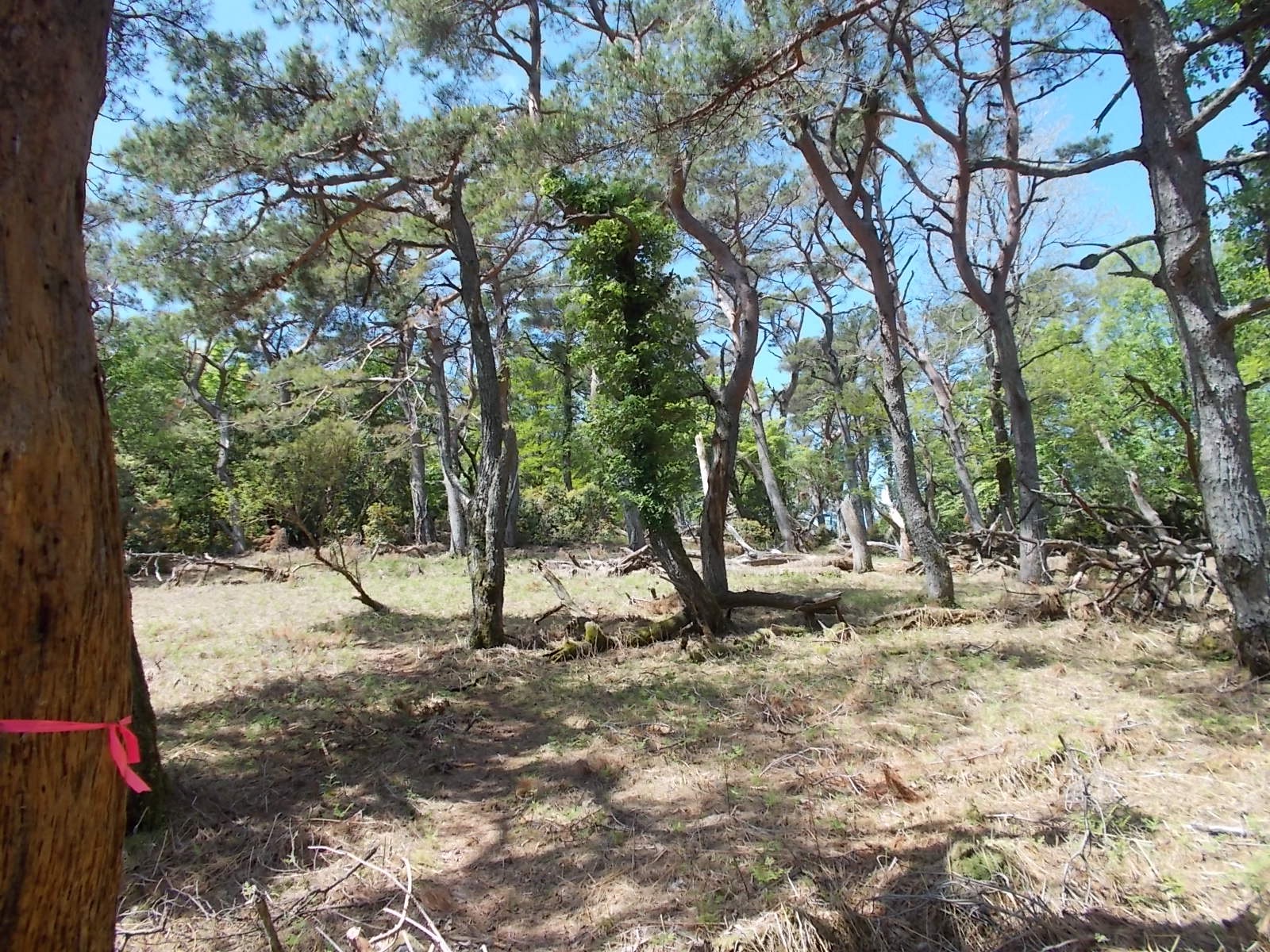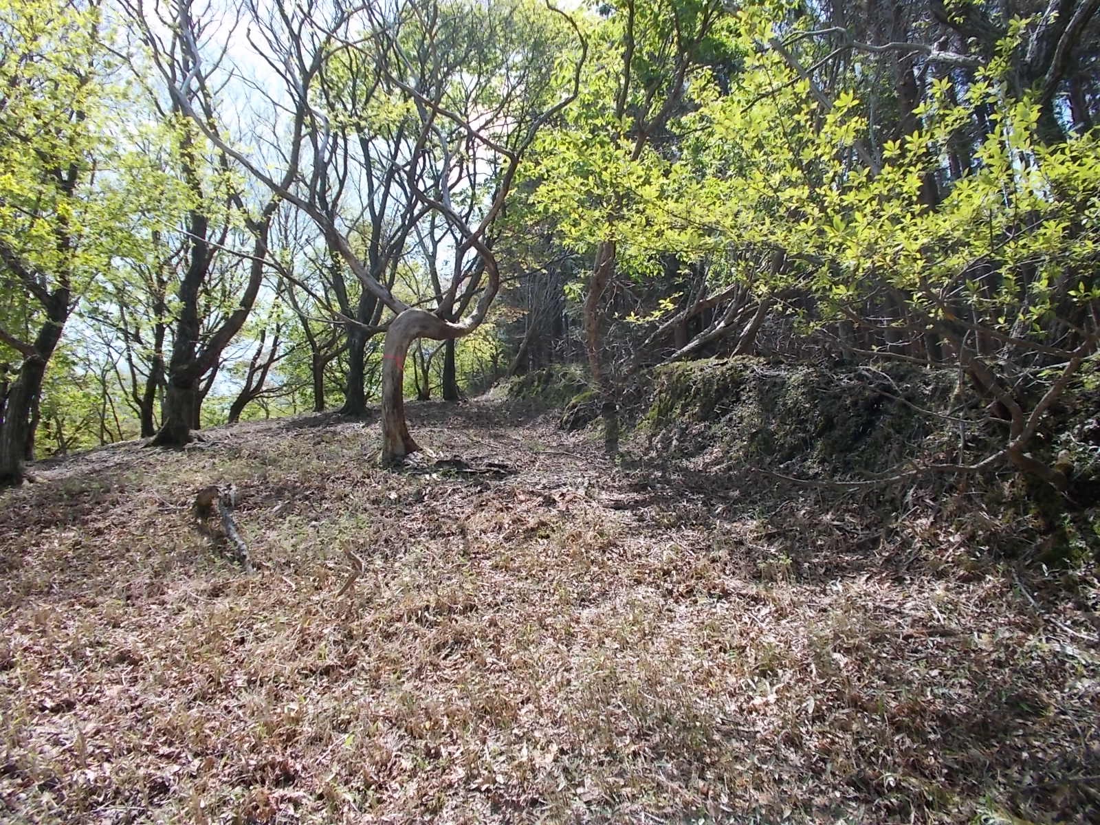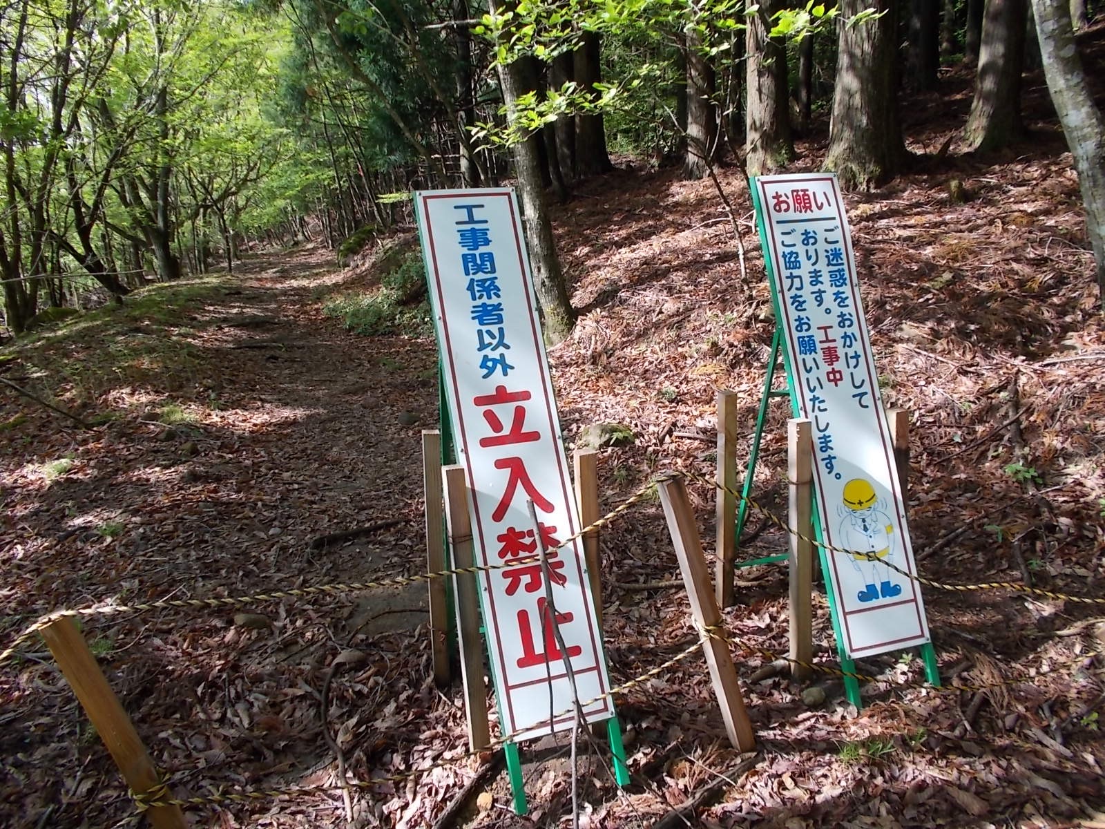 ハイキングコースをたどって峰山林道に出るつもりが、スキー場の工事のためか道が不明瞭でうろうろしたが、何とか見つけて林道へ、400mほどへ進むと登山口の案内があるので右へ曲がるとすぐに、登山口の標柱が見つかる。土塁を越えた後土塁に沿って進み、作業道を渡った後も土塁に沿って進むと土塁上に山頂標柱がある出石山に着く。ここを越えて右へ進み再び作業道に出るので歩いて行き、案内にしたがって斜面に入るとすぐに乙女岩がり、そこからすぐに熊ノ原につく。同じルートを出石山まで戻りさらに進むと林道に出る。林道に沿って下っていくと岡ノ上への入り口があるのでそこから入っていくと岡ノ上山頂に出る。山頂を越えて少し行くと展望の良い広場に出る。そこから日名倉山から後山、植松山、氷ノ山などが見渡せる。元の林道まで戻り、林道を上っていくと最初の登山口に戻り、林道の向かいから暁晴山土塁ルートに沿って山頂を目指す。山頂手前のアセビを越えるとすぐに暁晴山山頂に着く。ホテルまでは舗装された管理道を戻り、スキー場の様子を見てきました。斜面は削ったままだし、設備はほったらかし状態で、この先大丈夫なんでしょうか。しかし、雨で土砂が流されるのは何とか防いで欲しいものです。