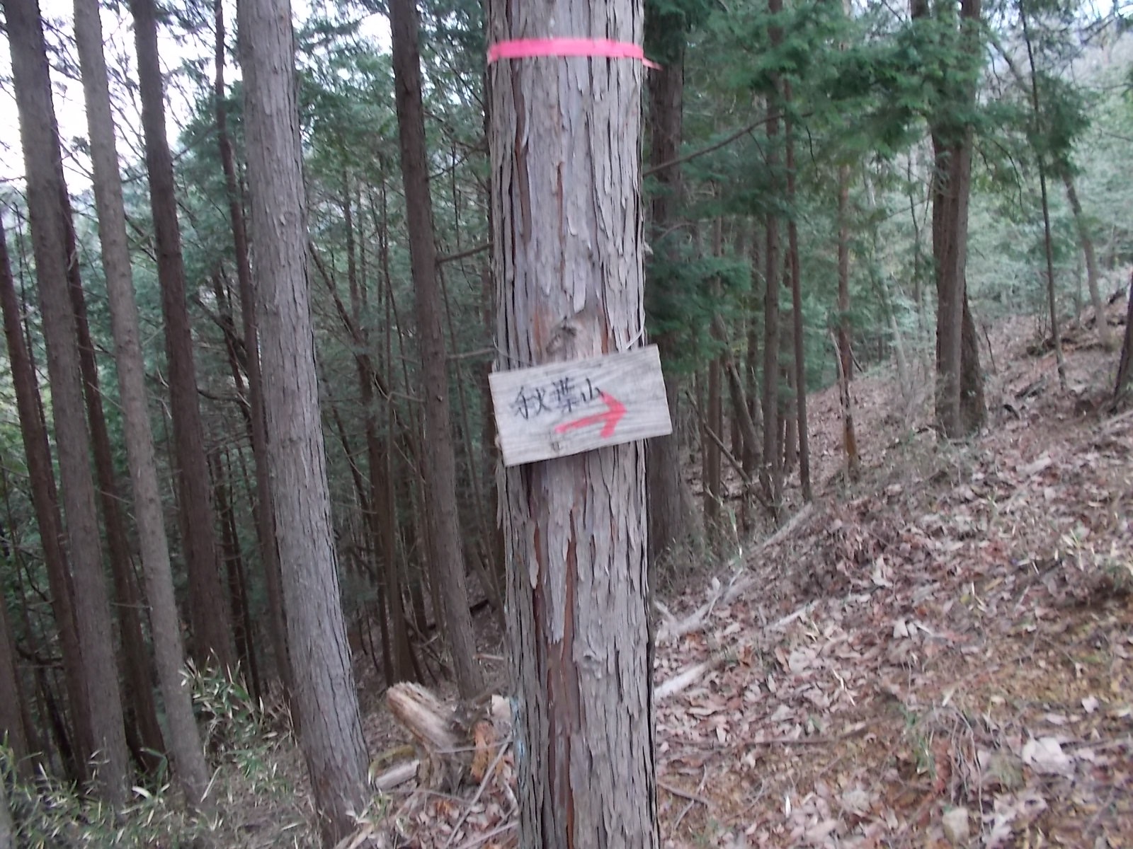 ここから少し北へ歩くと登山口の標柱があるので、ここを右折し坂を上る、旧小学校手前の斜面に取り付きがある。ここがスタートです。