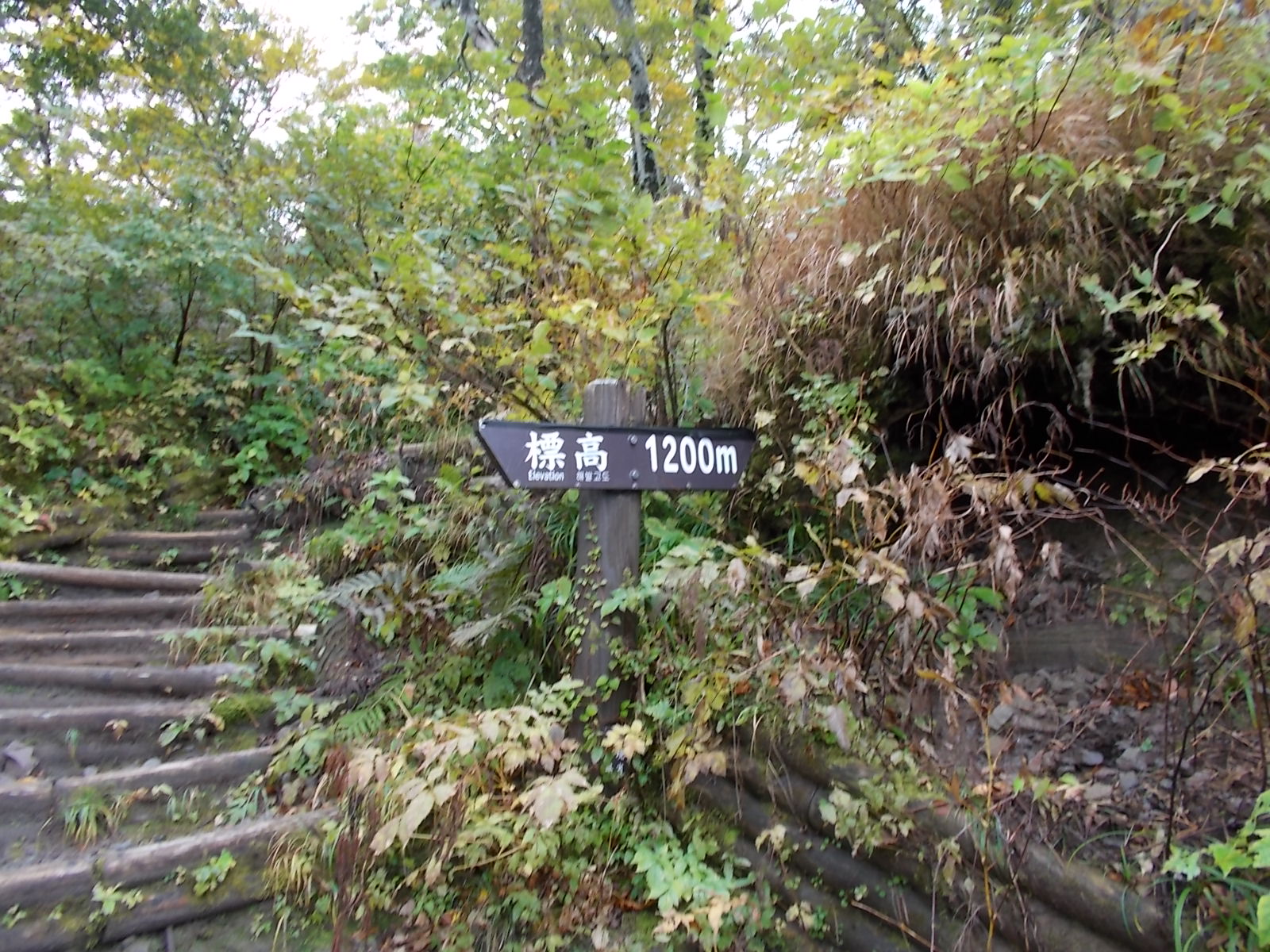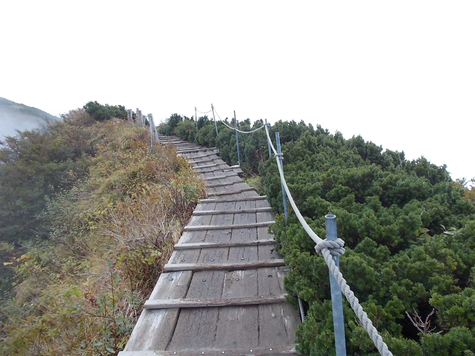 木道をひたすら上ると山頂に着きました。ここからもさっぱり何も見えません。