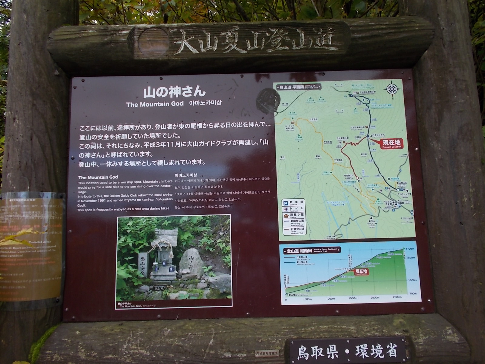 5合目手前の分岐から行者コースに入り、大神山神社奥院から大山寺を経てホテルまで戻ってきました。