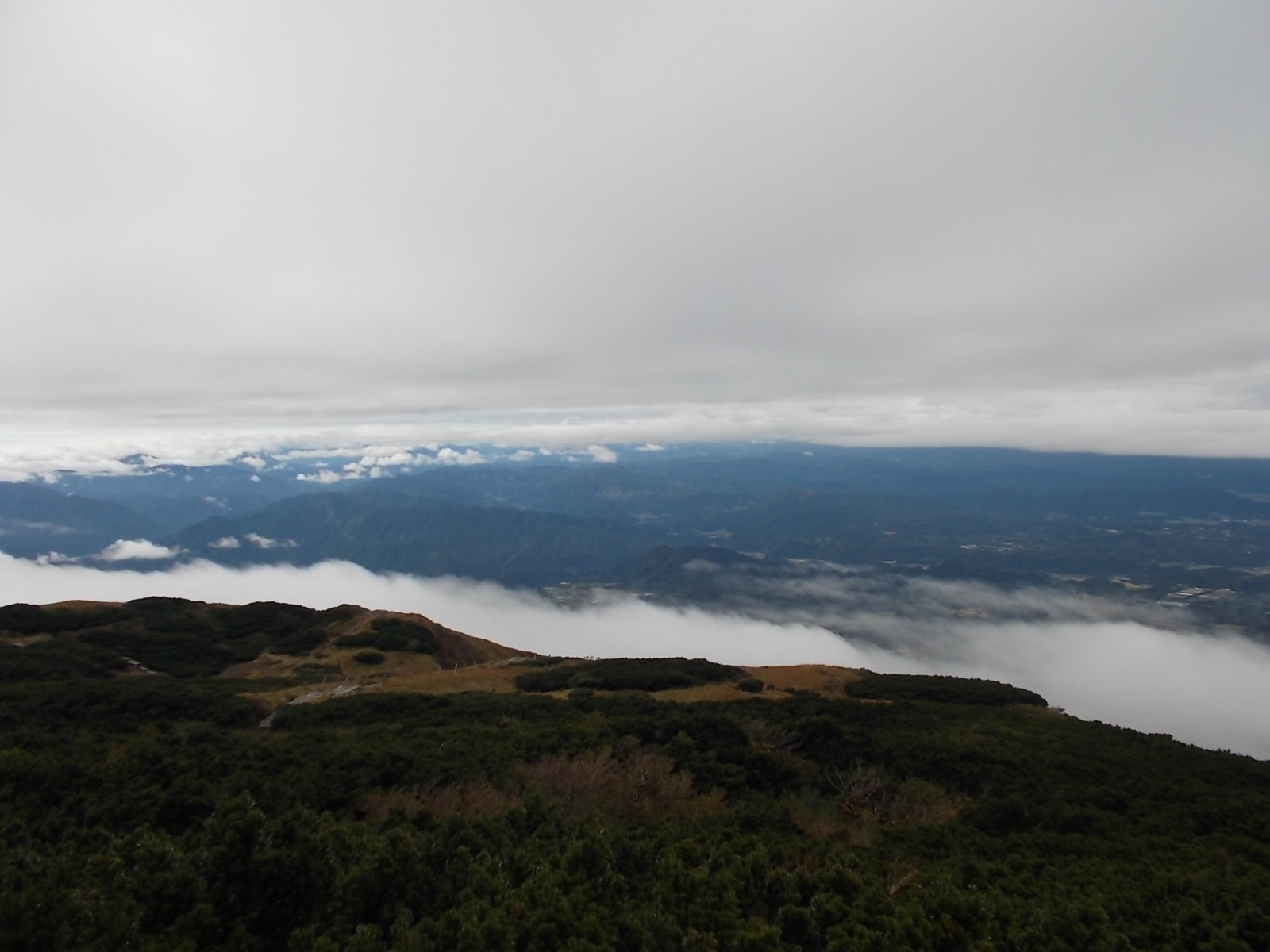 さらに上って6合目を過ぎた辺りからガスが消えてきて、日本海から弓ヶ浜、宍道湖、中海や米子、松江の町並みがよく見えました。