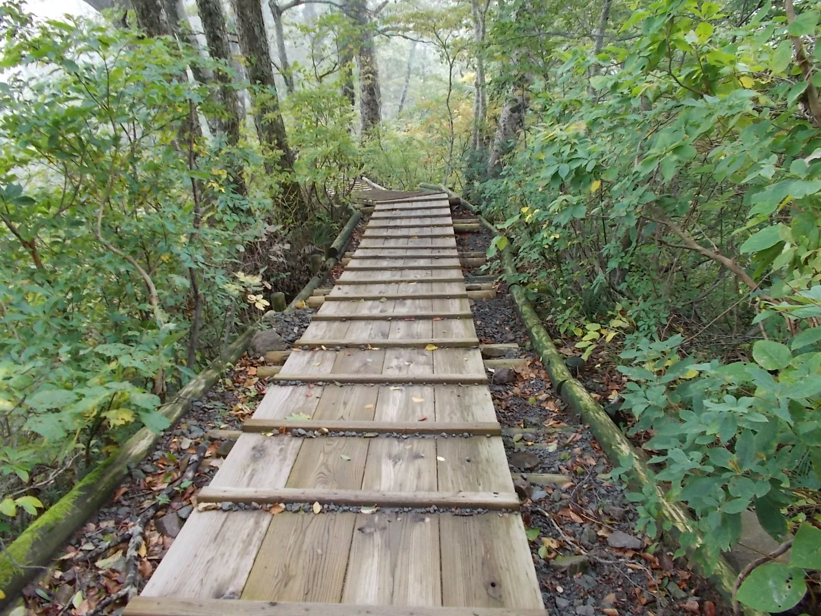 ここからちょこっと歩いて登山口へ行き、夏山登山道を上ります。登山道は少し濡れた状態ですが滑ることなく上れます。
