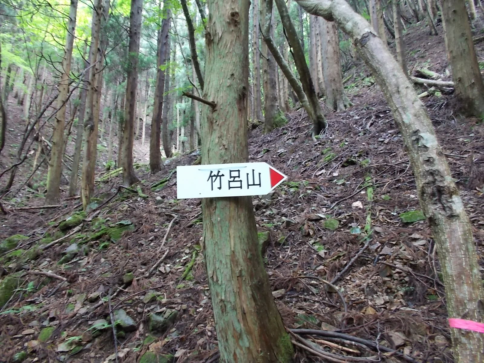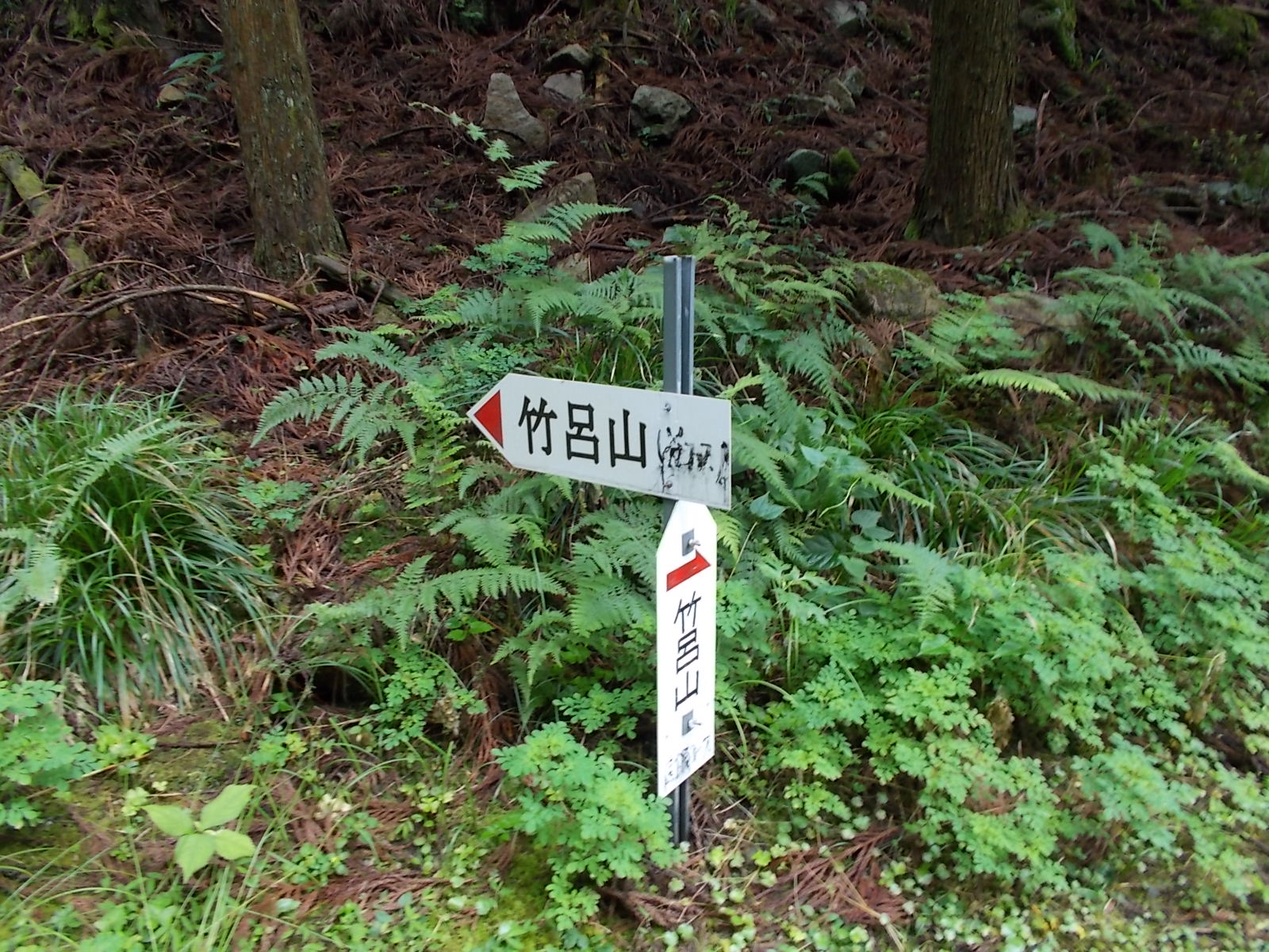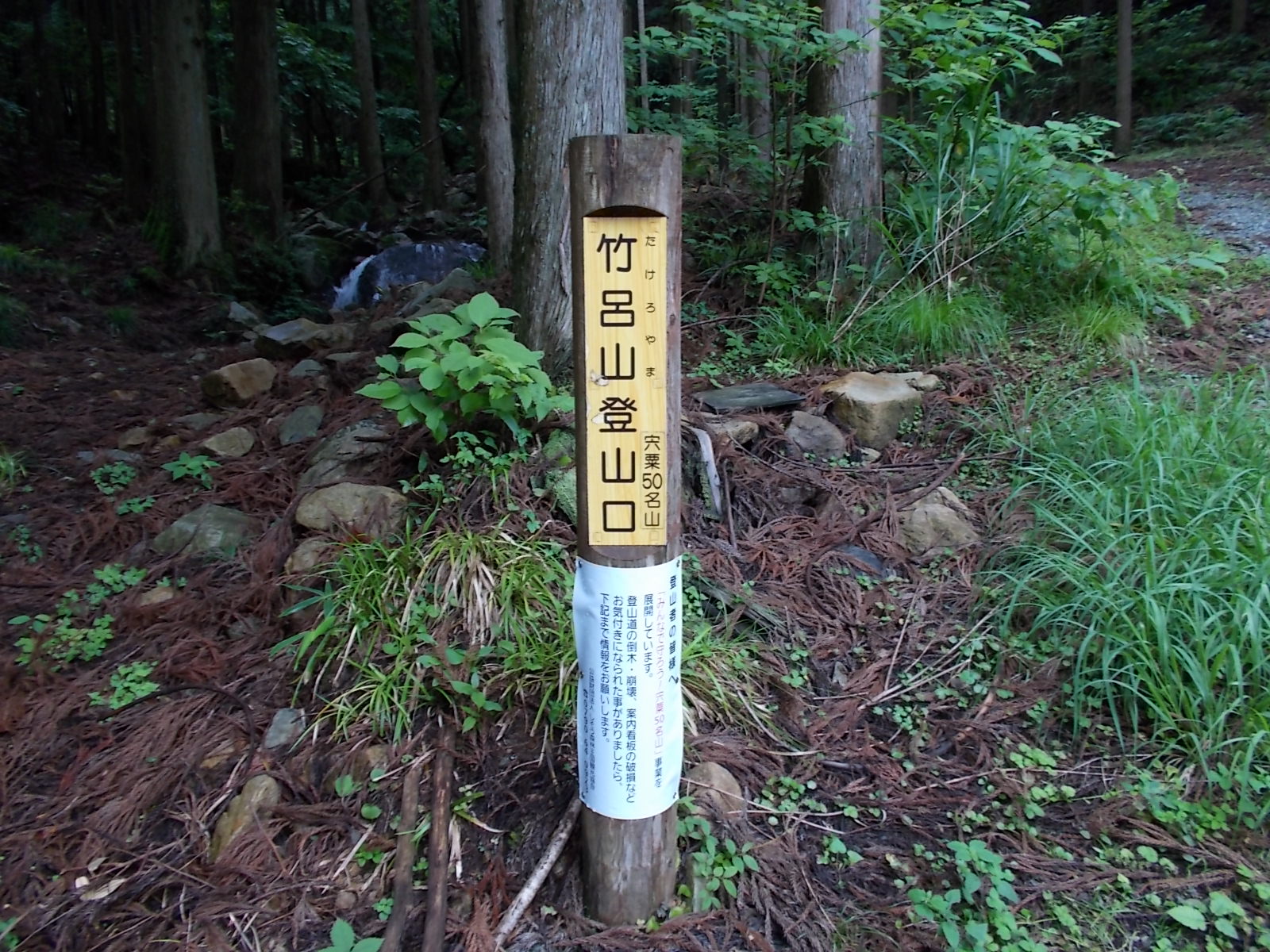 千種高原への案内は無視して直進、三室高原を目指す。右手に竹呂山登山口の案内をみて右折し、林道を奥の広場まで上り、そこに駐車する。