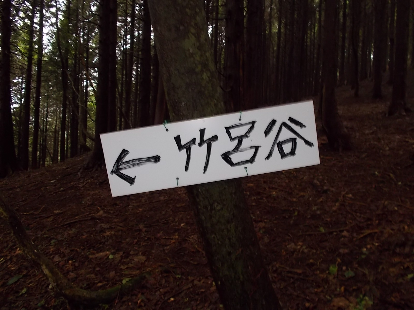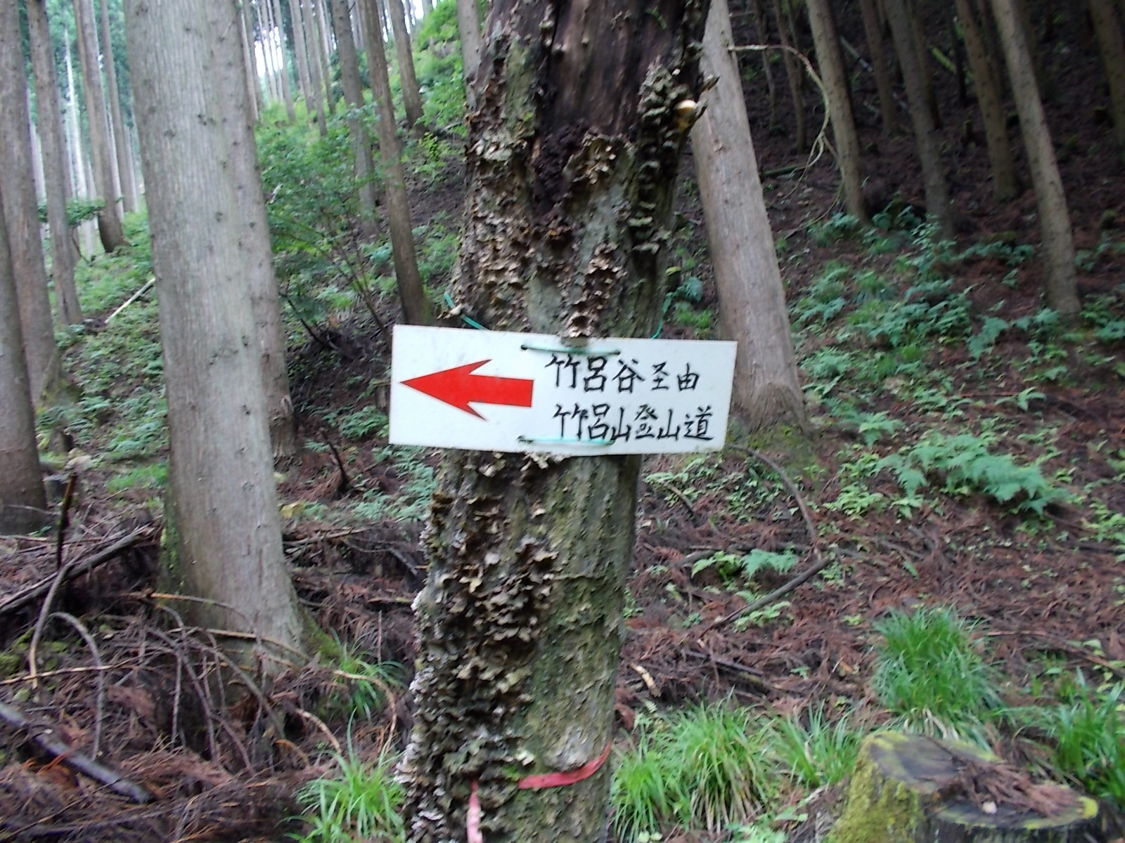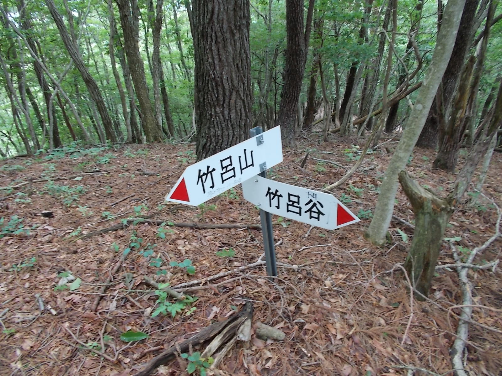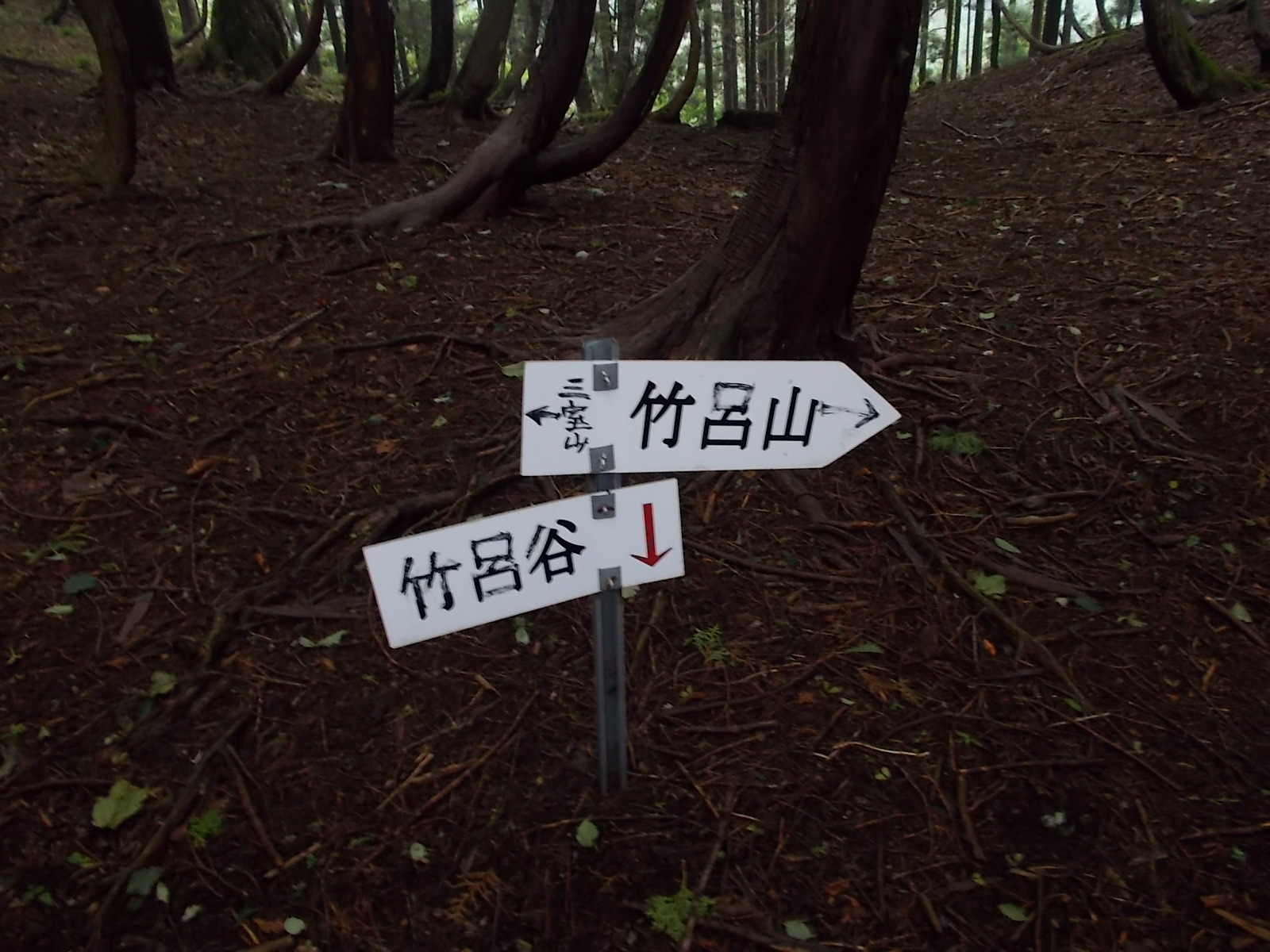 千種高原への案内は無視して直進、三室高原を目指す。右手に竹呂山登山口の案内をみて右折し、林道を奥の広場まで上り、そこに駐車する。