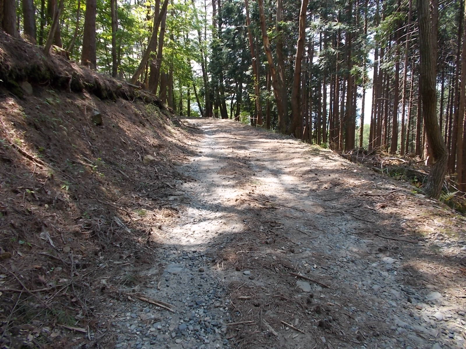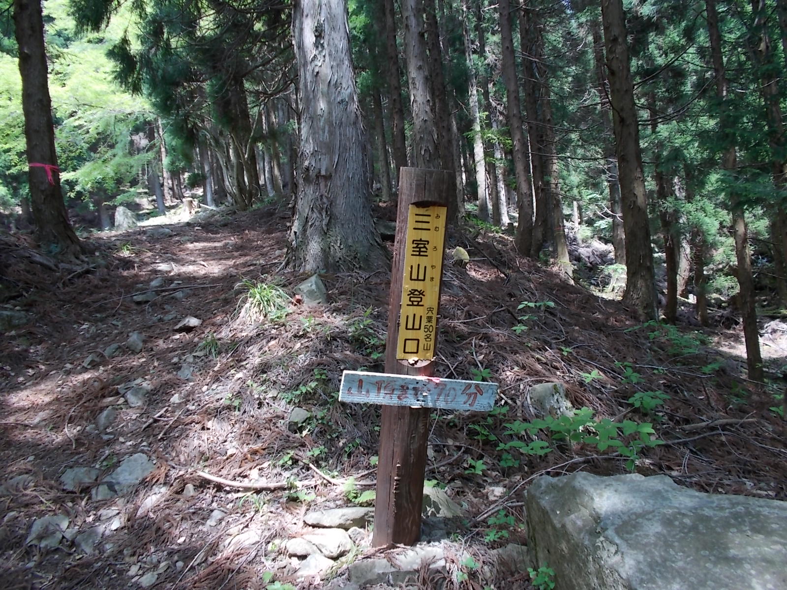 林道に沿って上り、登山口の案内柱に従って荒れた林道を上る。次の登山口標柱より登山道になり、徐々に高度を上げていく。