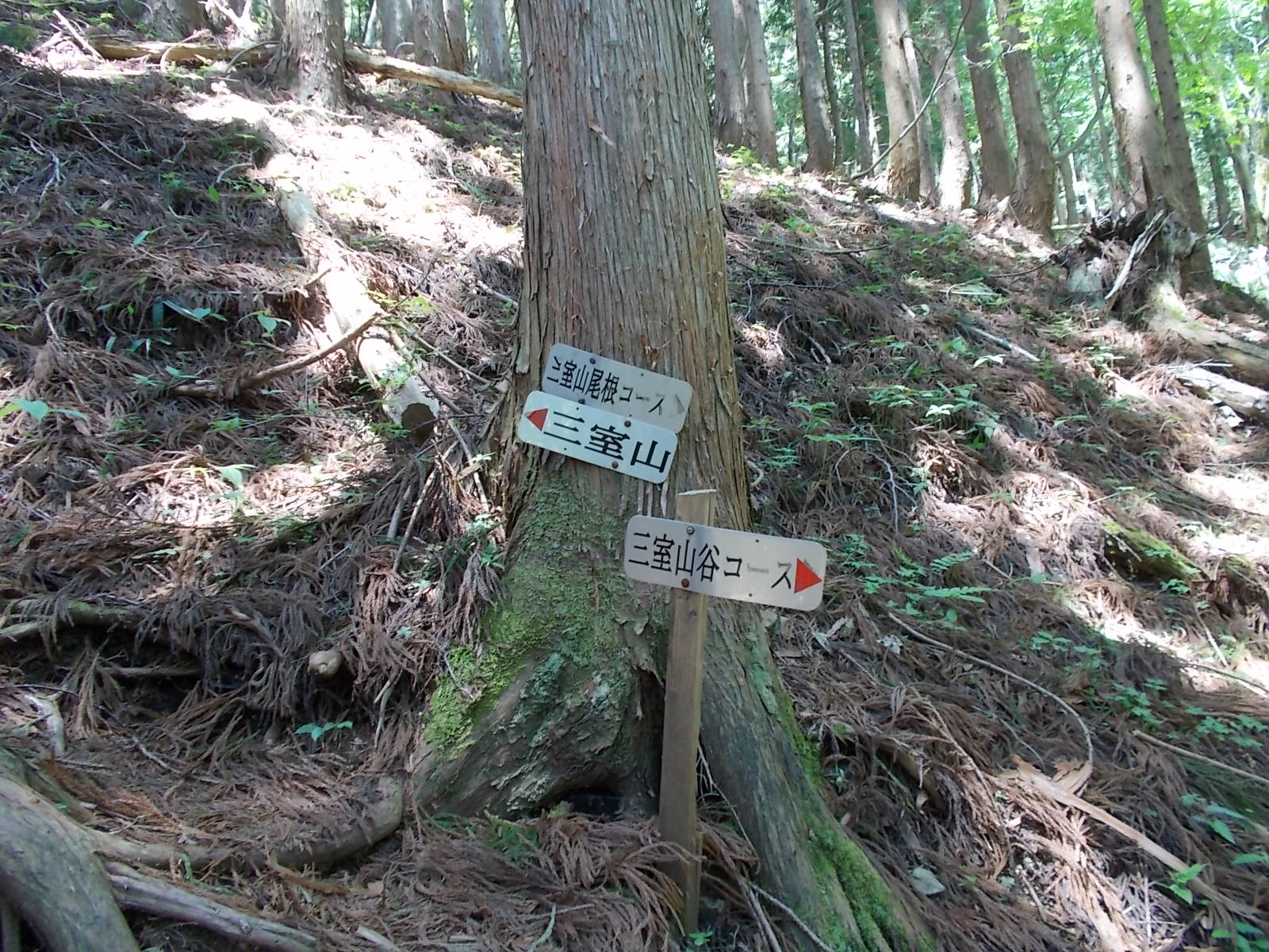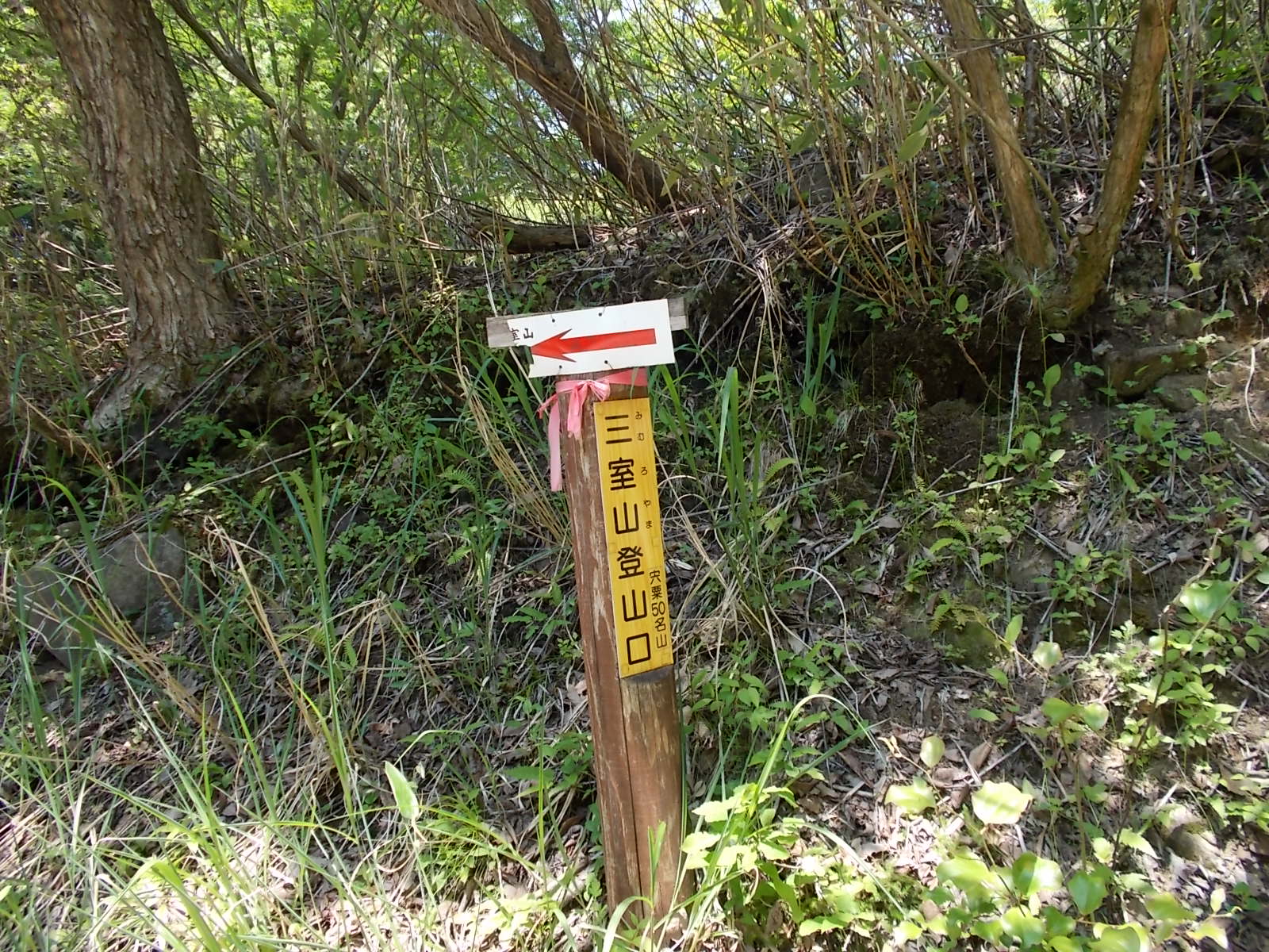 千種高原への案内は無視して直進、三室高原に入る。右手に竹呂山登山口の案内、左手に三室の滝の案内を見て進み、