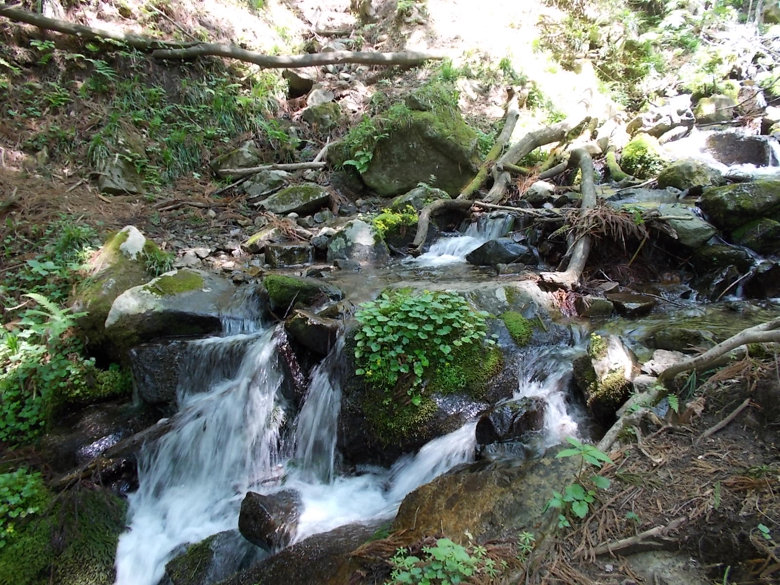 この間ほぼまっすぐです。千種川源流モニュメントから大きく左へ迂回し、さらに上っていくと、3m近い岩登が待っています。ロープや鎖もあります。ただ、この岩は足をかける場所が少ないので、上るルートはしっかり決めて下さい。手を置く場所はたくさんありますので、頑張ればすぐに上れます。ここがイヤだなと思ったら、左側に回れば、少し優しめなルートがありますので、そちらをご利用ください。危険な場所はここだけです。