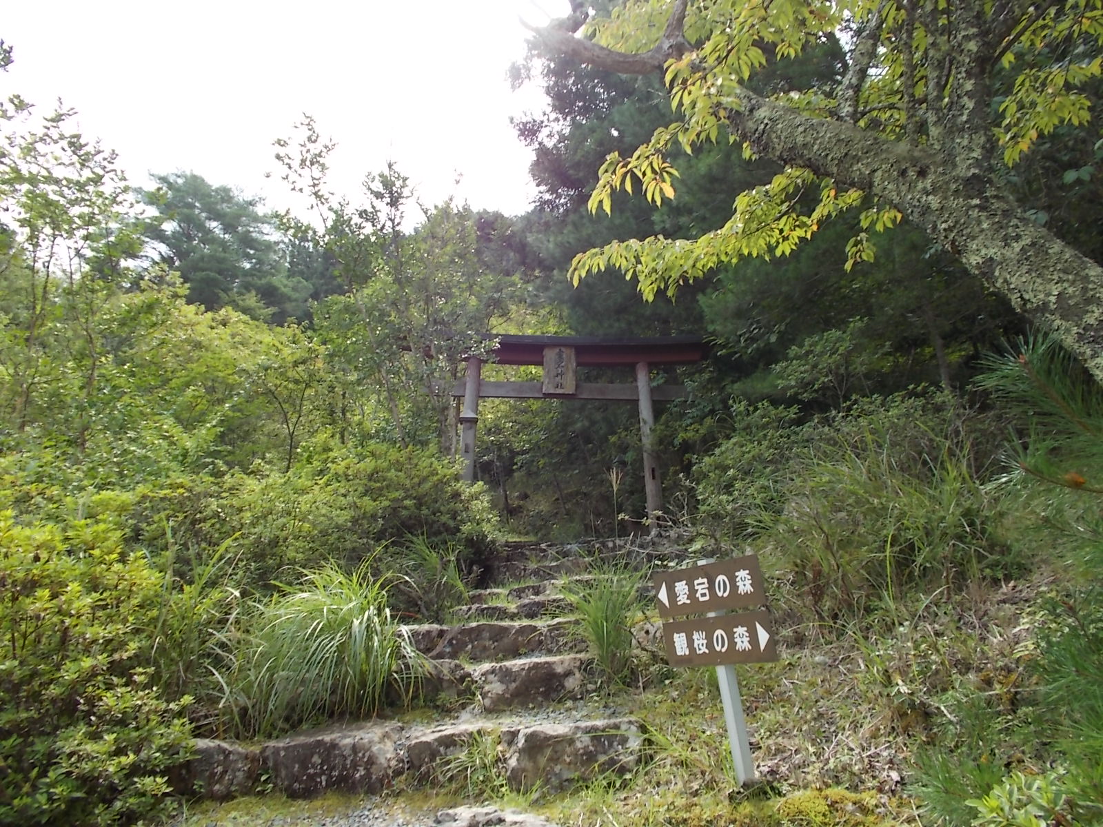 そこからさらに登り、愛宕神社を超えて林道の三叉路に出ます。愛宕神社付近の林の中には山ヒルがいますので、ご注意ください。大成池の方を通る方がいいと思います。(まあ、あの橋を渡るのもちょっと怖いですが。)