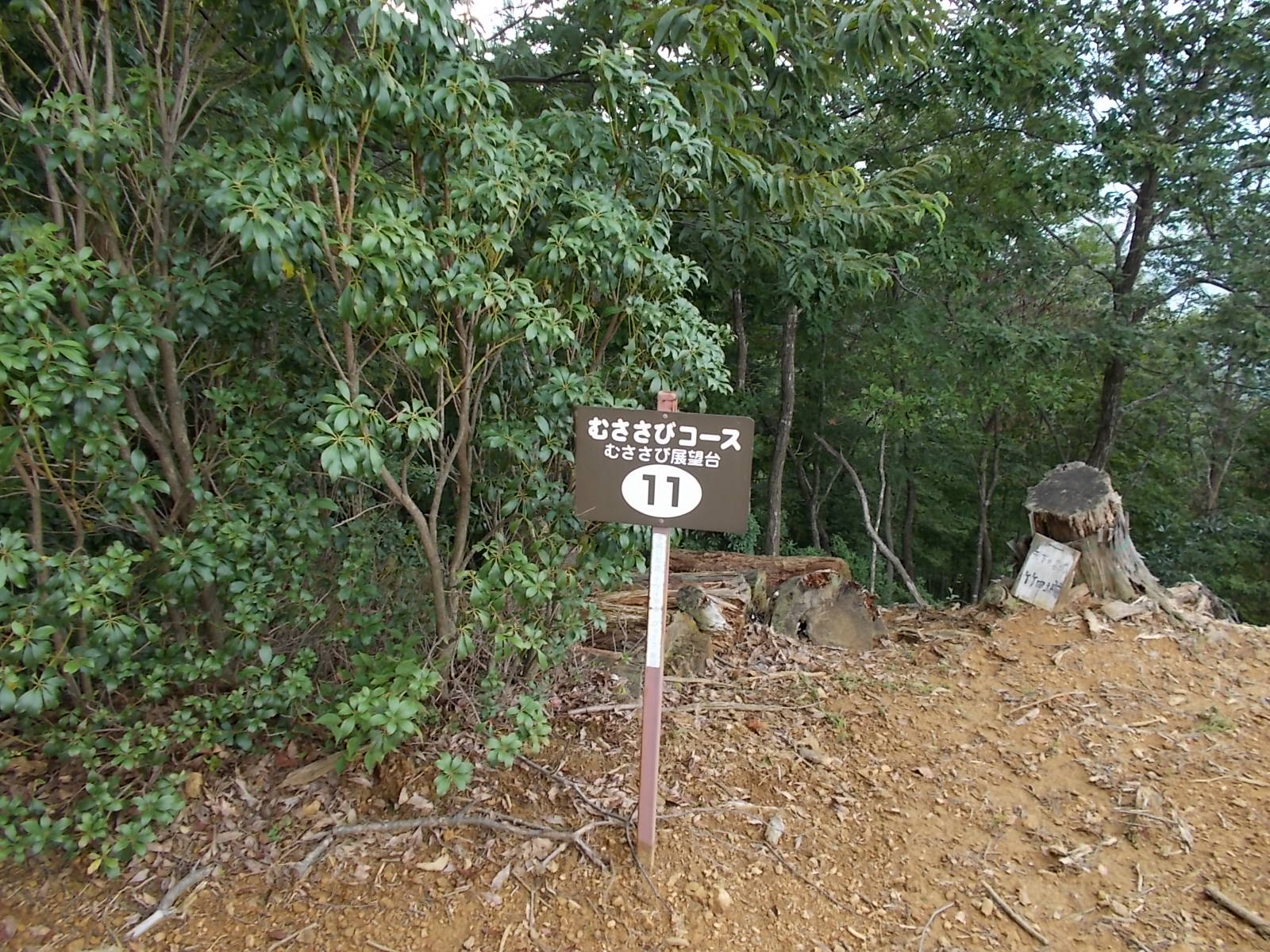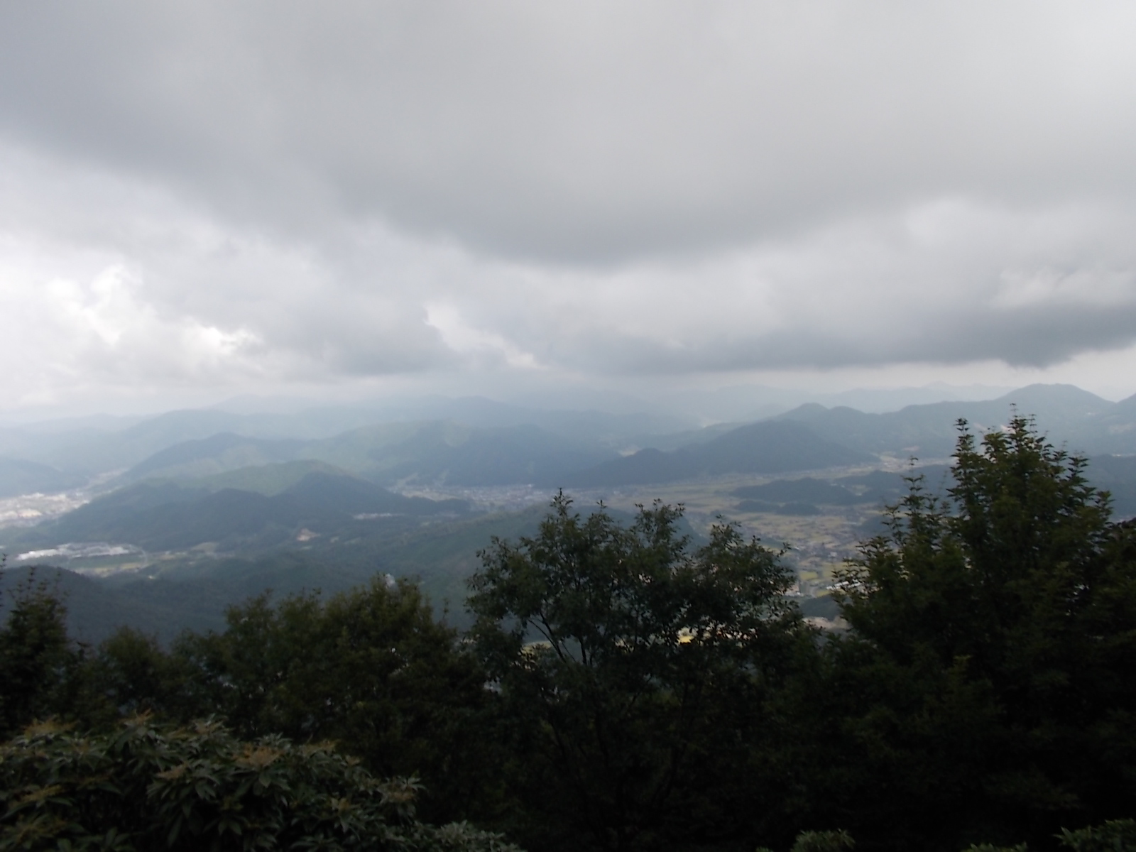 三叉路を右へ行き林道終点から尾根を登るという周回コースもありますが、こちらにはヒルがいるらしいので雨上がりのため止めて、左からのムササビコースで登ることにしました。階段道できつい登りも多いのでけっこう大変なんですが、案内がしっかりしているので安心です。登り切ったところに展望台があります。