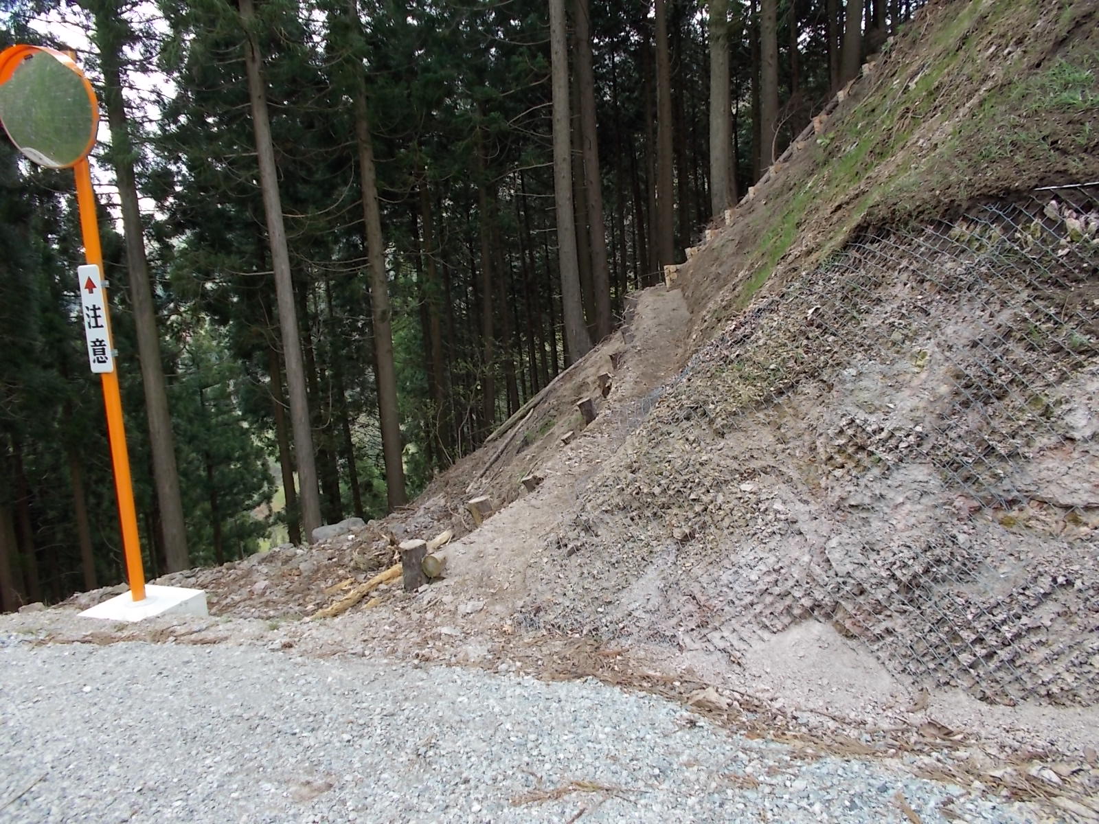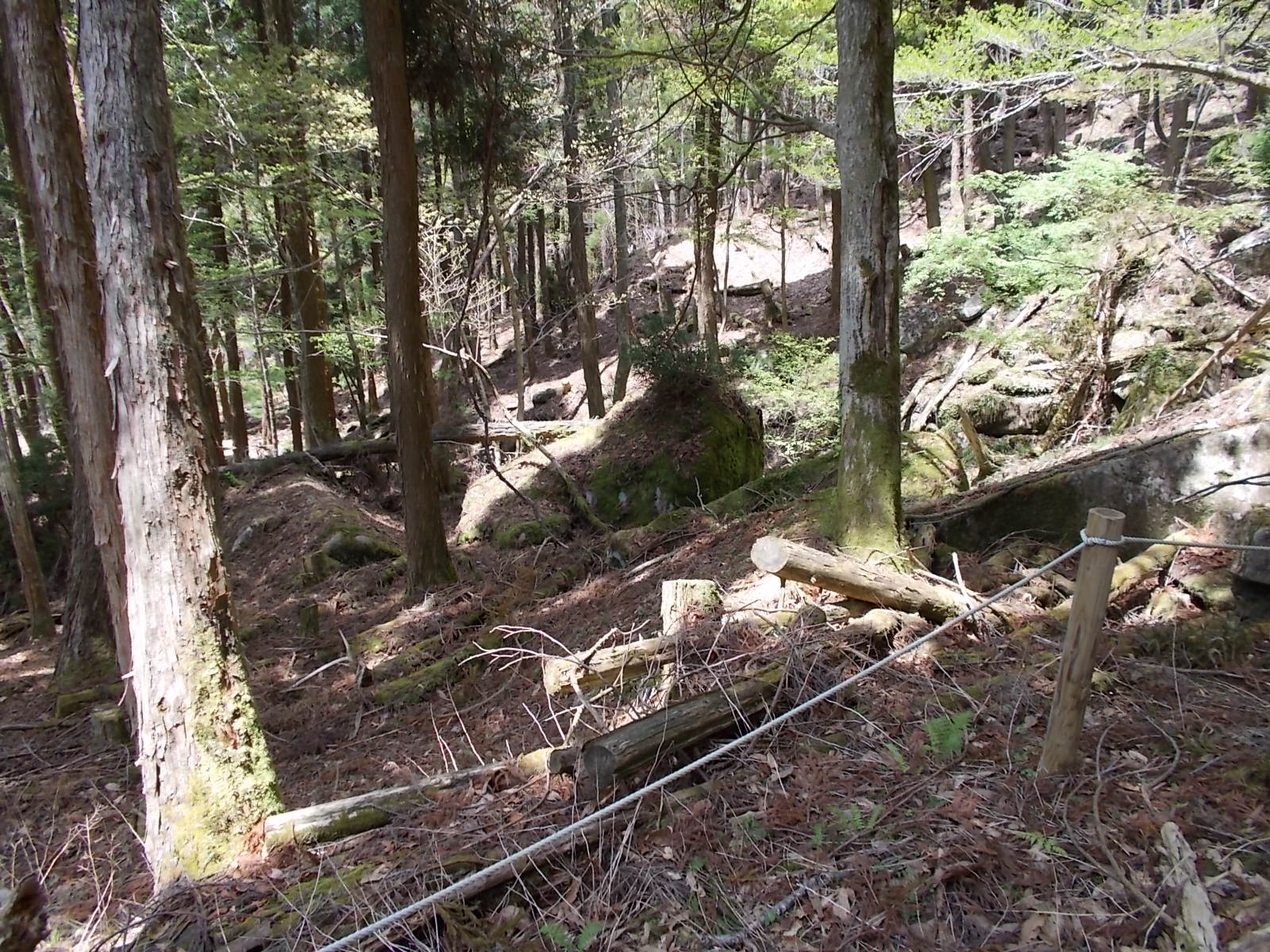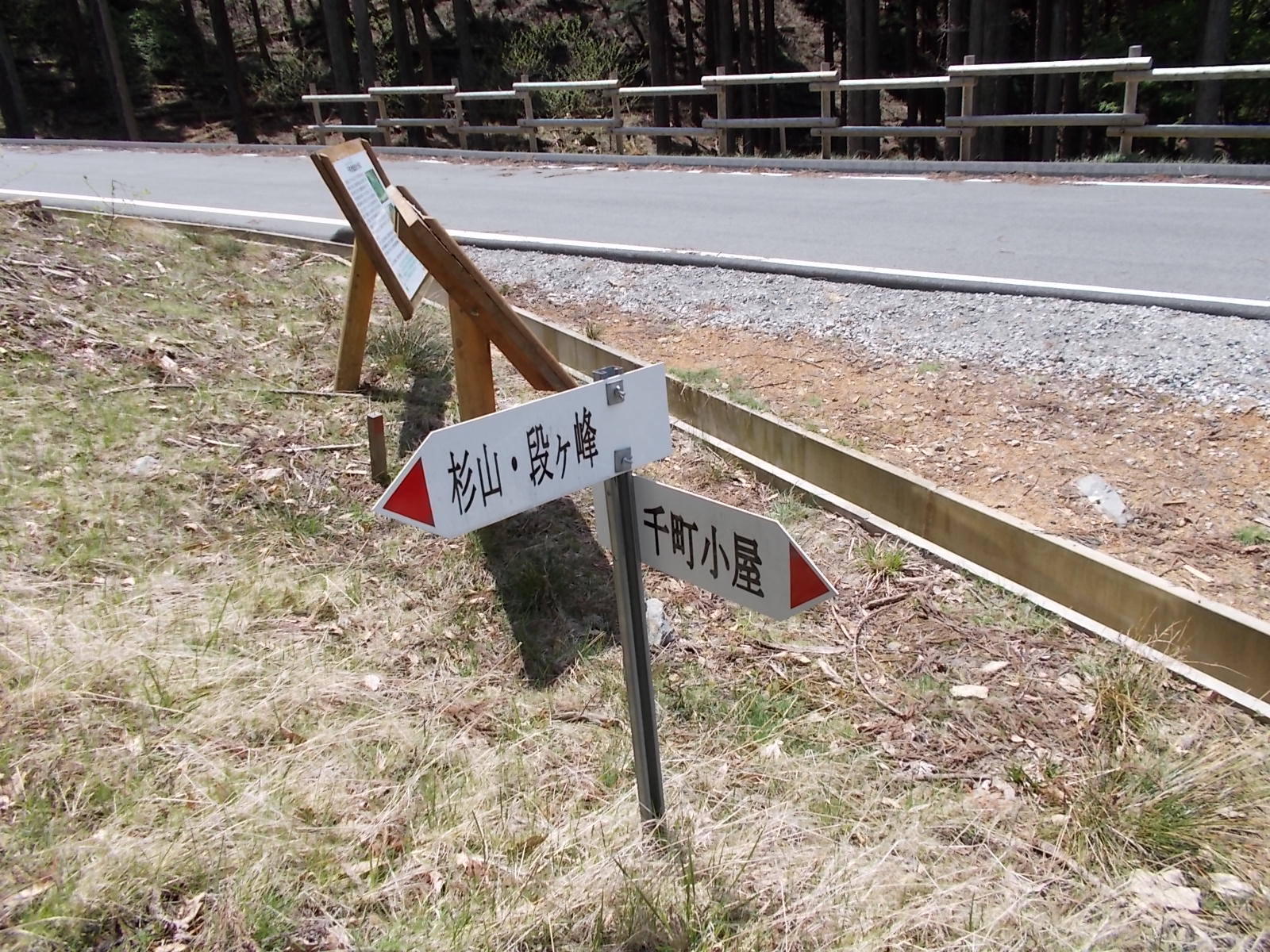 杉山方面に歩いていると途中で林道ができたために、登山道が寸断されてしまい、いったん林道に降りてから上り直します。