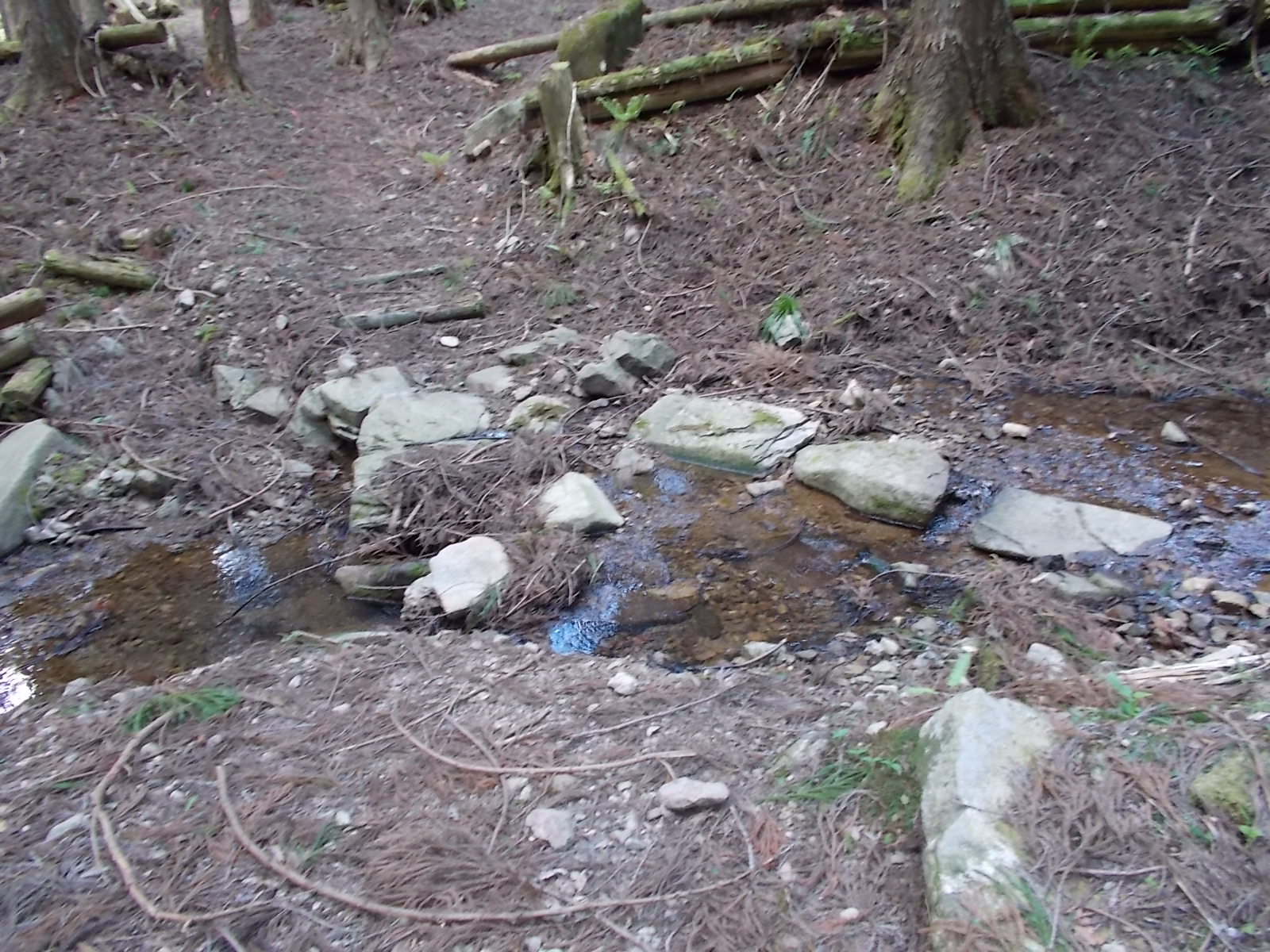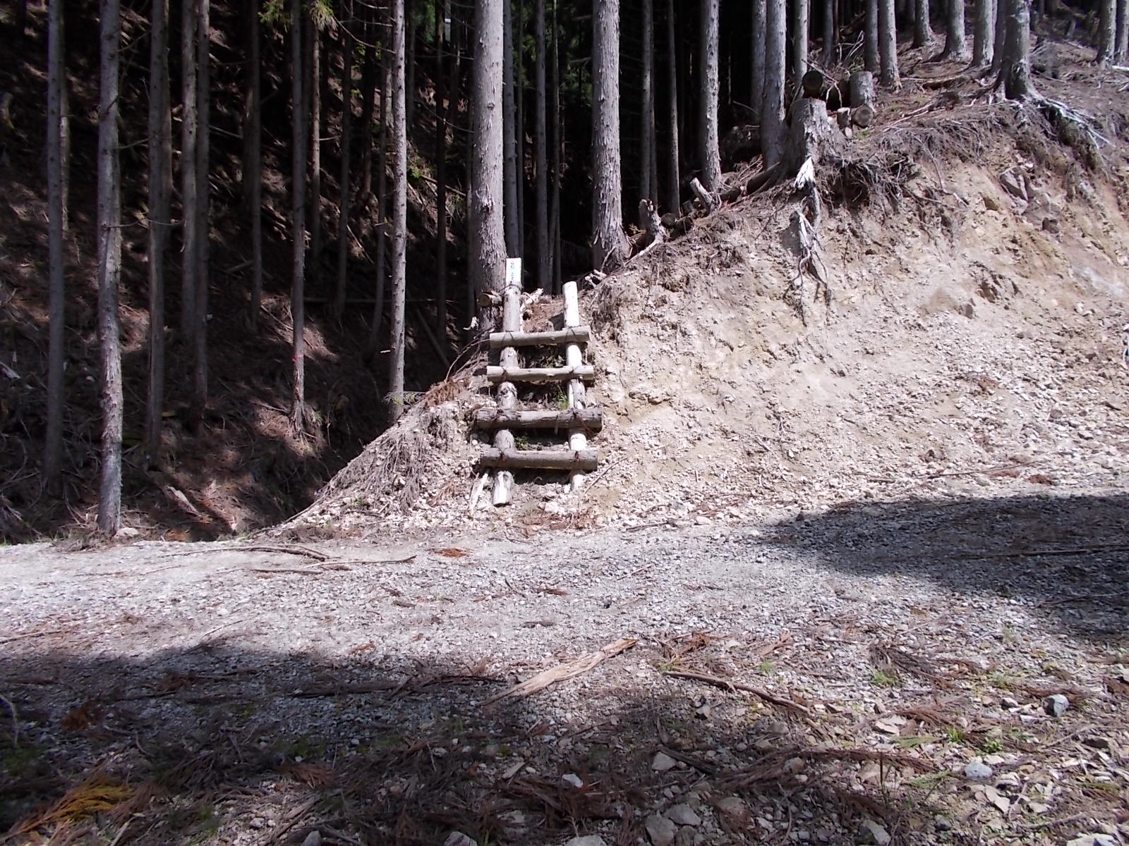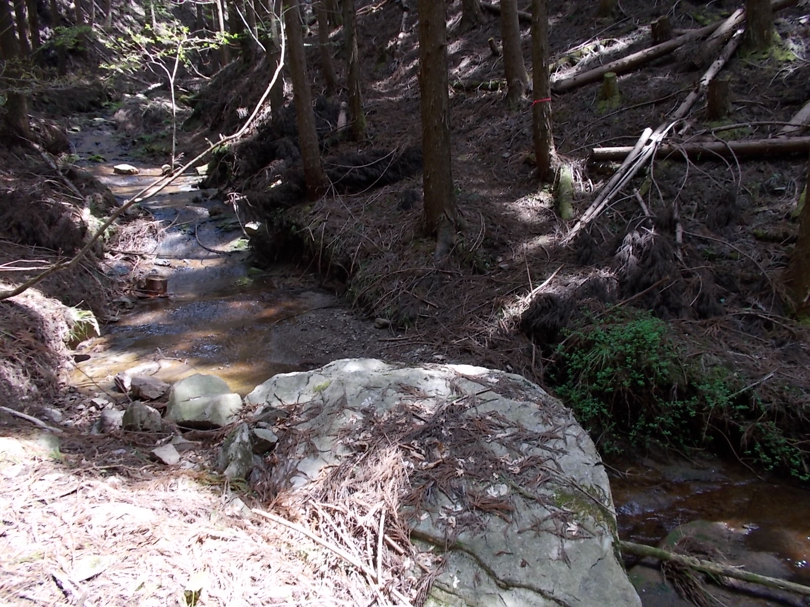 杉山方面に歩いていると途中で林道ができたために、登山道が寸断されてしまい、いったん林道に降りてから上り直します。