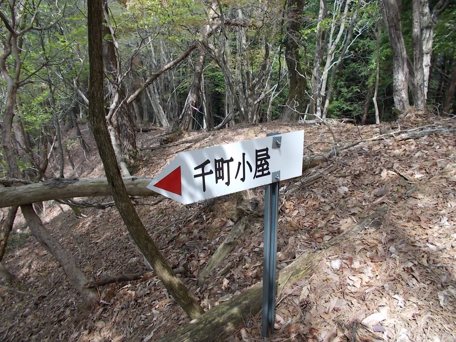 中国道山崎ICからR29を北上し、安曇橋を右折して県道6号に入る。R429の交差点を過ぎ、百千家満集落に入り、右に見える「草木、千町」の標識に従い右折する。道なりに進み、こぶしの村キャンプ場を過ぎ、しばらく行くと左手に千町小屋が見えてくるのでそこに駐車する。