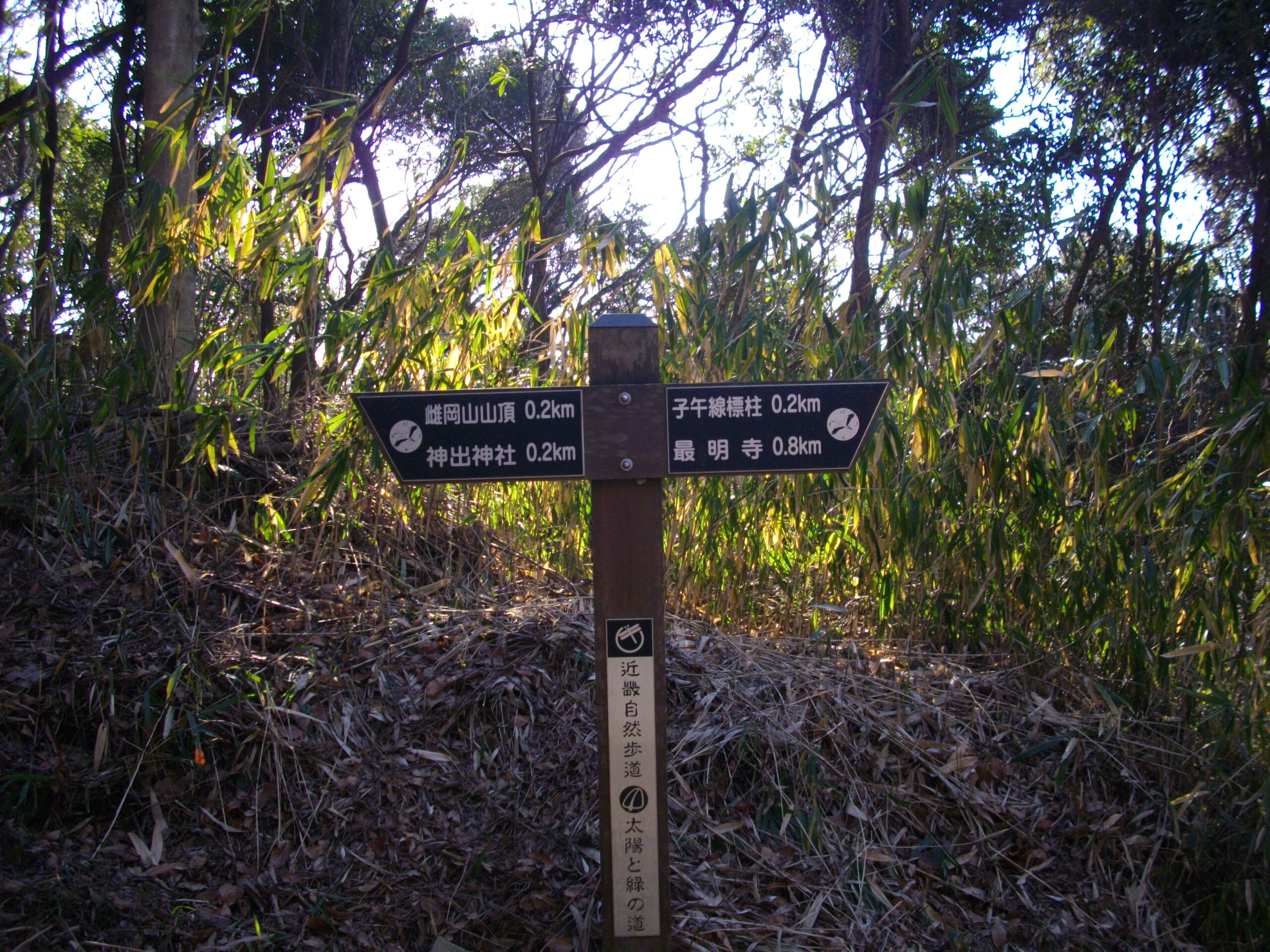 雌岡山西側登山口 → 雌岡山山頂 → 梅林 → 東側登山口 → 金棒池 → 雄岡山西側登山口 → 雄岡山山頂 → 雄岡山東側登山口 → 金棒池 → (県道) → 雌岡山西側登山口