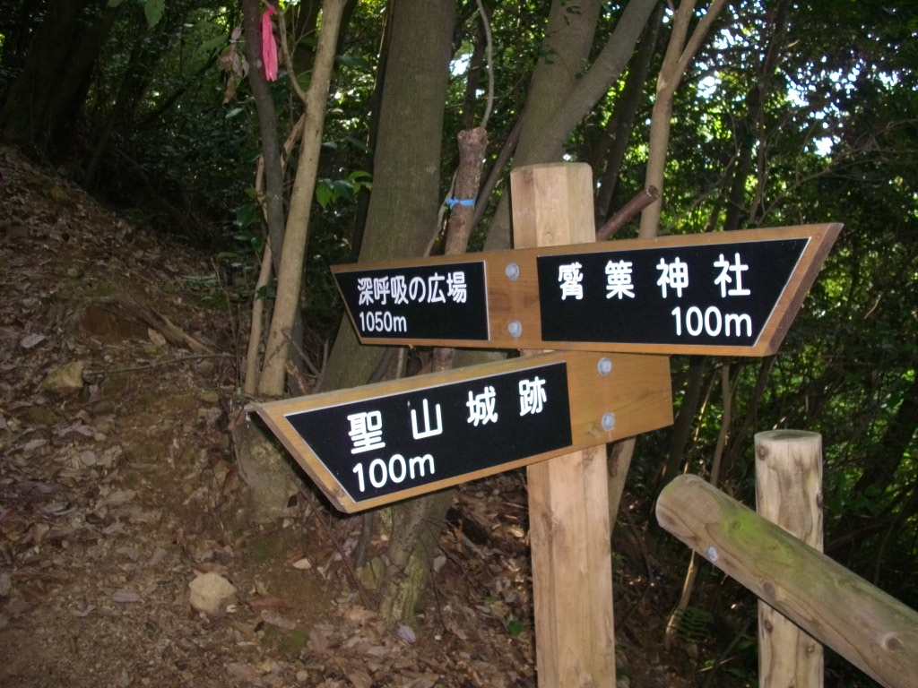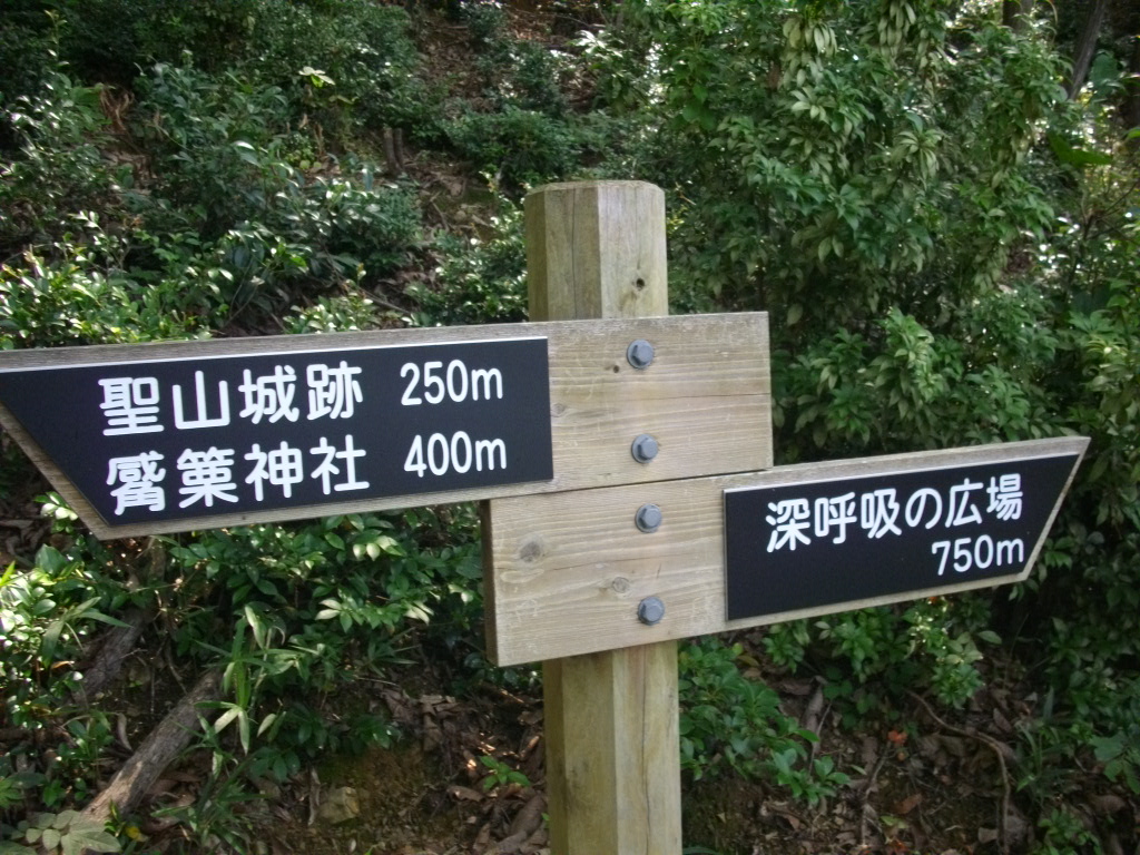 登山口(篳篥神社) → 愛宕神社 → 聖山城跡 → 深呼吸の広場 → ツツジの展望広場 → 山頂 → 登山口(篳篥神社)