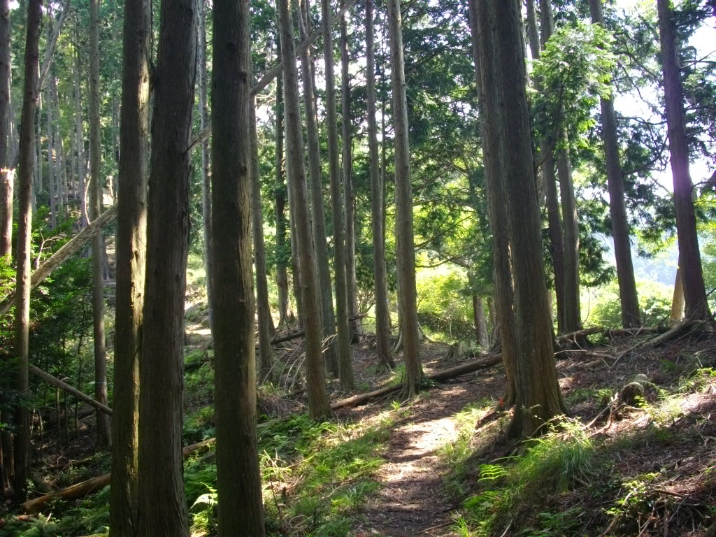 登山道は、自然林、人工林の中を歩くので、低山にもかかわらず、結構涼しいです。