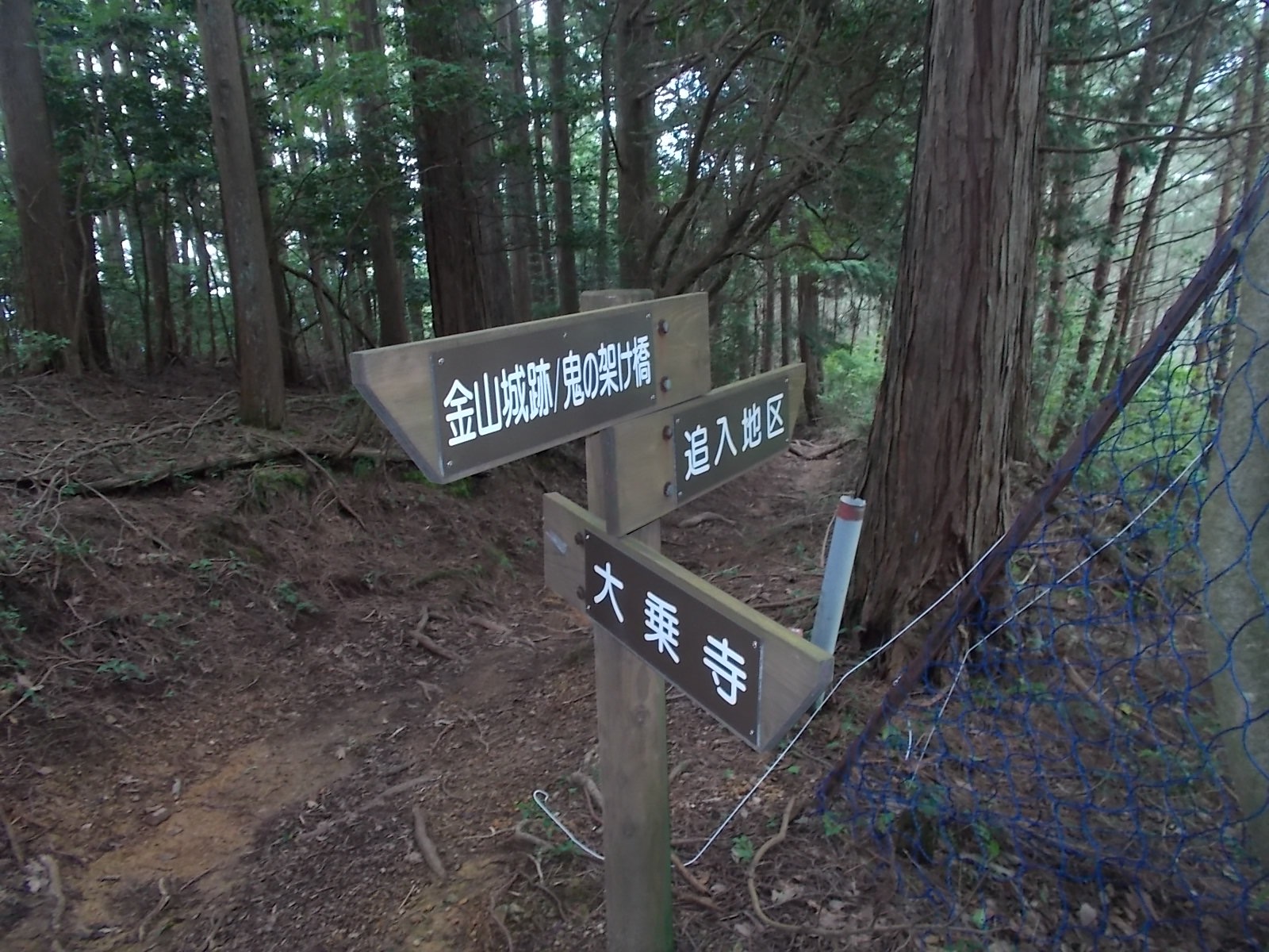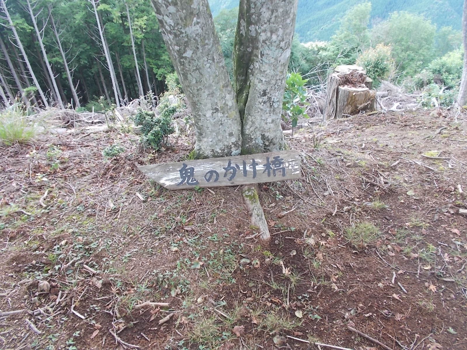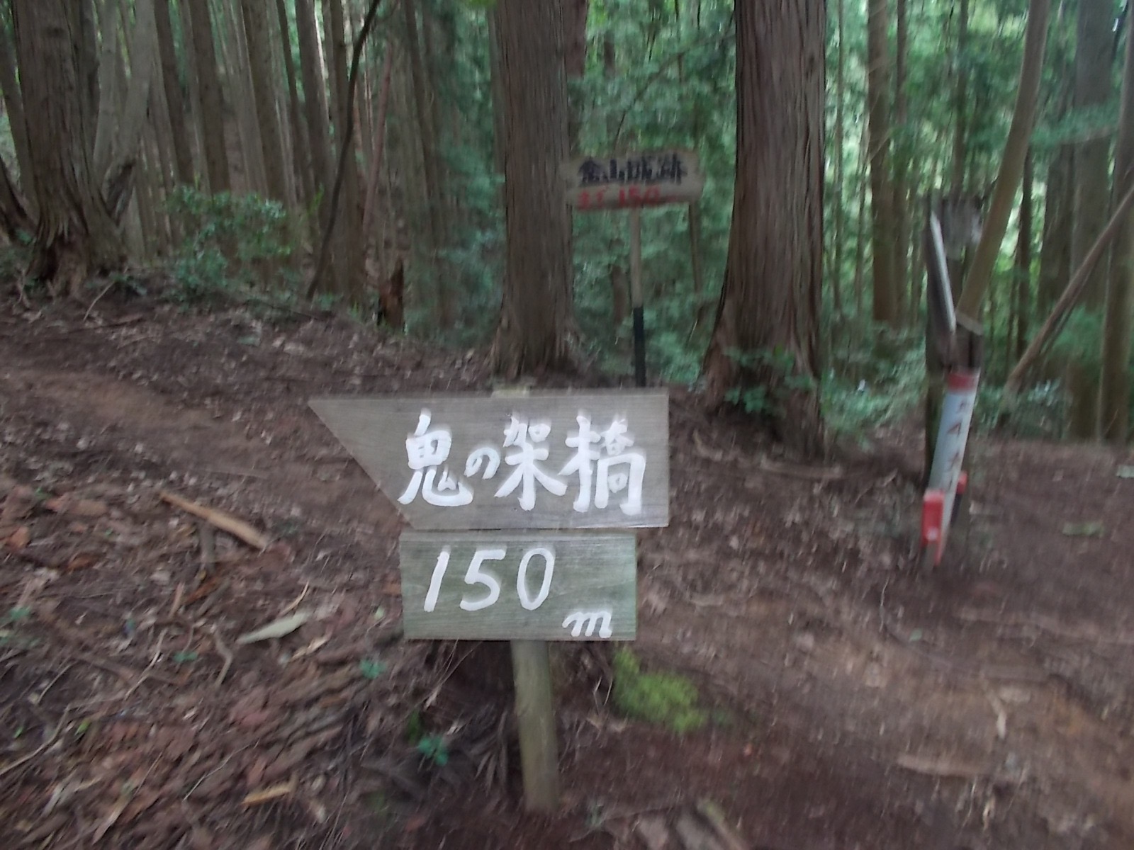 とにかくひたすら上っていくと登山道に出て、鬼の架け橋の案内もあります。