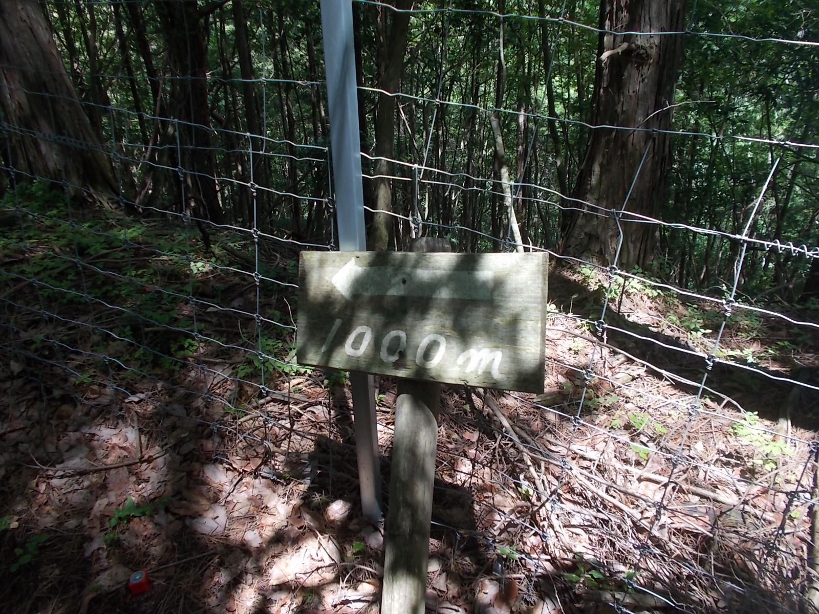 駐車場横に獣柵があり、林道っぽい感じできれいに刈り取られている道があるので獣柵を入り右へ進む。
