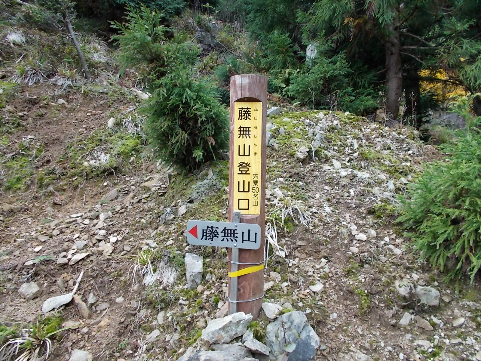 ↑ 藤無山(ふじなしやま)山頂の標柱