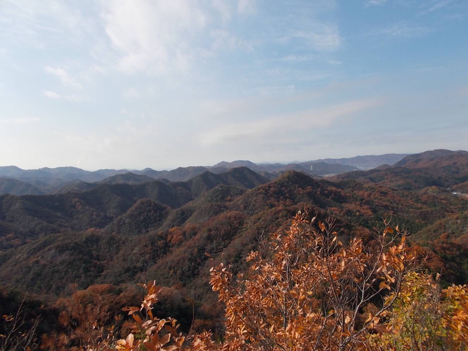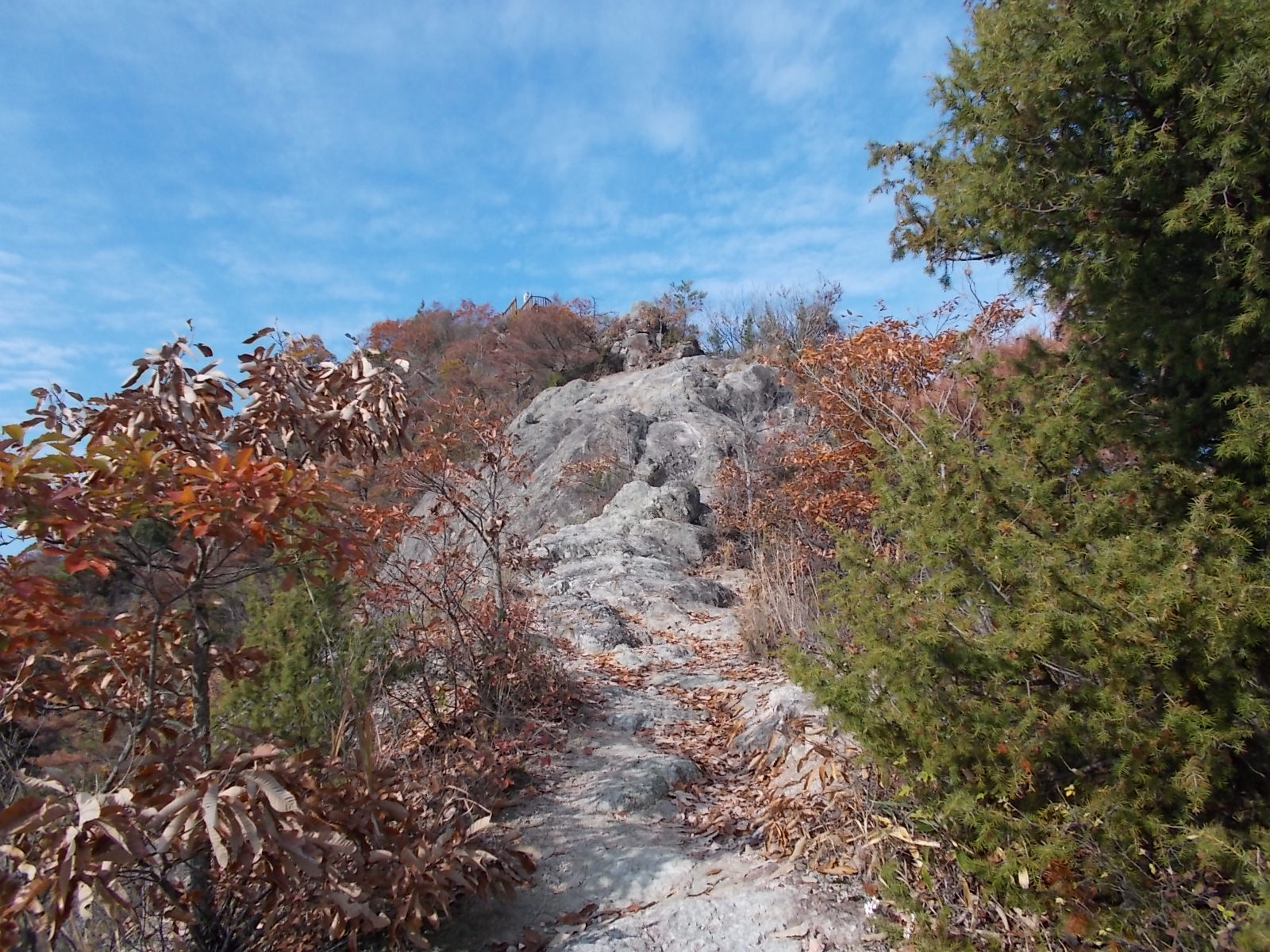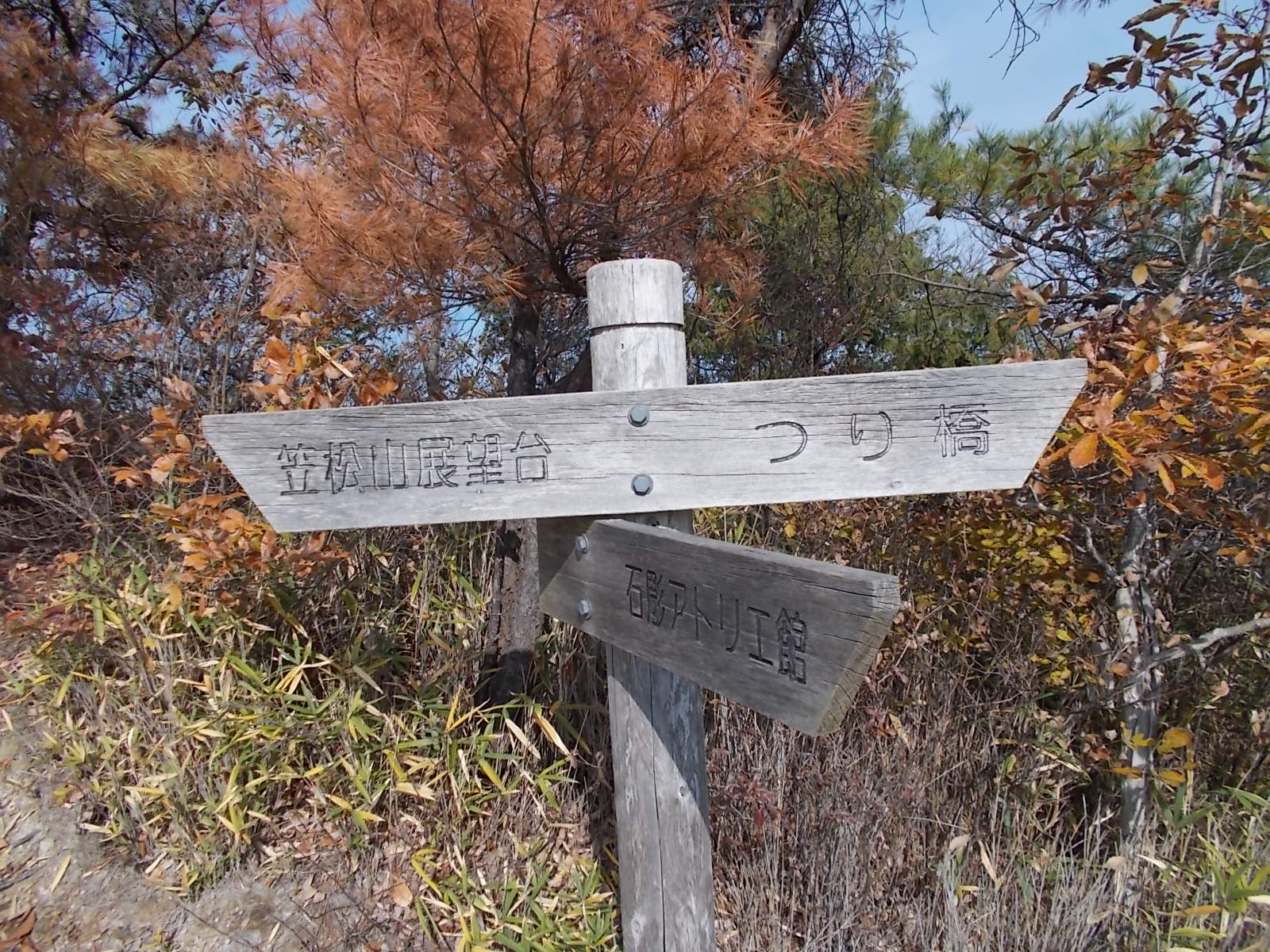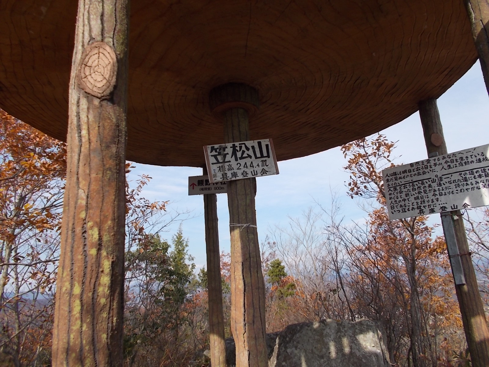 すぐに笠松山に向かいます。ここからは尾根筋ルートがほとんどなので、非常に見晴らしの良い楽しい登山になります。笠松山手前は急な岩登りになりますが、山頂には展望台があって360度見渡せます。これだけだとちょっと物足りないので、いったん下りてから向かいの周回コースを通って駐車場に戻りました。