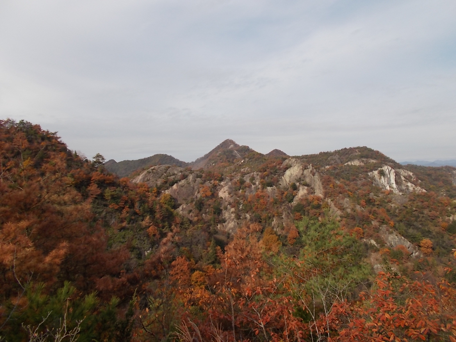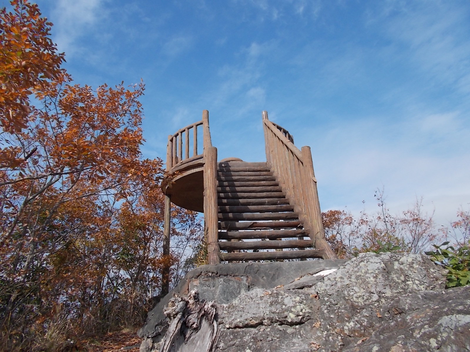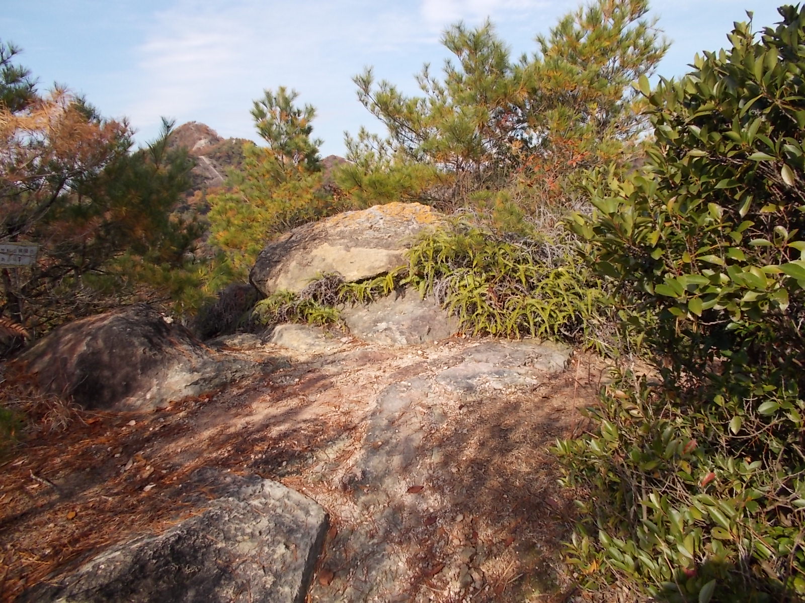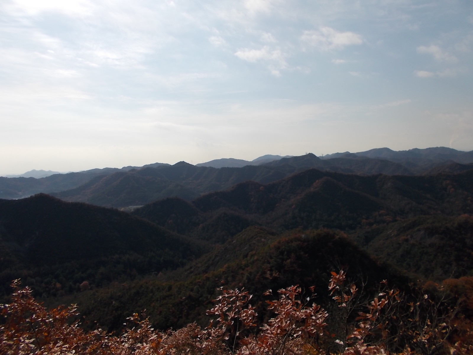 すぐに笠松山に向かいます。ここからは尾根筋ルートがほとんどなので、非常に見晴らしの良い楽しい登山になります。笠松山手前は急な岩登りになりますが、山頂には展望台があって360度見渡せます。これだけだとちょっと物足りないので、いったん下りてから向かいの周回コースを通って駐車場に戻りました。