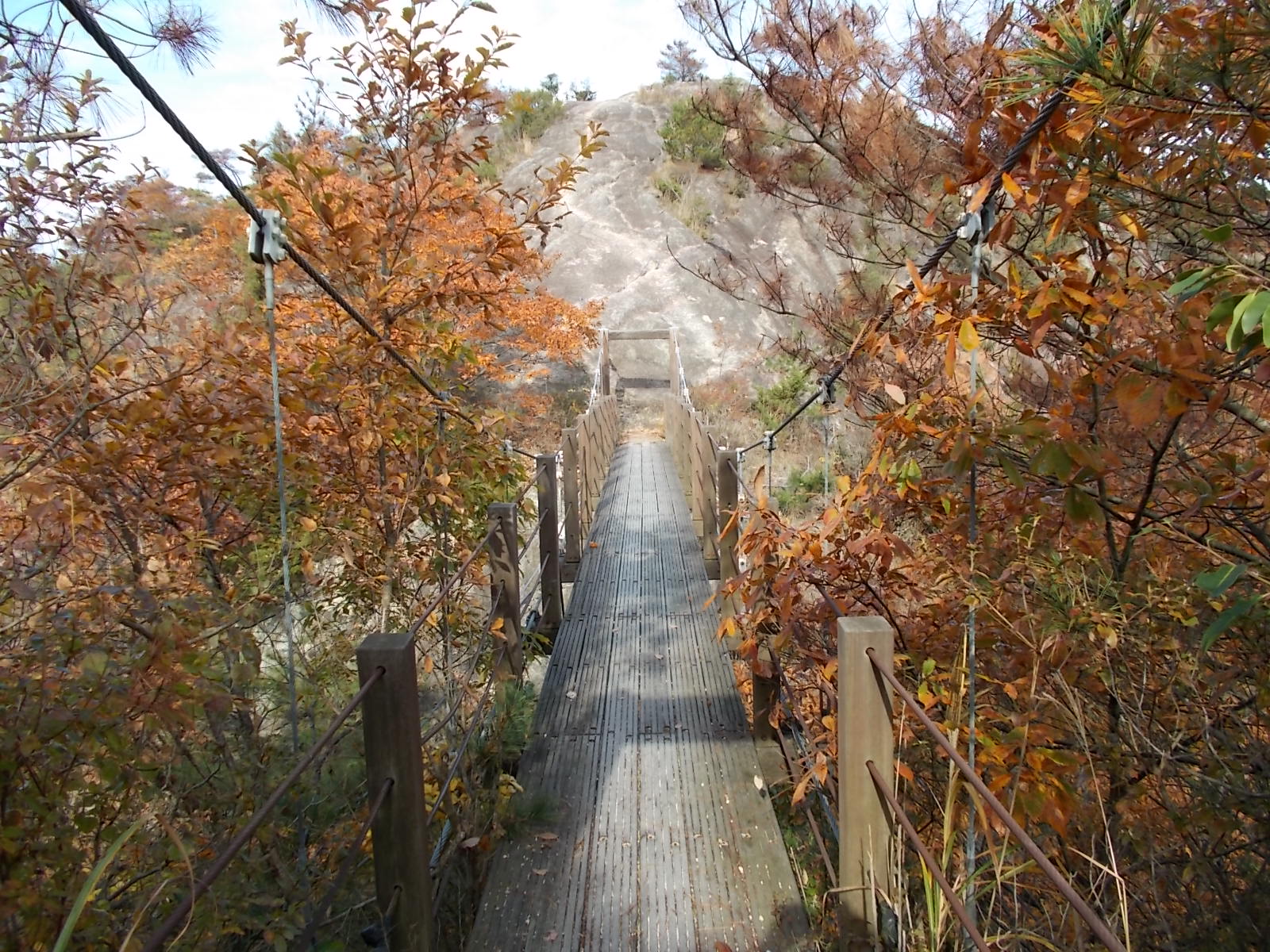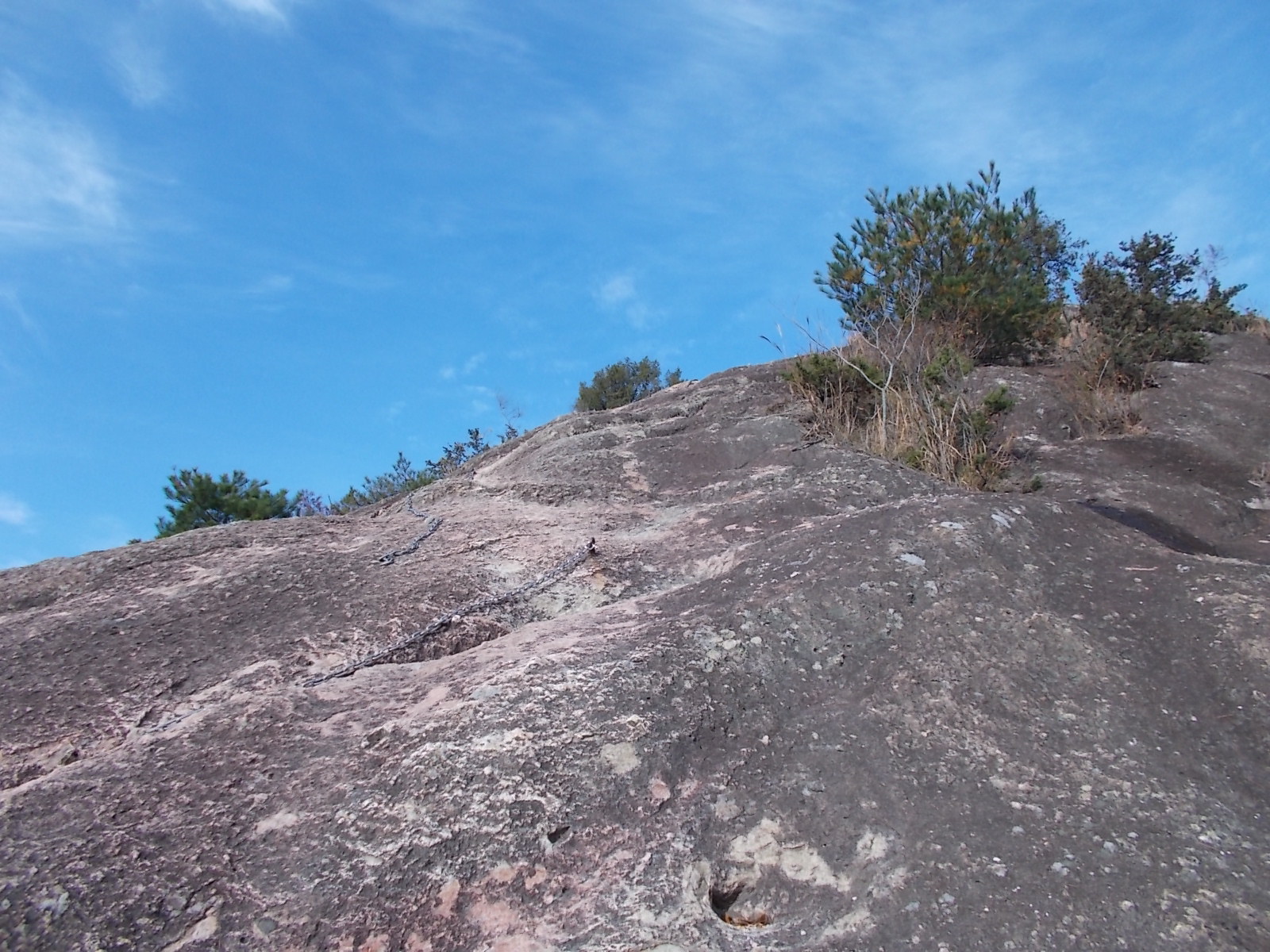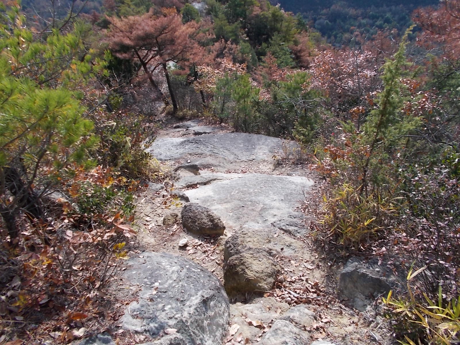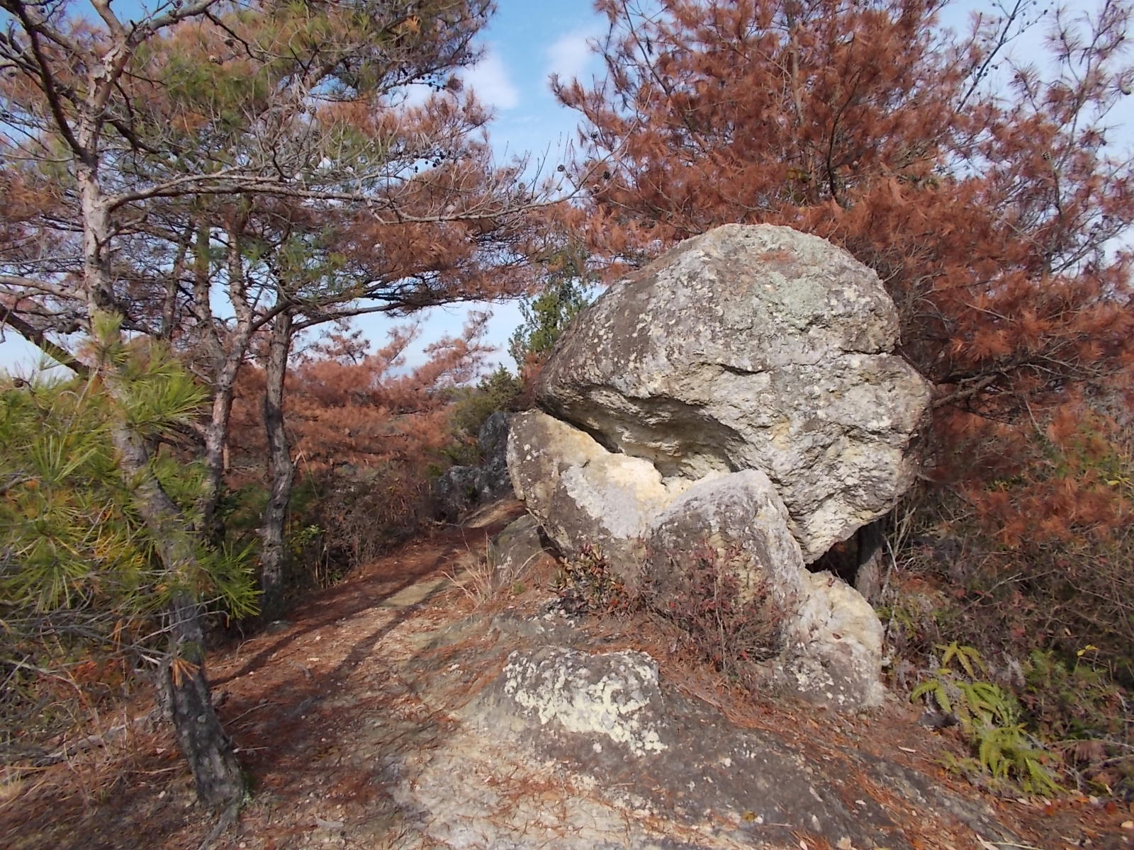 すぐに笠松山に向かいます。ここからは尾根筋ルートがほとんどなので、非常に見晴らしの良い楽しい登山になります。笠松山手前は急な岩登りになりますが、山頂には展望台があって360度見渡せます。これだけだとちょっと物足りないので、いったん下りてから向かいの周回コースを通って駐車場に戻りました。