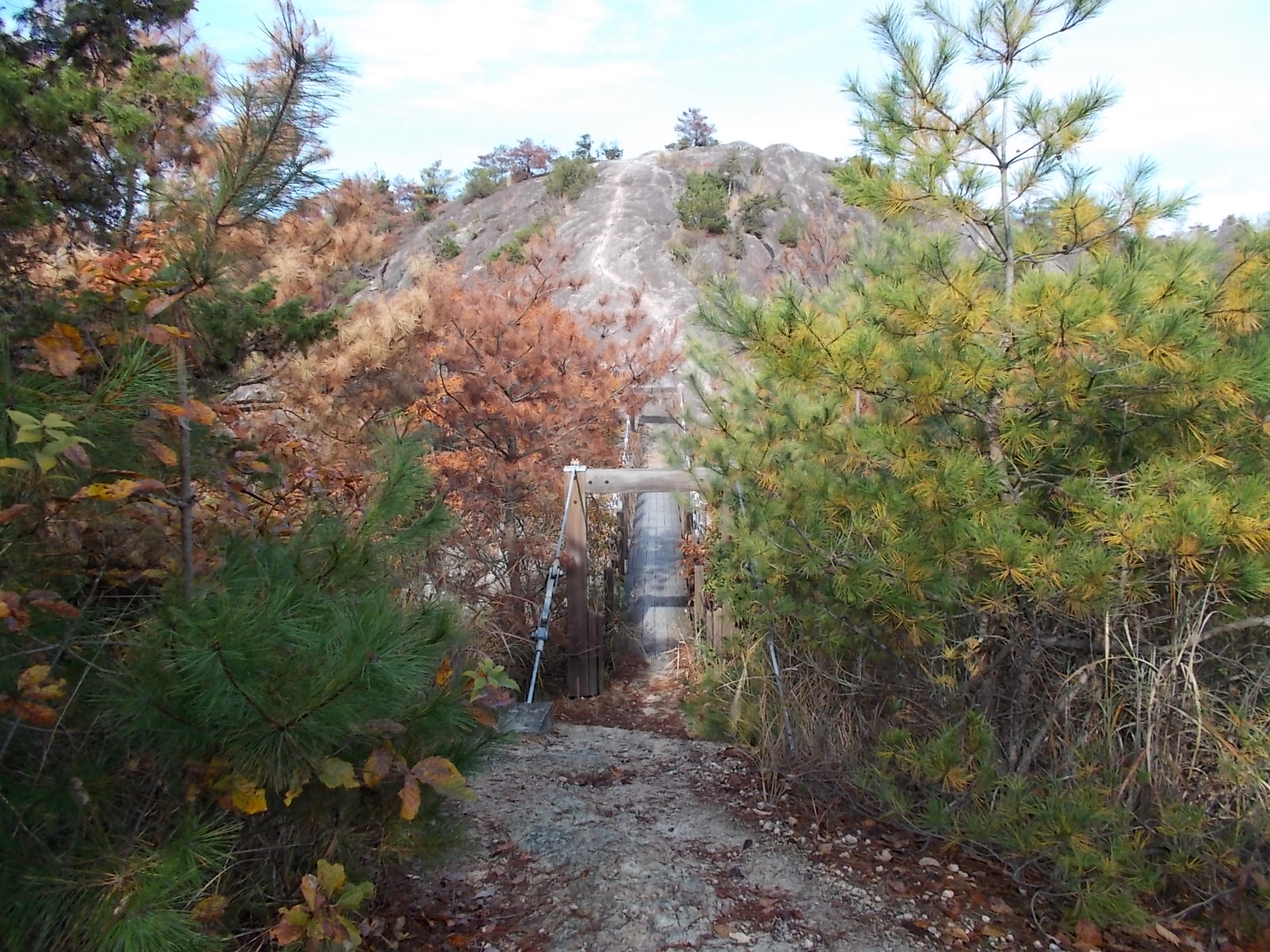 進入路を進み、坂の手前に駐車する。笠松山だけに登るならそこからさらに進んで、奥の駐車場に止める。