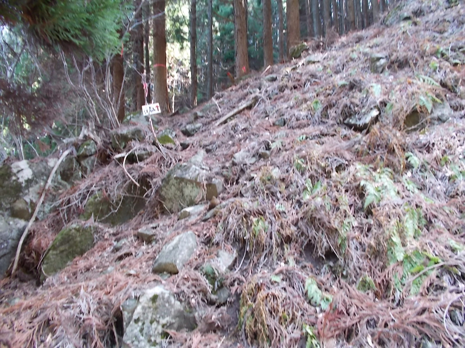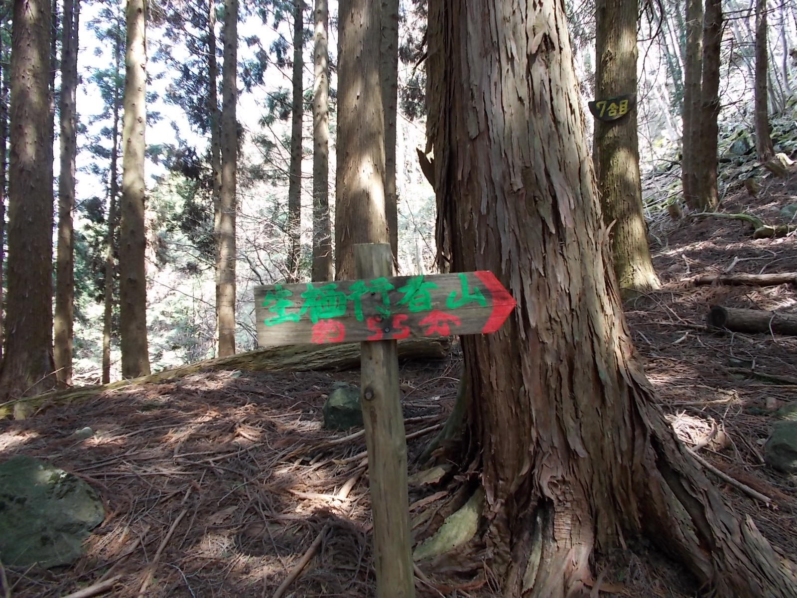 さすがに名前の通りで楽な山ではありませんでした。駐車場から続く舗装路からしてかなりの登り。登山道に入ってからはさらに急な登りが続きます。途中休むのにいい場所もなく、ただひたすら登り続ける感じです。
