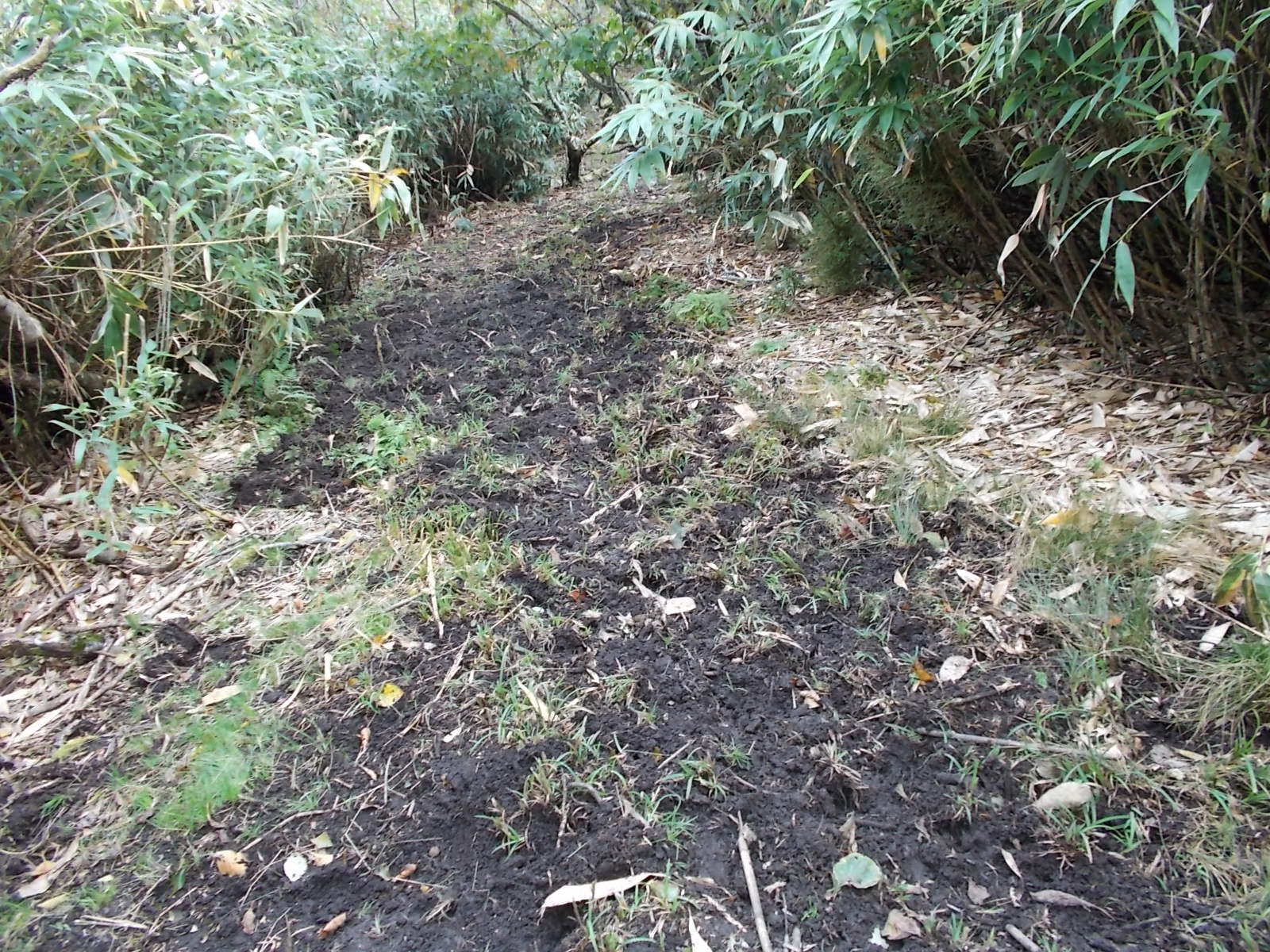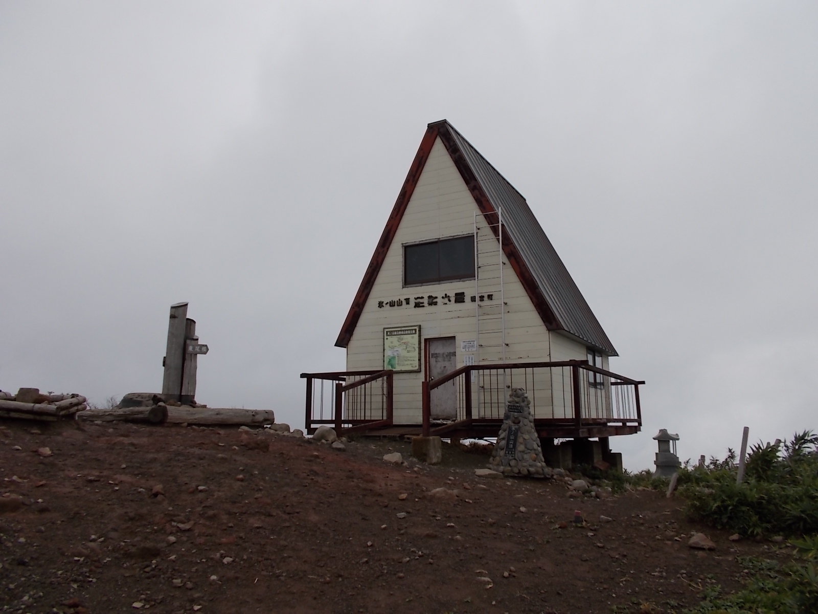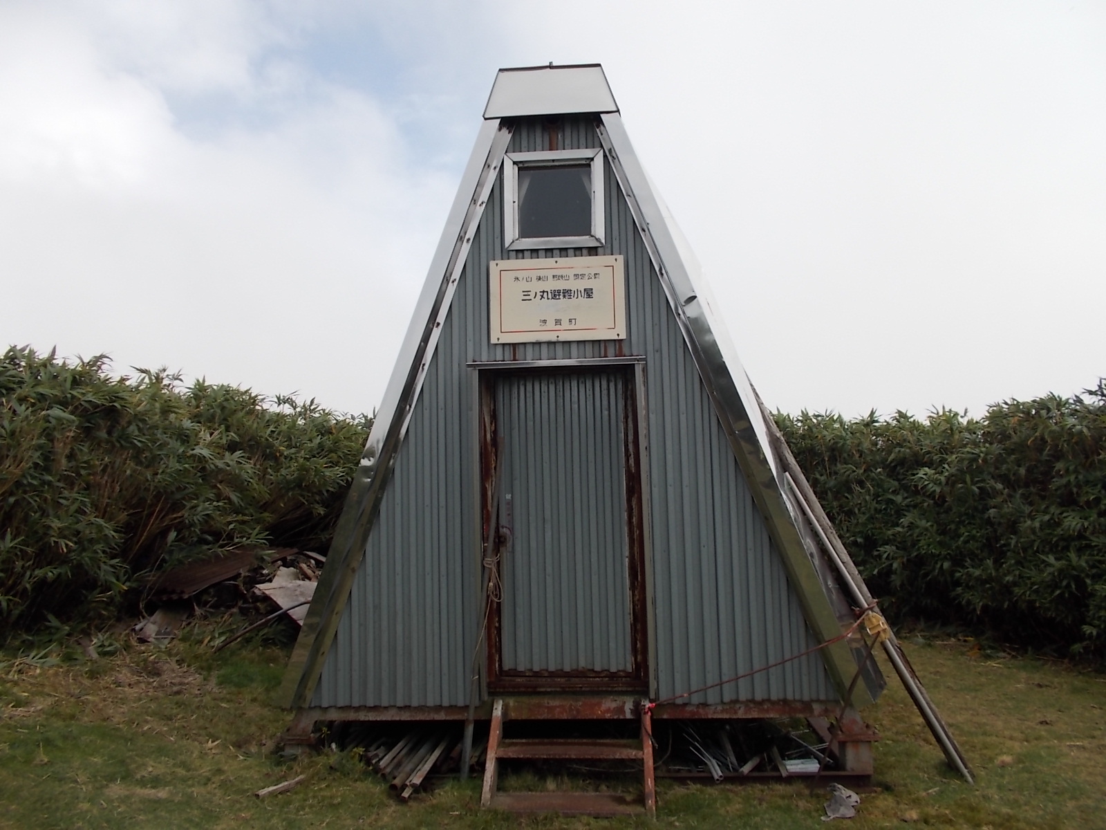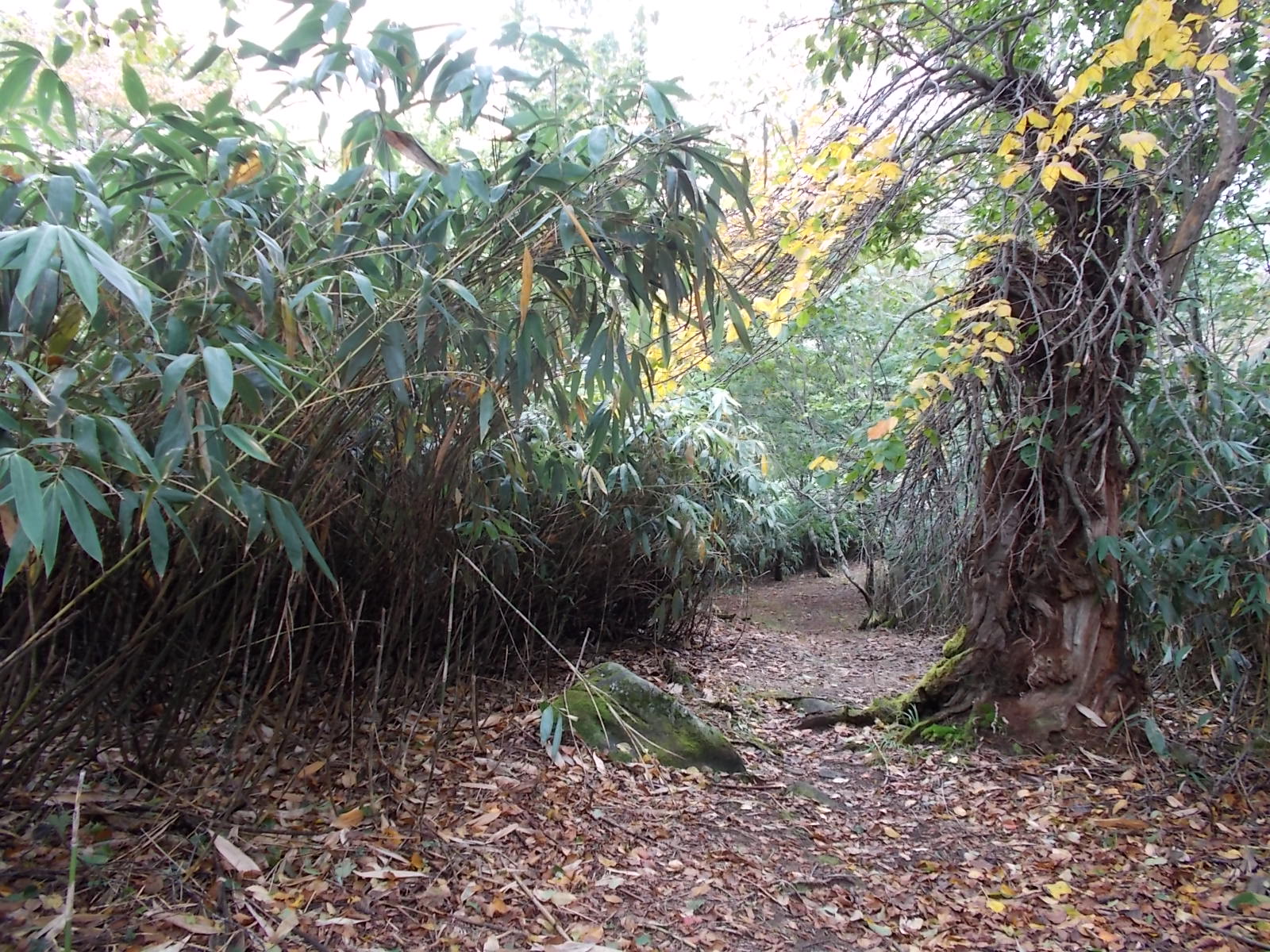 笹を抜けると三の丸に着きます。ここには展望台があって、360度見渡せるのですが、この日は雲が多くてサッパリでした。このあたりの紅葉は今が一番のようです。雨になりそうならここで止めようと思っていましたが、途中から雲が晴れて、氷ノ山の頂上が見えてきたので、行くことにしました。1,300mの空中 回廊を渡って、氷ノ山へ。こちらは宍粟市ではなくなっているので、登山道はそれほど整備されてはいません。それにところどころ土が掘り返されていたり、水はけが悪かったりでけっこう歩きにくいところが多いです。山頂に着くととっても寒くて、その上雲が動き出したので、昼食の予定を止めて三の丸に引き返しました。が、三の丸の雲に入ってしまったので、そのまま下山しました。昼食は歩きながらで、雨と競争でした。殿下コースへ下りて登山口まで下りると雨が ザーッと降ってきました。なんとか間に合ったようです。後は林道を歩いて、途中、逆水の滝によって帰ってきました。