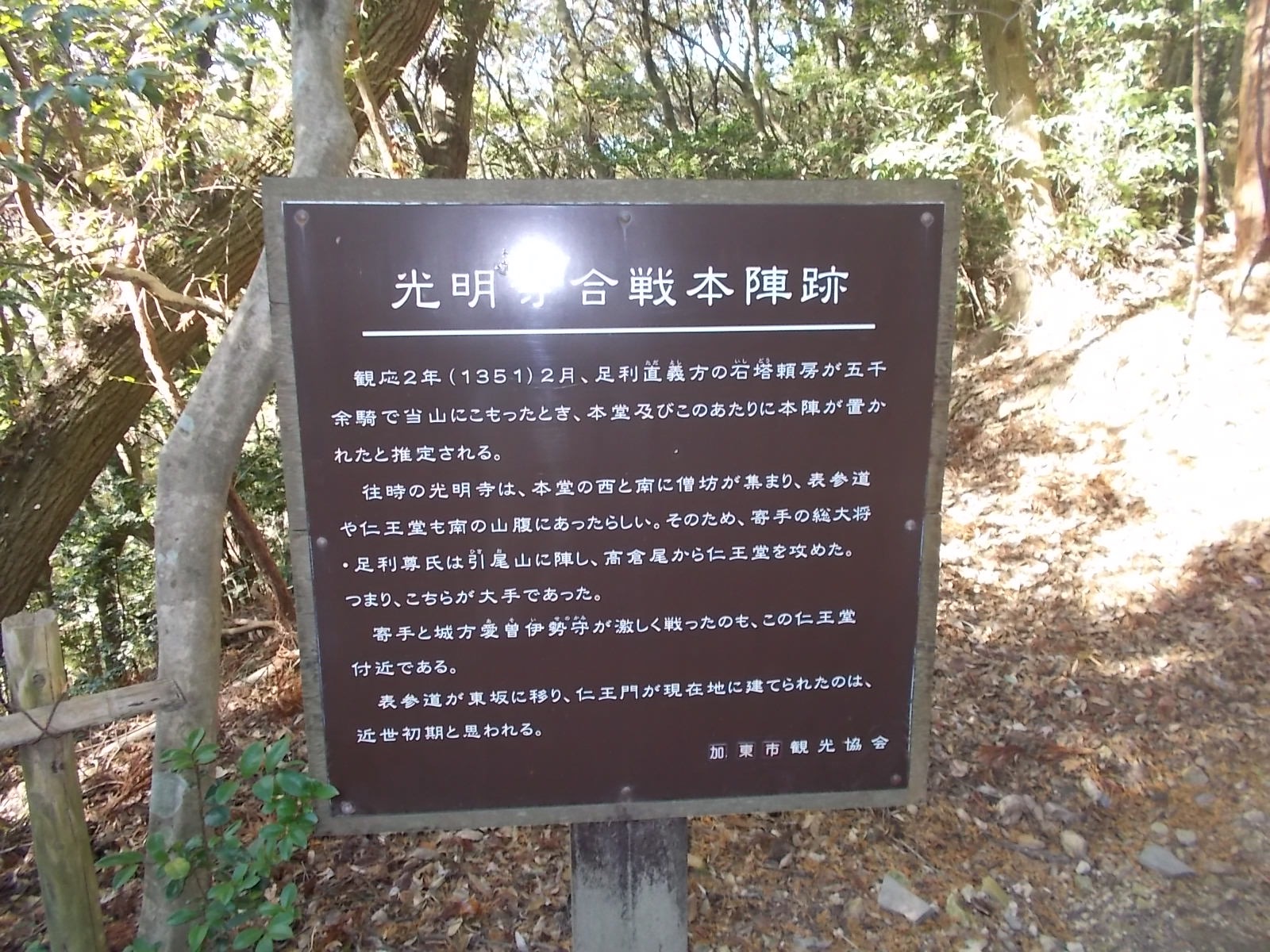 そこから光明寺を見学しながら本堂を越え、太平記の光明寺合戦本陣跡地から登山道に出ました