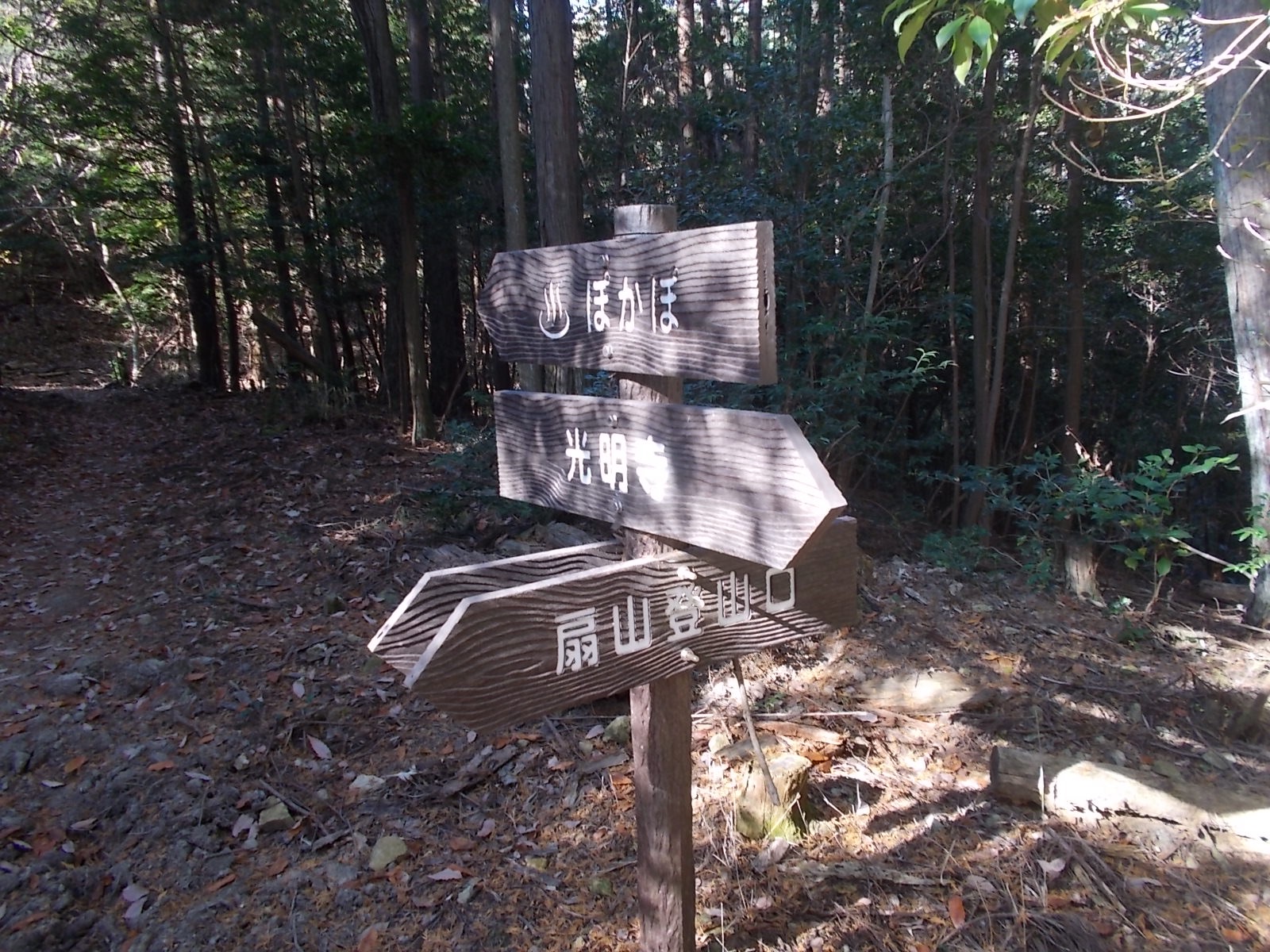 そこから進むと分岐があり、直進:ぽかぽ、左:扇山登山口とあるので、登山口に進みます。