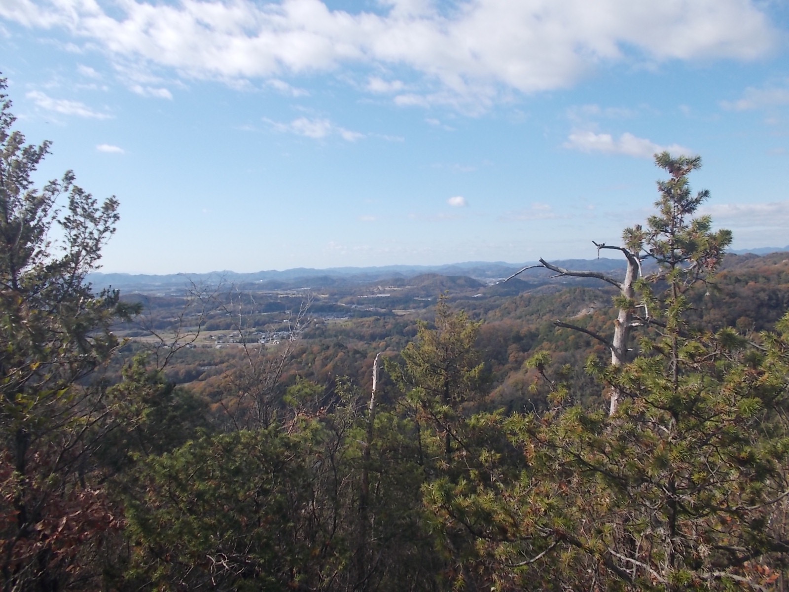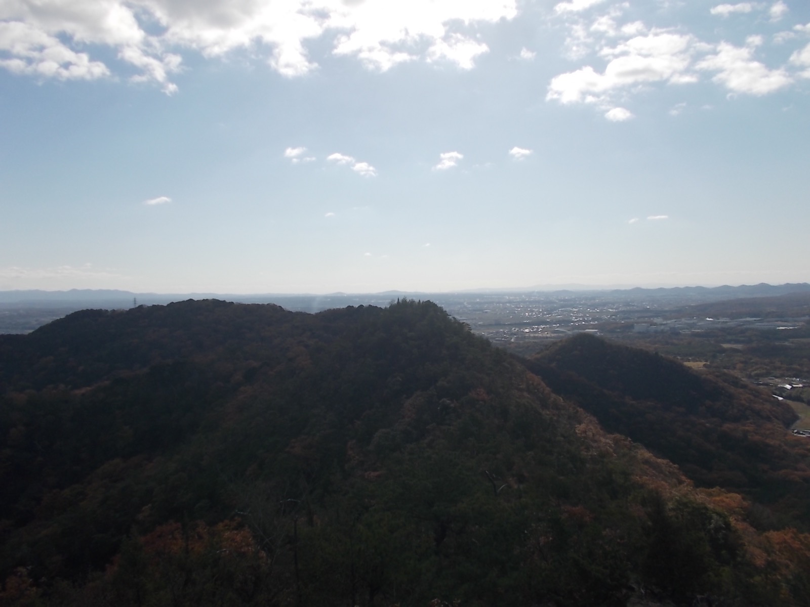 途中、見晴らしのいい場所がいくつかあるのでそれほど苦痛ではありません。山頂からはほぼ360度見渡せます。そのまま戻って、周回ルートに入りたかったんですが、あいにく猪の被害が大きいようで通行止めになっていました。仕方がないので、同じルートで戻りました。