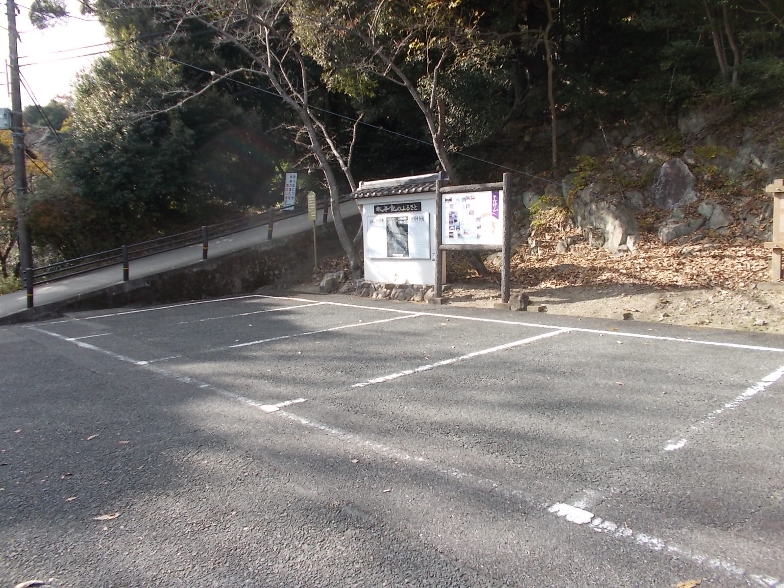 中国道滝野社ICを出て、播磨中央公園を目差し、跨線橋を渡ったら右折し、次の光明寺の交差点を左折、登り切ると駐車場がある。