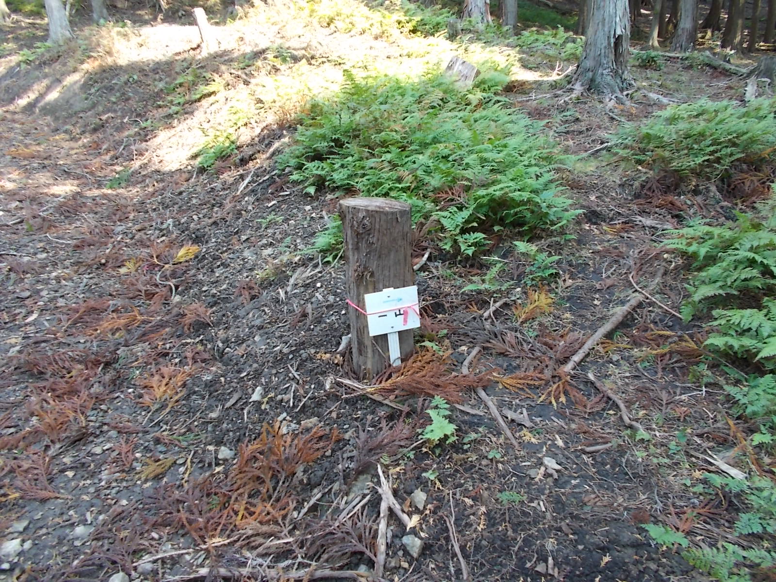 駐車場 → 登山口 → 895.4mのピーク → 伐採地 → 林道出合 → 山頂 → 林道出合 → 伐採地 → 895.4mのピーク → 登山口 → 駐車場