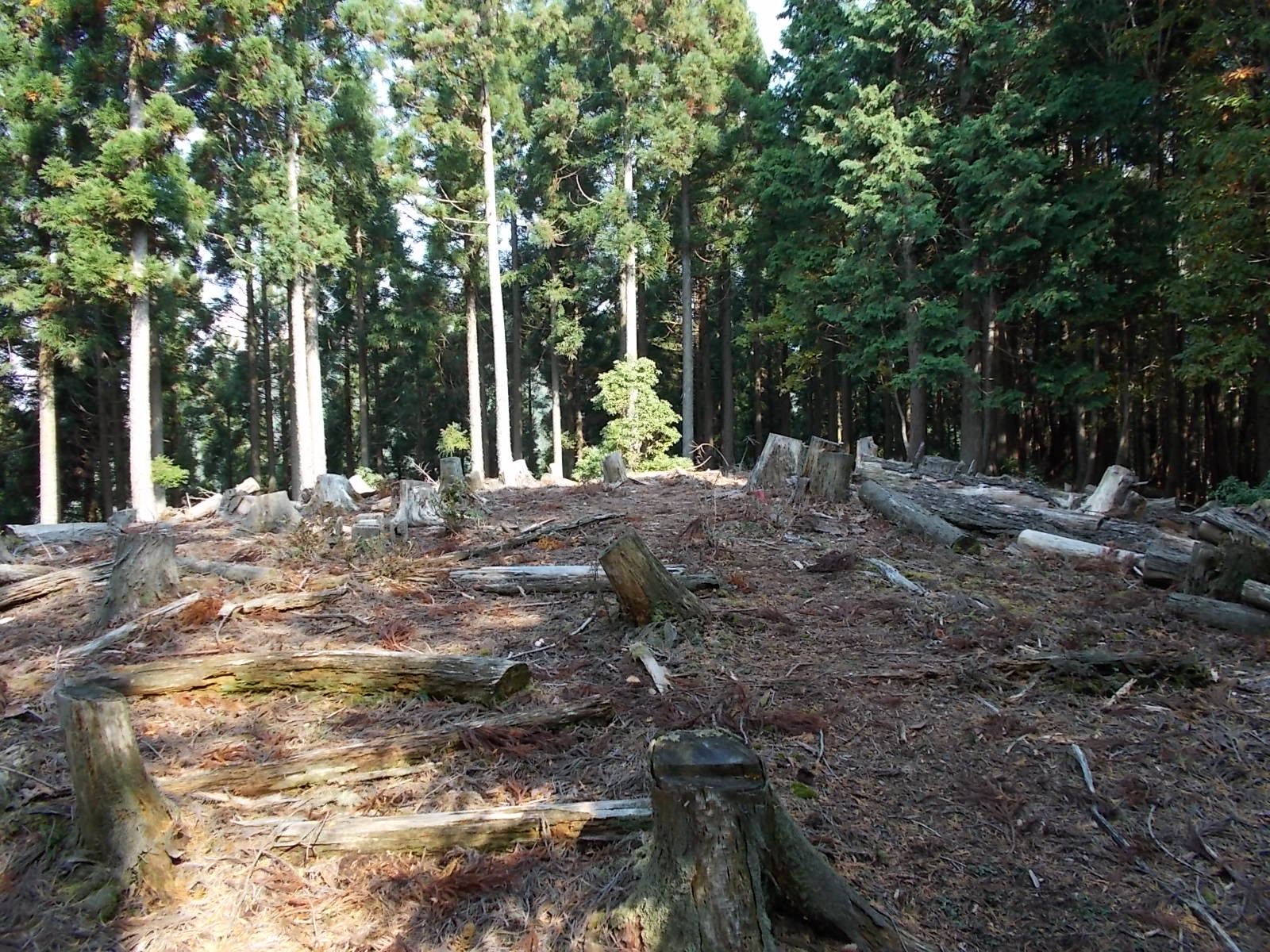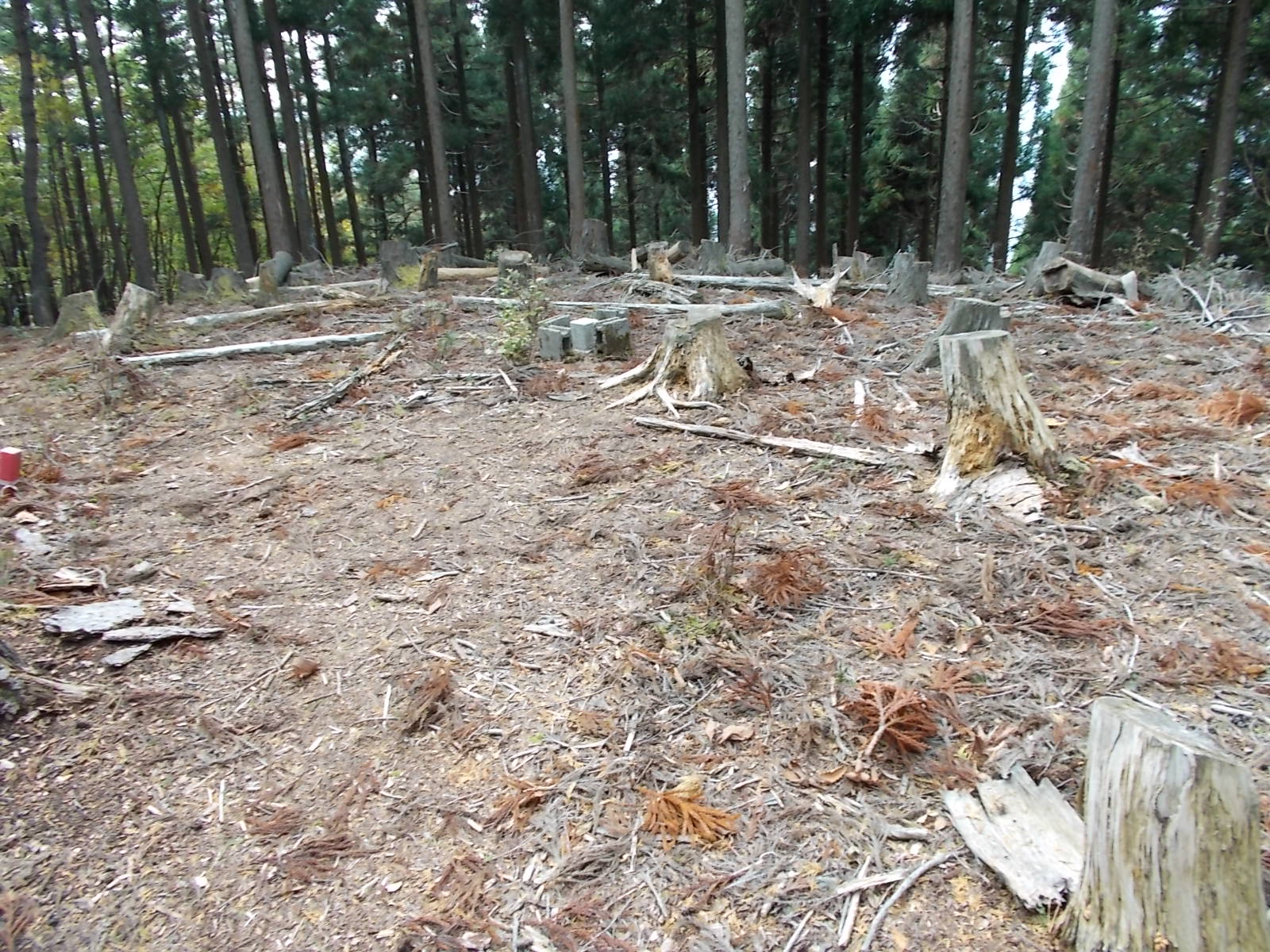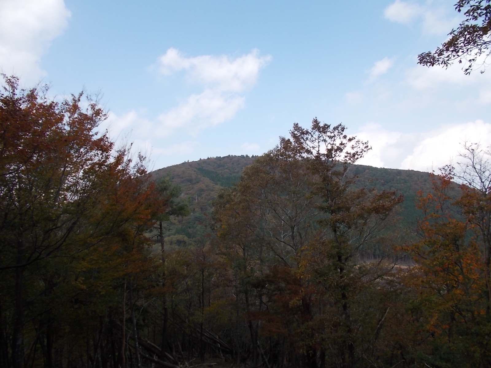 高野峠から登ってきました。高野峠まではR29からも県道6号からも入れますが、どちらも対向車が来たらどうしようという細い道です。くれぐれも対向車にはご用心。高野峠にあるお地蔵さんの横の登山口から入り人工林の急登を登り切るとネットがある明るい尾根筋に出ます。そこからは東方面がよく見えます。ここからも急な登りが続きますが、頑張って登ると895.4mの三角点のある広場に出ます。見晴らしは悪いのでそのまま進み、939mのピークの手前で左へ。ここからゆっくり下ると広く伐採された広場に出ます。ゆっくり登ると林道の交差点にでます。林道沿いにピンクのテープがありますが、それを無視して斜面にあるリボンから登っていきます。結構距離はありますが、登り切ると頂上に出ます。ここからはほぼ360度見渡せます。それほどきつくもないし、時間もかからないので、紅葉を見にお出かけ下さい。